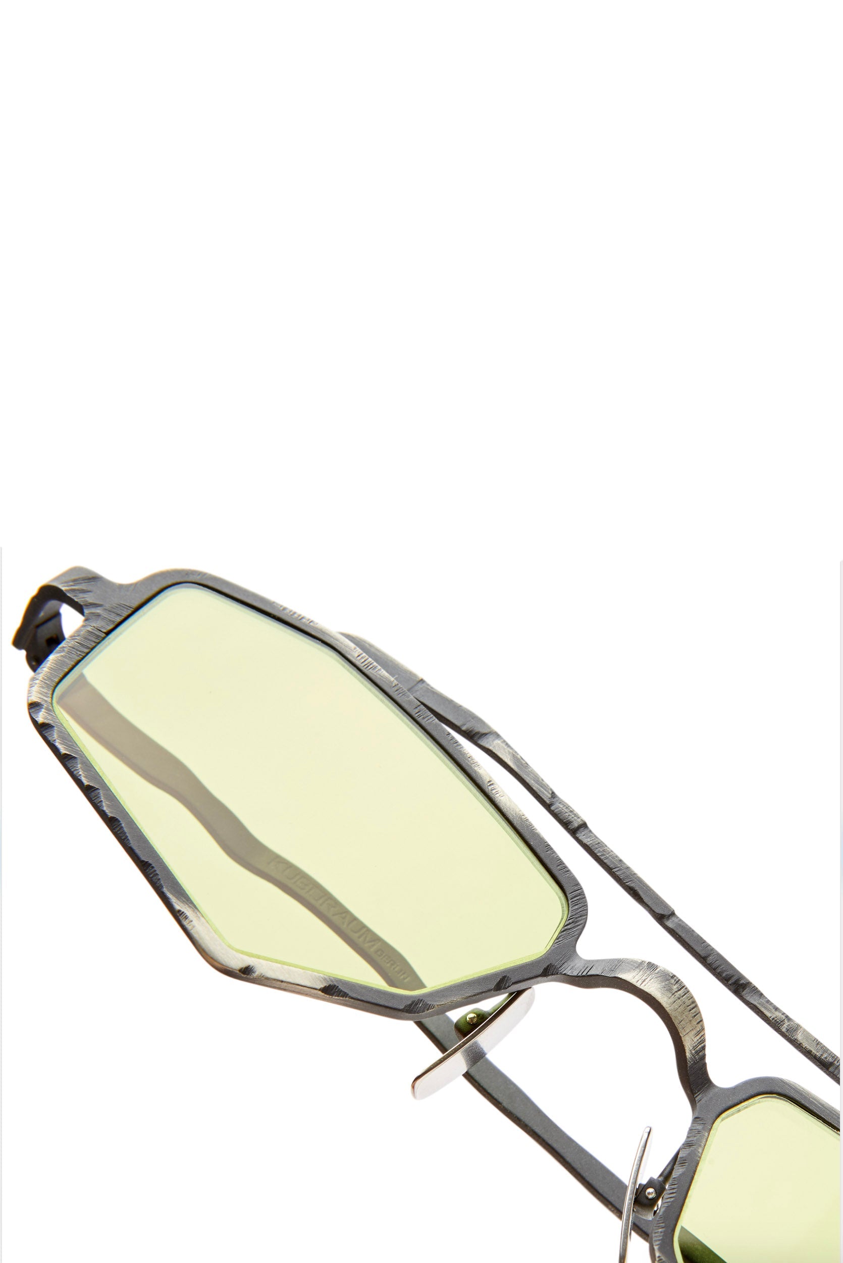 Silver-tone. Metal. Geometric frame. Acid Green tinted lenses. UV-protective lenses. Double bridge. Nose pads. Sculpted arms. Curved tips. Logo detail. These glasses come with a protective case.
