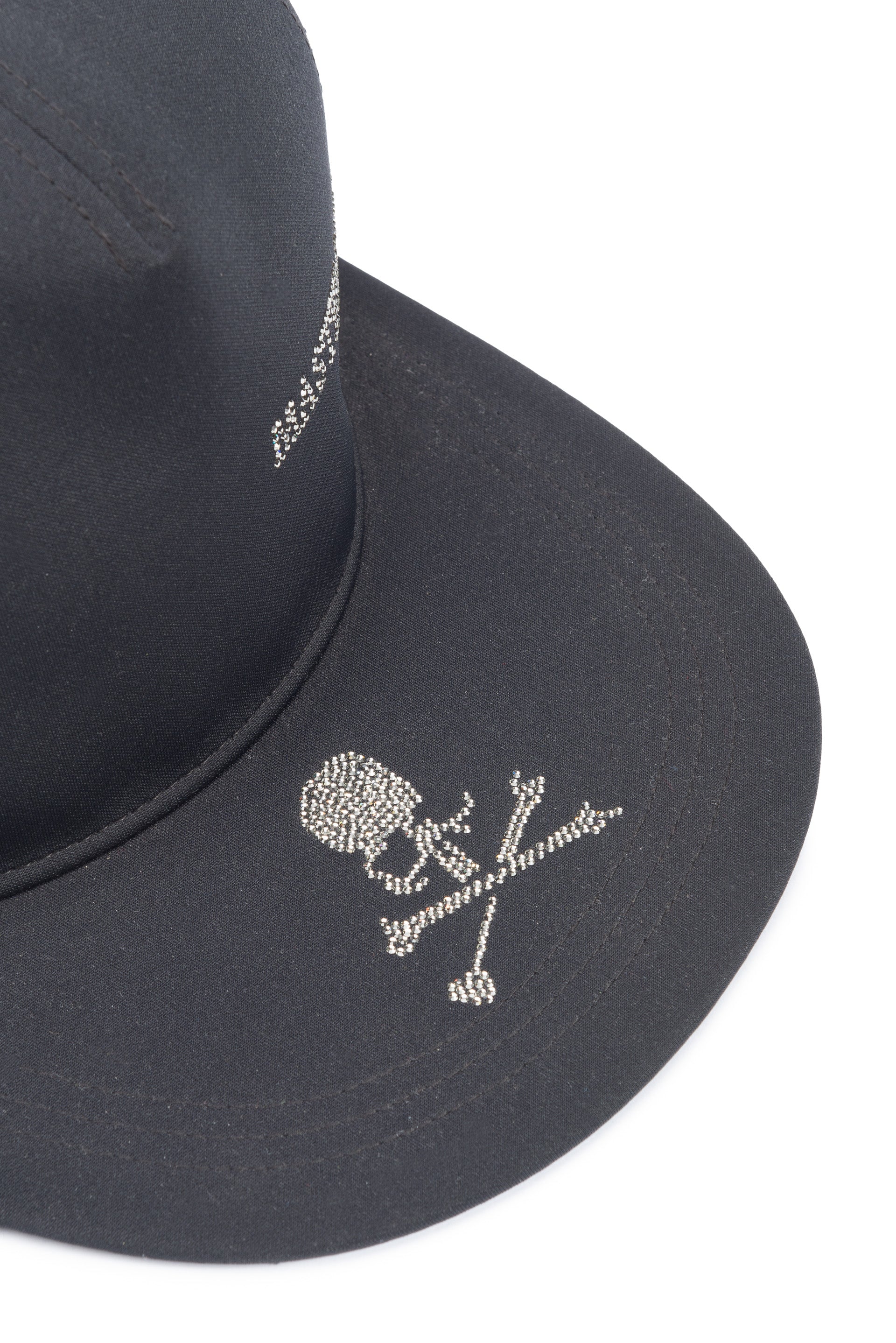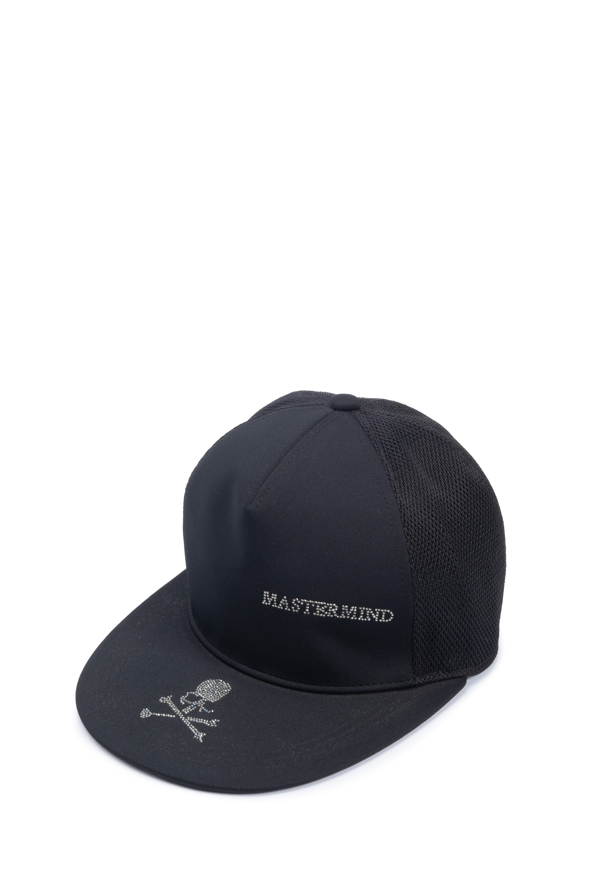 Mastermind World blends elements of punk, street, and utility wear, the brand's contemporary designs feature Masaaki Honma’s signature skull iconography throughout as you can see on the Mastermind World Swarovski Crystals Trucker Hat.