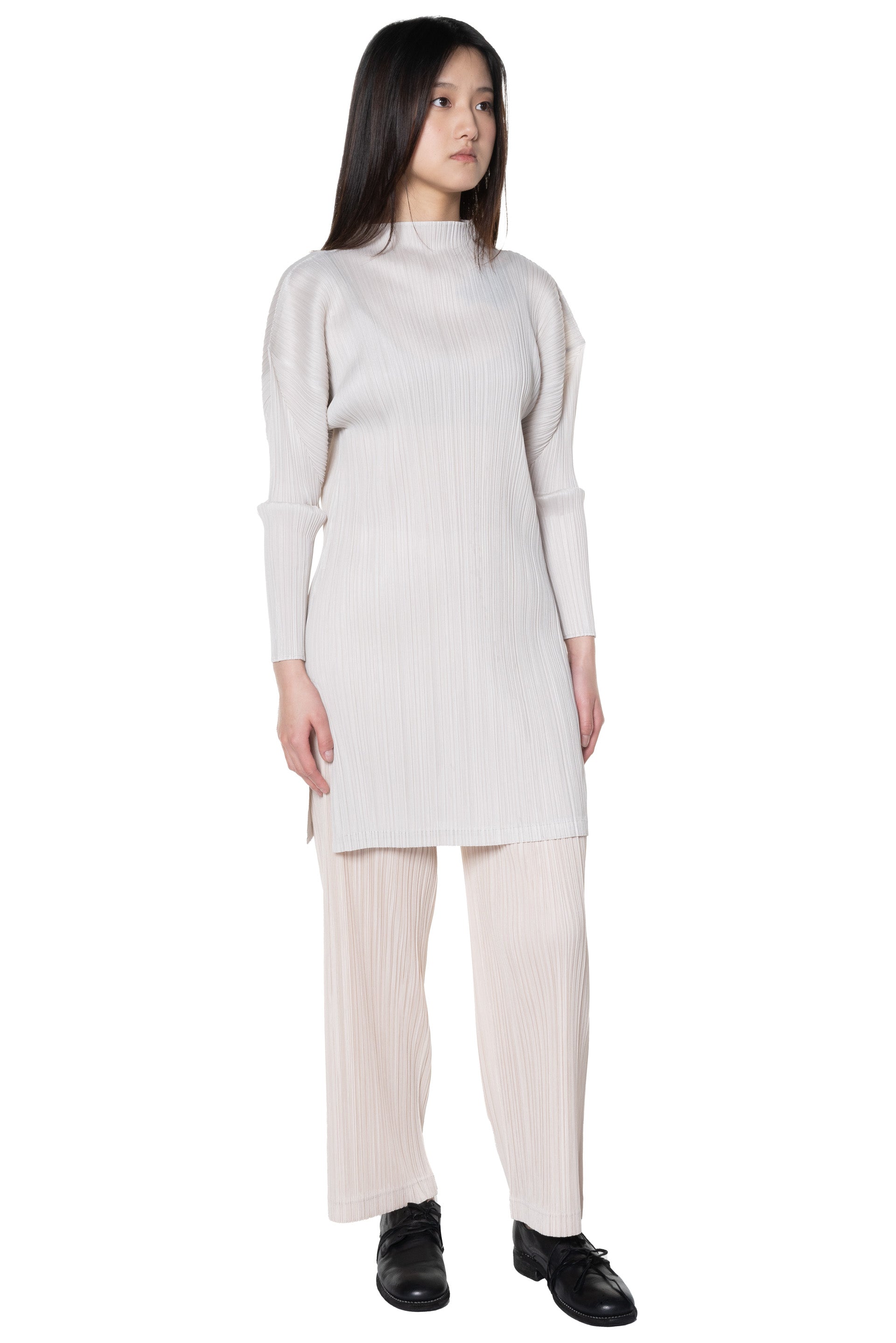 Pleats Please is crafted from a single thread, then creases are added after the clothes have been sewn into shape offering a combination of convenience, comfort and coolness. Pleats Please designs are simple with a strong silhouette as seen with the MC February Dress.