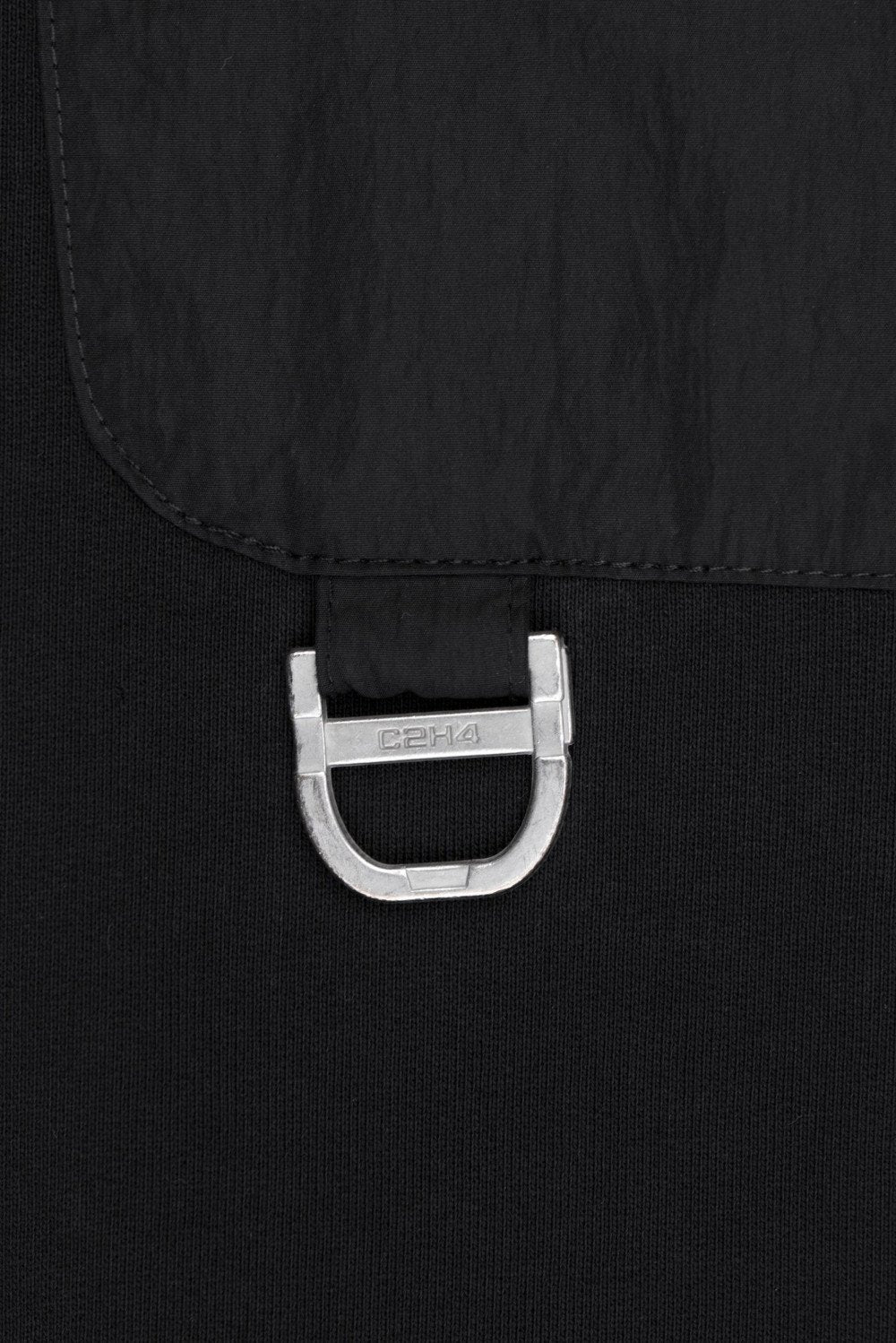 Tonal nylon patches at arms with metal logo D-ring.