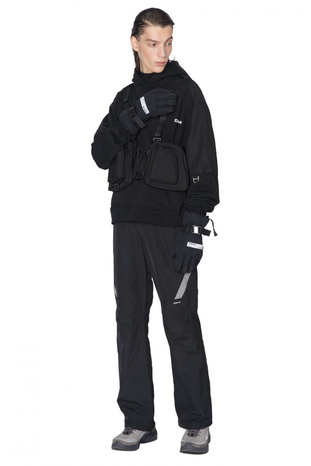 C2H4 concept ranges from hypothetical space scientists producing sport and streetwear-inspired designs creating an intergalactic underground culture. Using her studio as a laboratory, Chen’s meticulously elevates wardrobe cornerstones as seen with the Memory Supervisor Panelled Hoodie