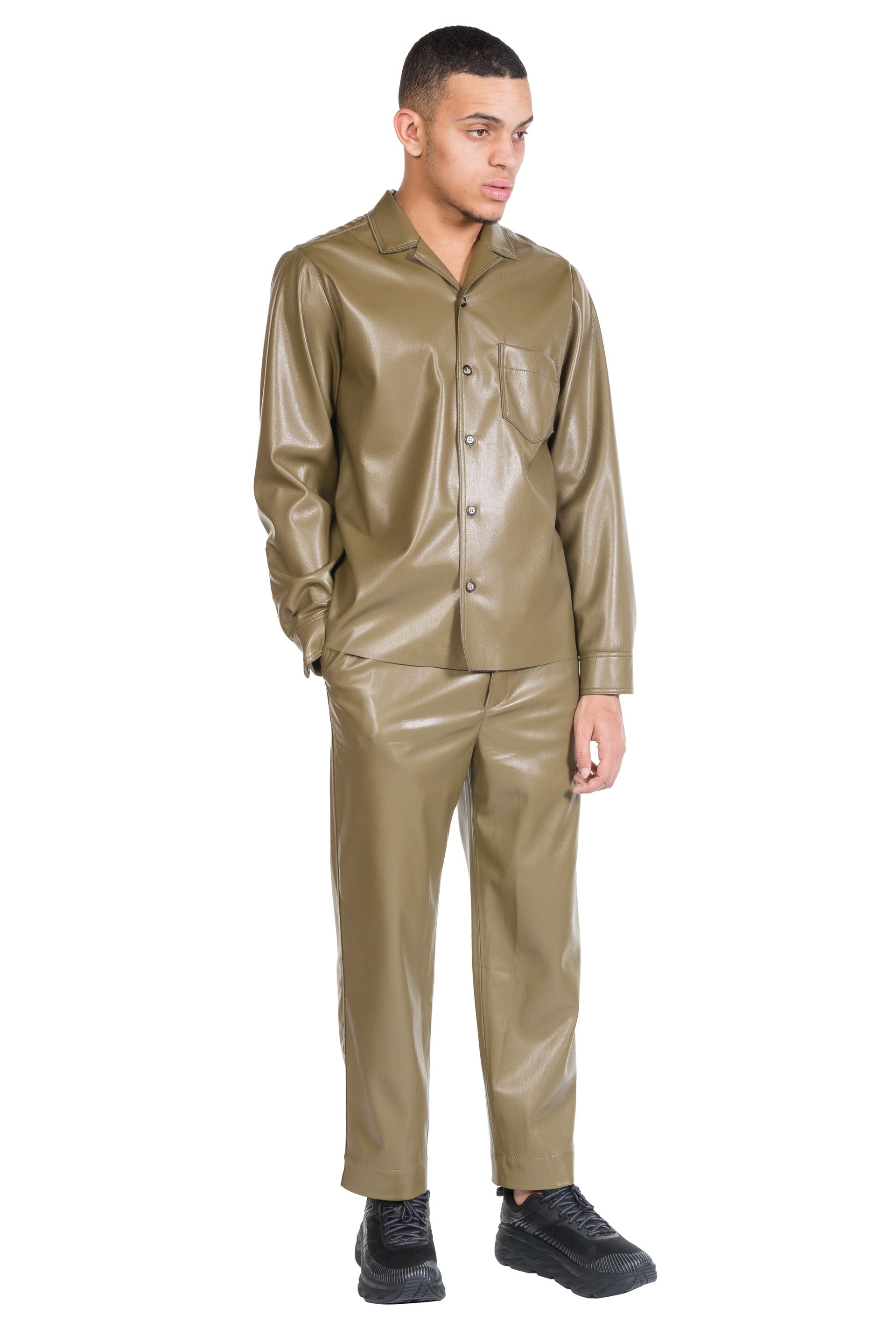 Meno Vegan Leather Long-Sleeve Shirt Olive
