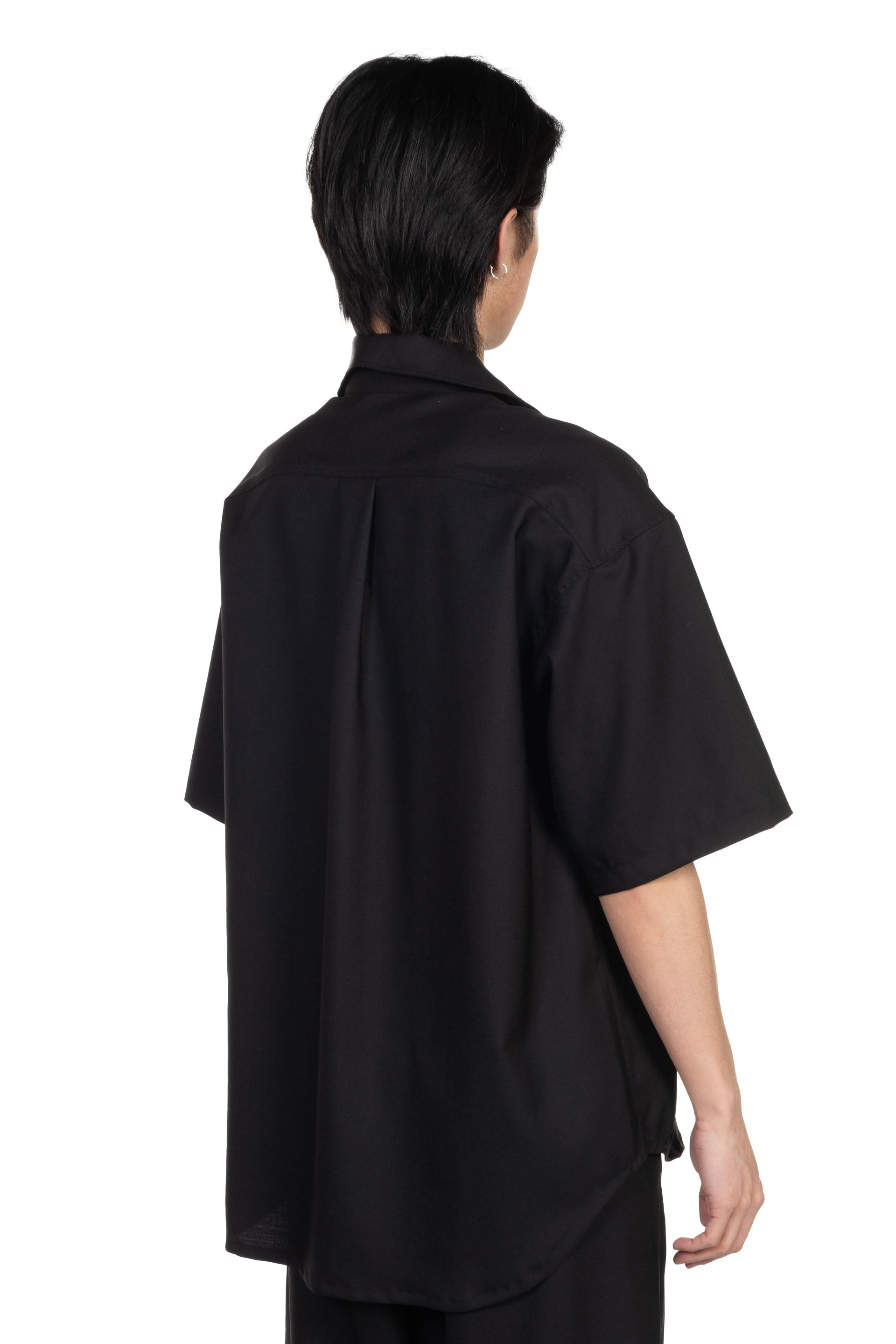 Minimal Shirt Short Sleeves in Black. Horn buttons. Relaxed fit. Hidden buttons. Dropped shoulders. Lownn's signature shirt.