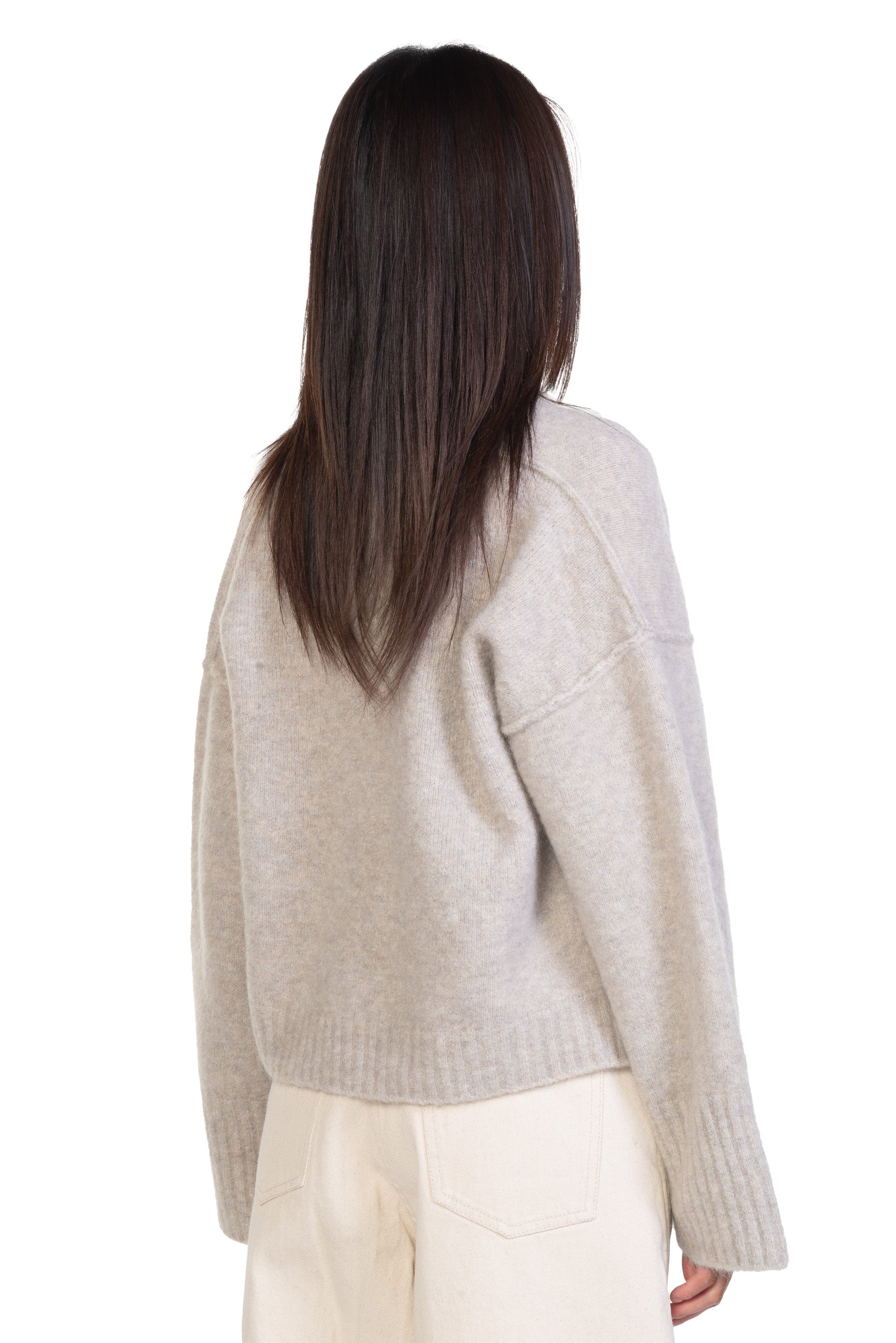 Isabel Benenato is committed to sustainability and makes every effort to minimise its environmental footprint. All of the collection are manufactured in Italy with the intention to save and support her local community. Her design is based on an imperfect perfection that encompasses the human being itself as seen with Mohair Boxy Cardigan Buttons Closure.
