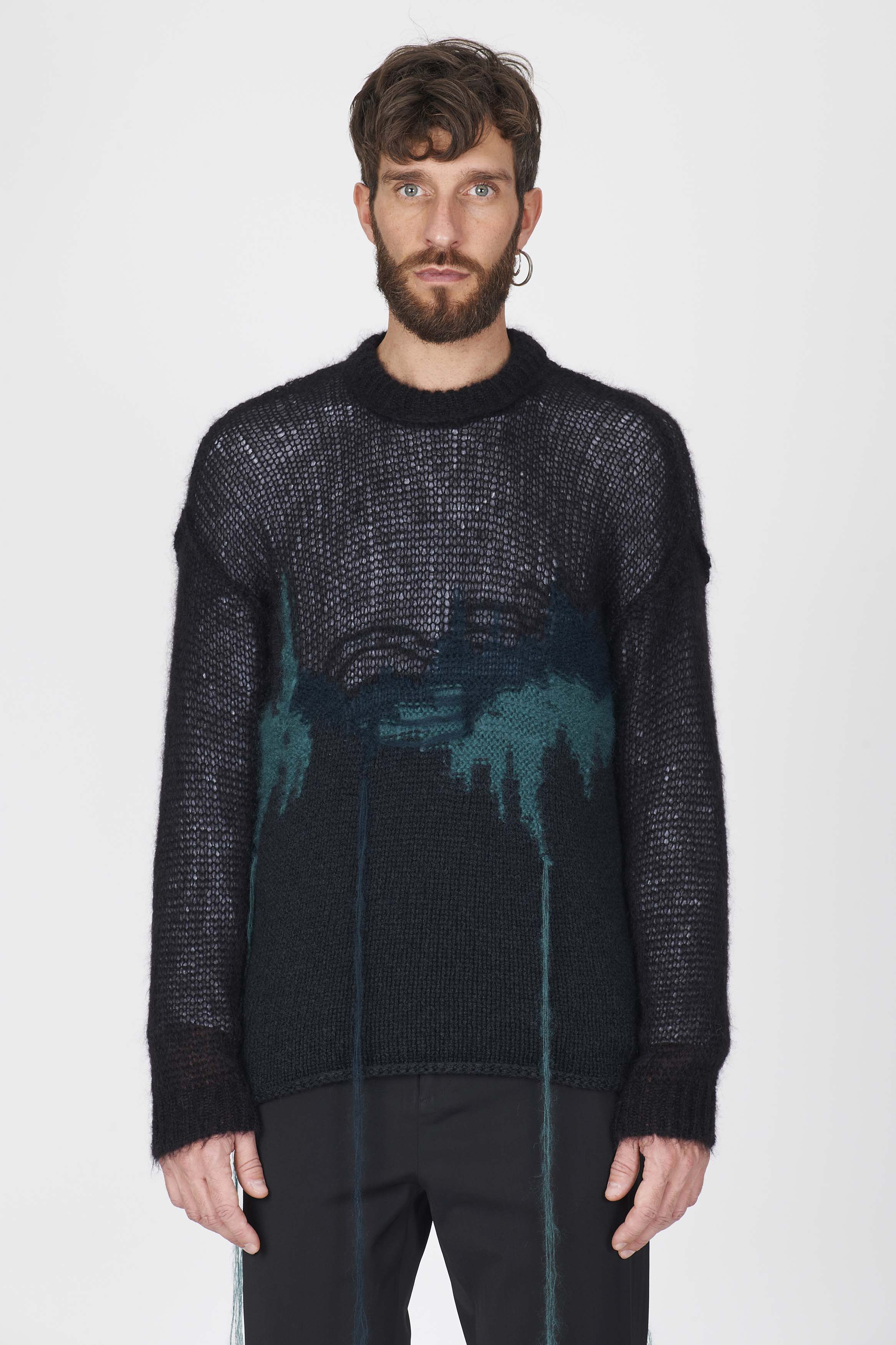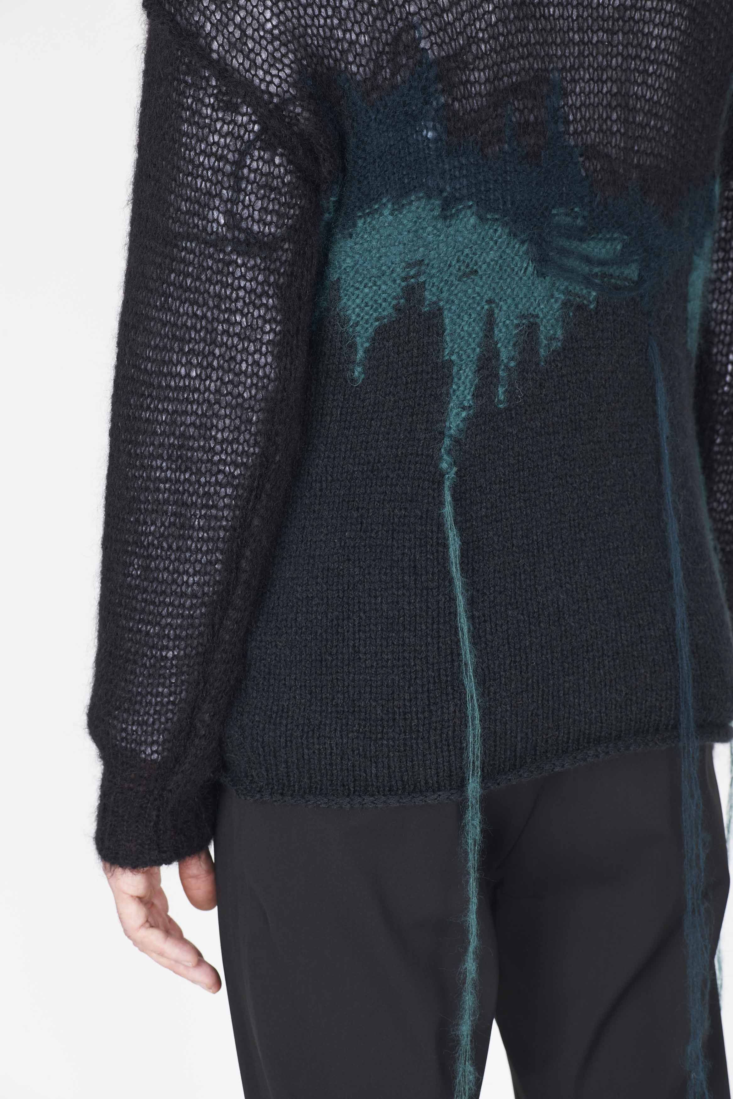 Isabel Benenato Mohair Contrast Panel Knit Red. Long sleeves. Floating strings details at front and back.Colour: Black/Petroleum. Composition: Mohair