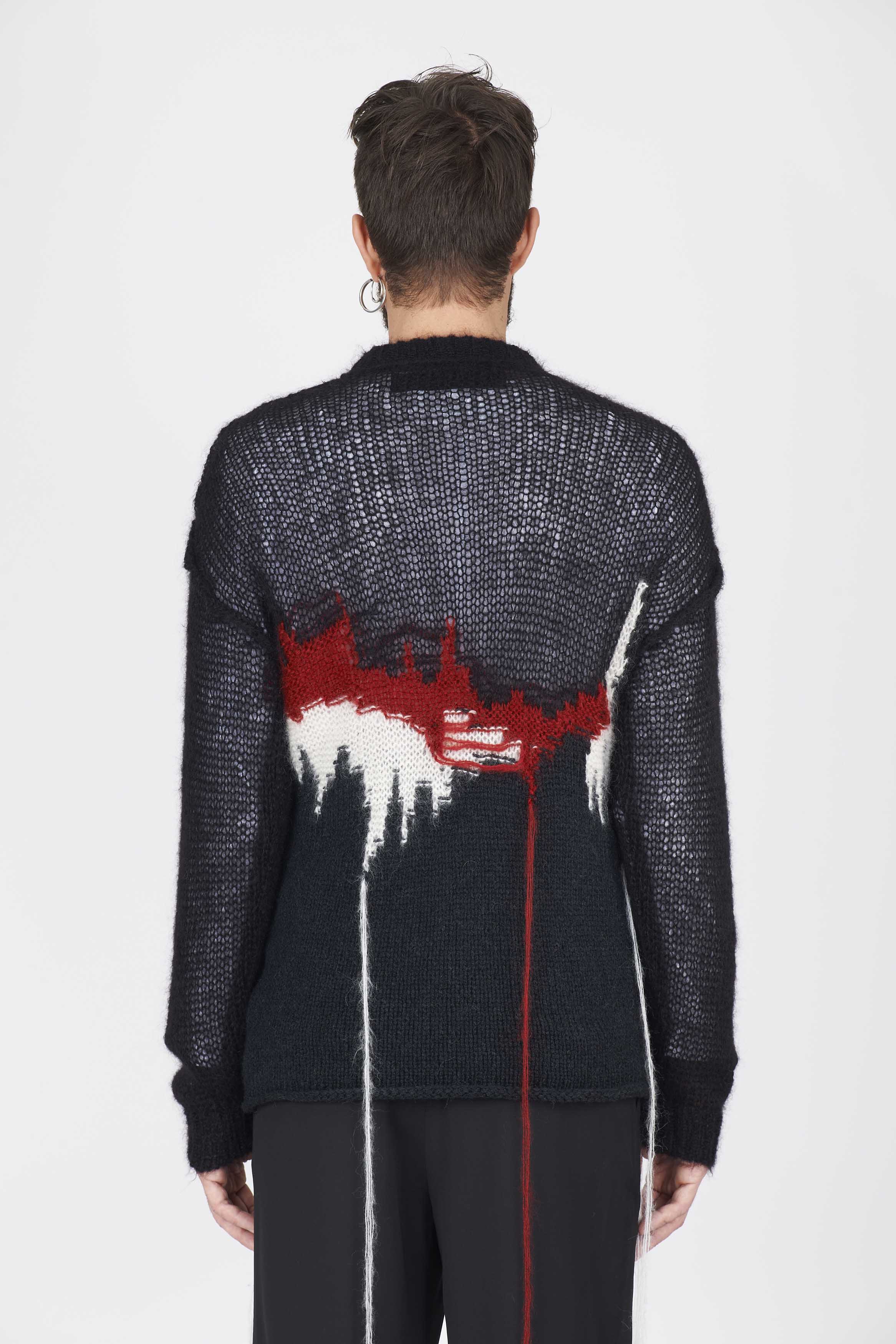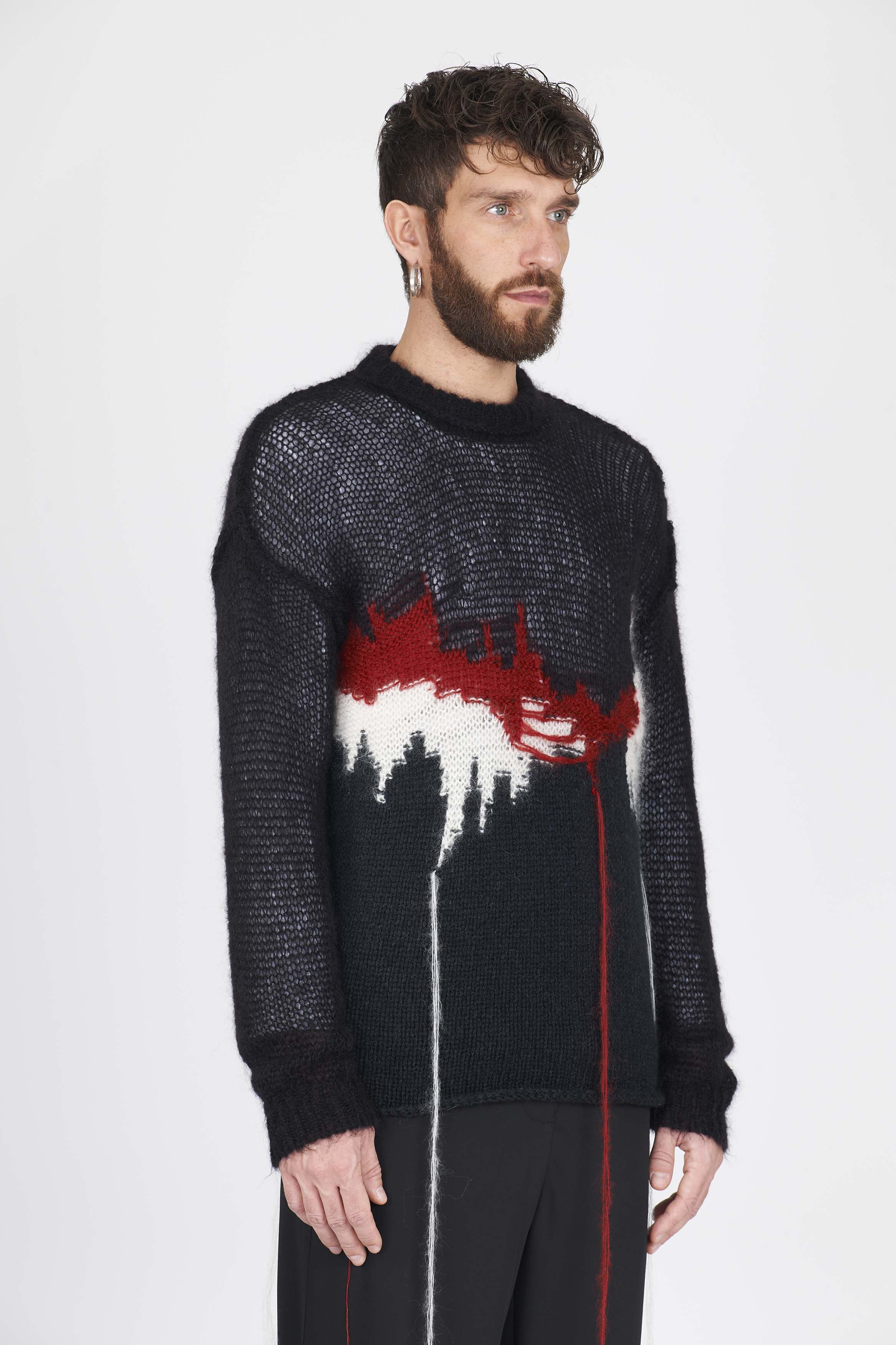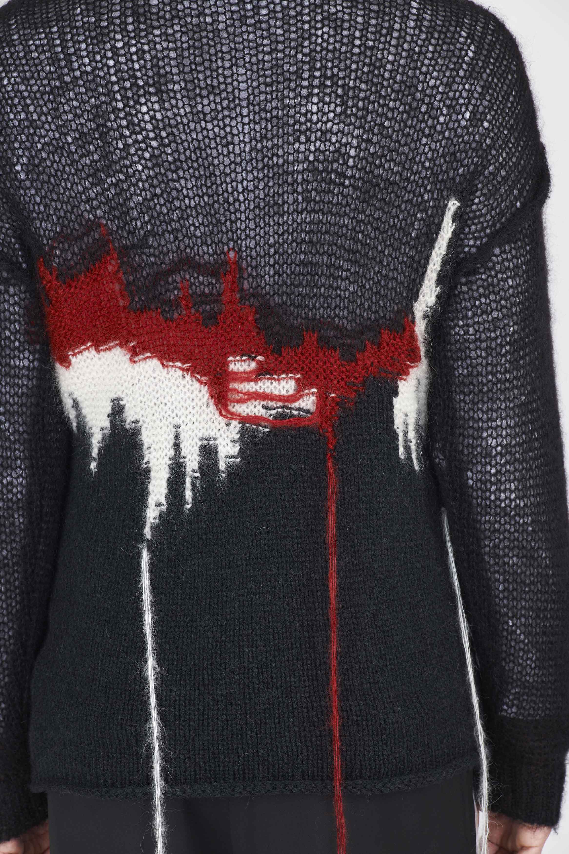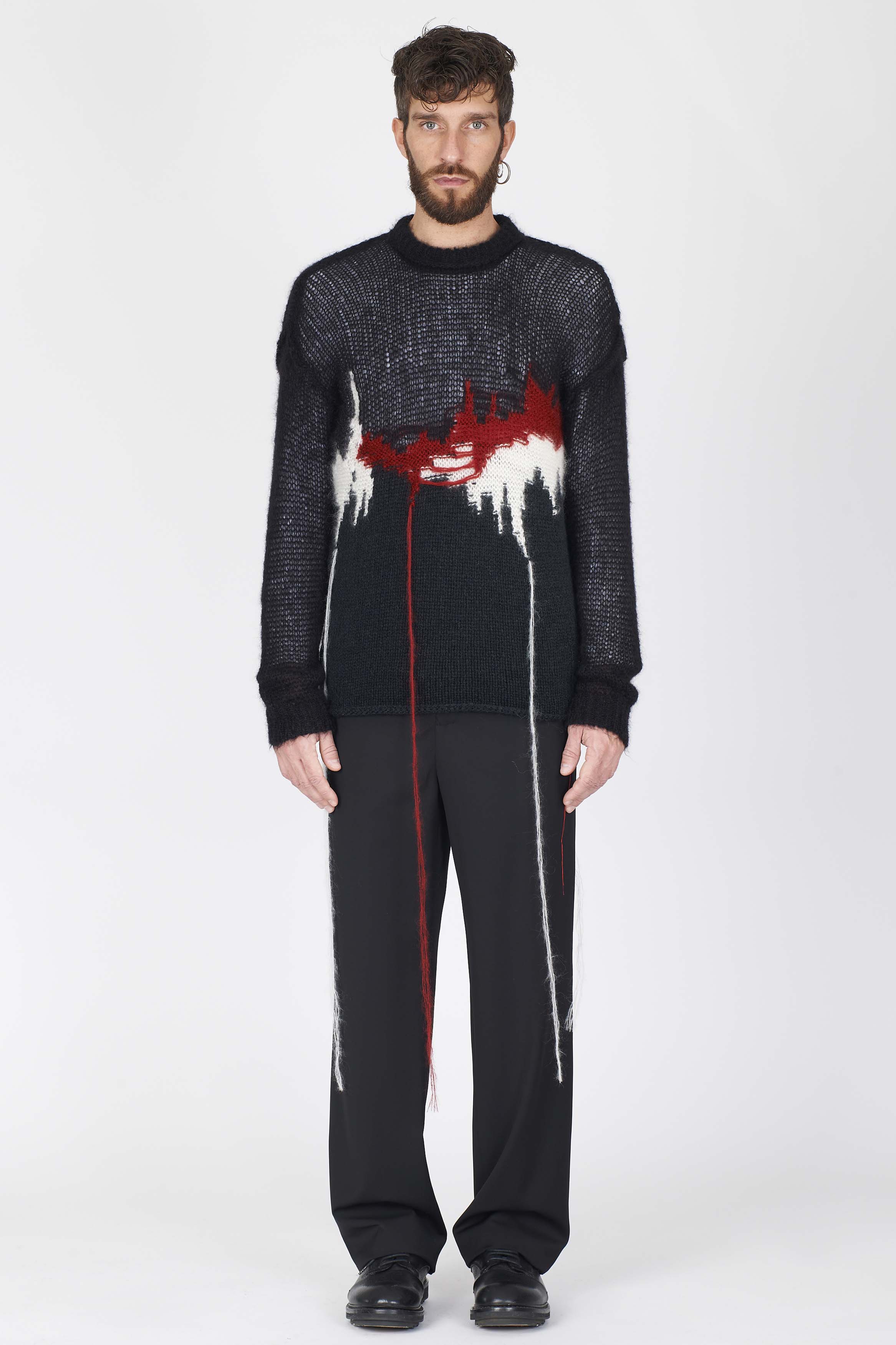 Isabel Benenato Mohair Contrast Panel Knit Red. Long sleeves. Floating strings details at front and back.Colour: Black/Red/White. Composition: Mohair