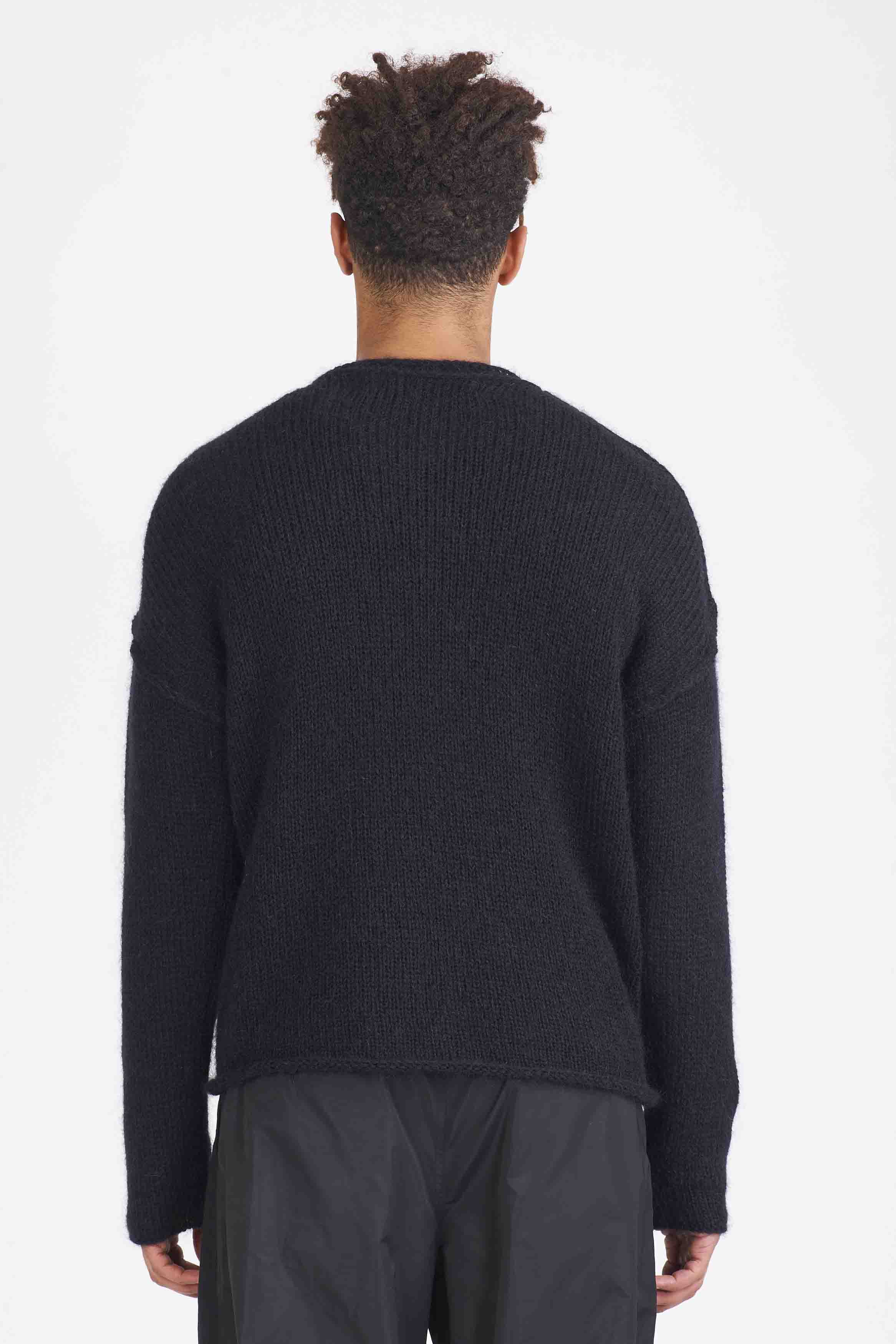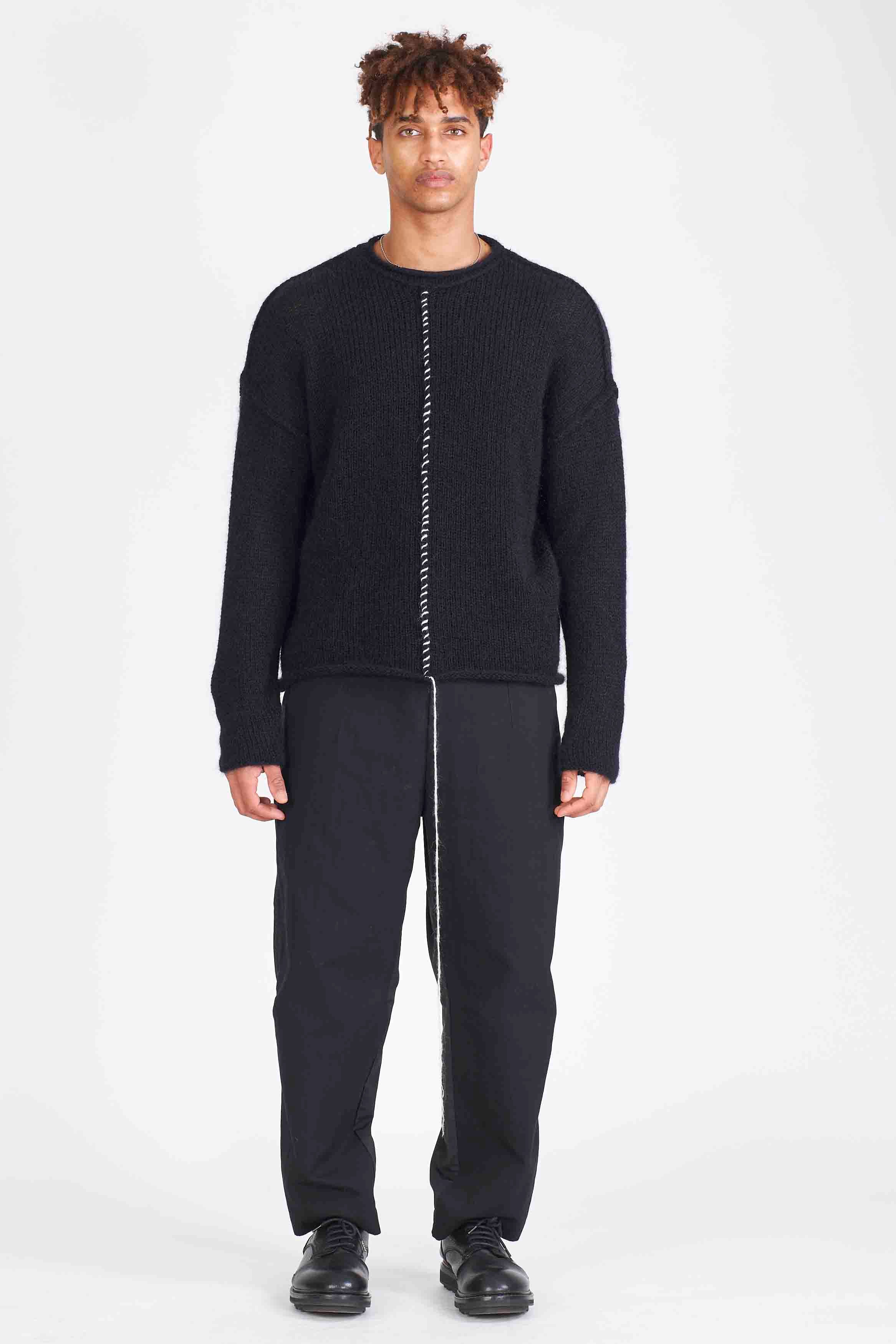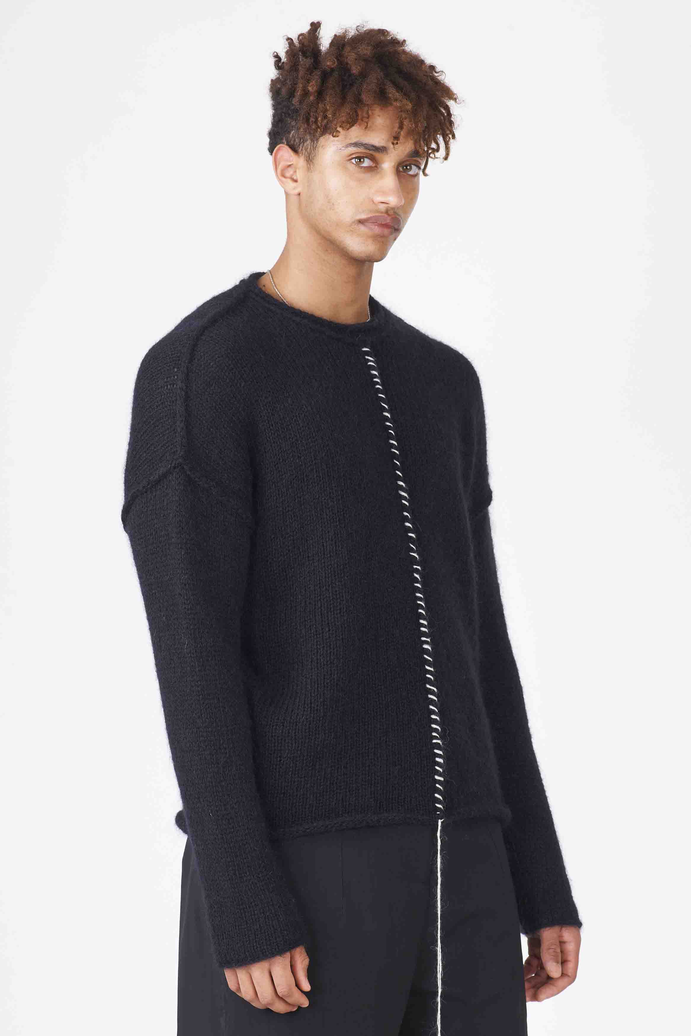 Mohair sweater from Isabel Benenato in Black. Long sleeves. Round neck. Boxy fit. Light knit. Signature thread detailing at front.