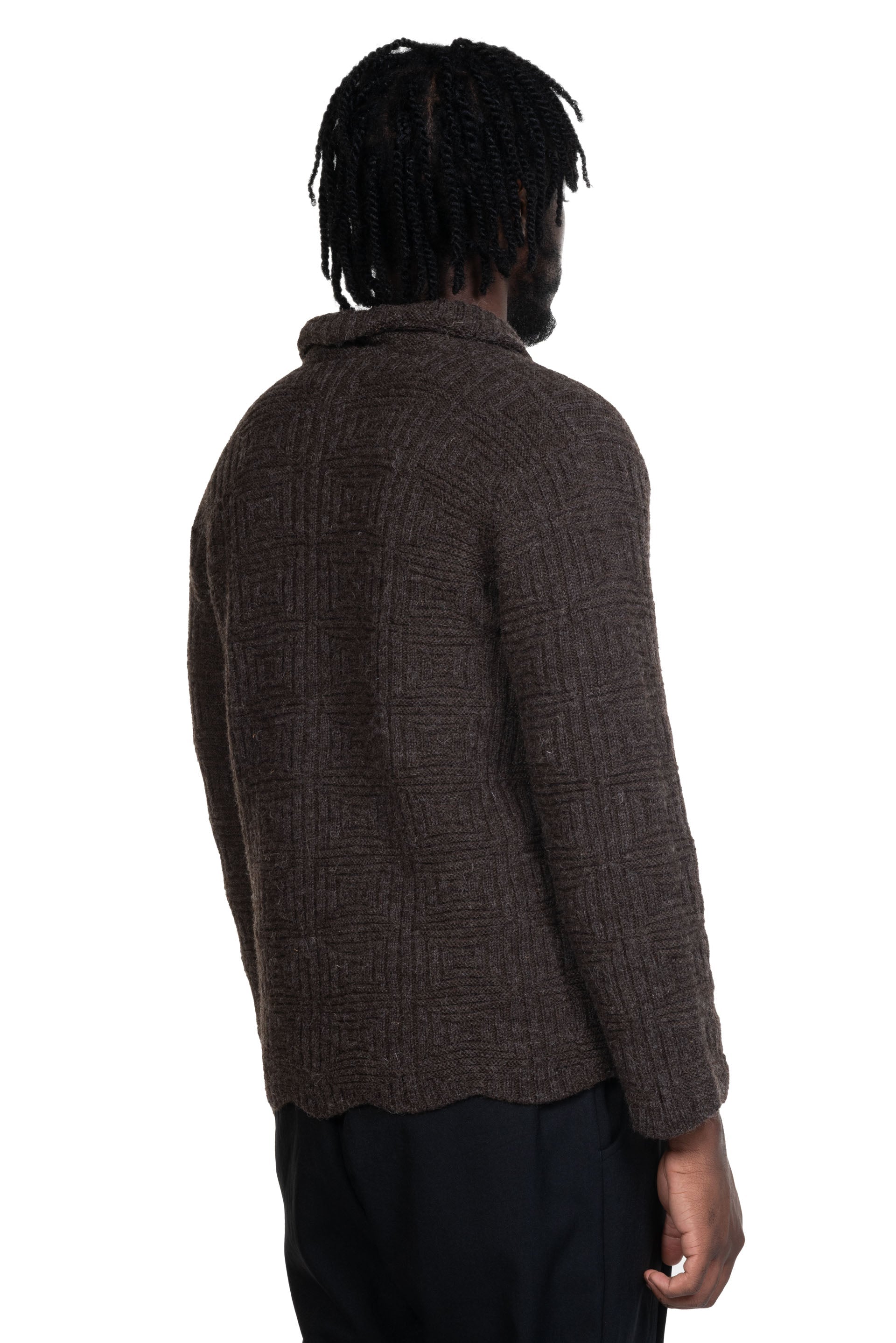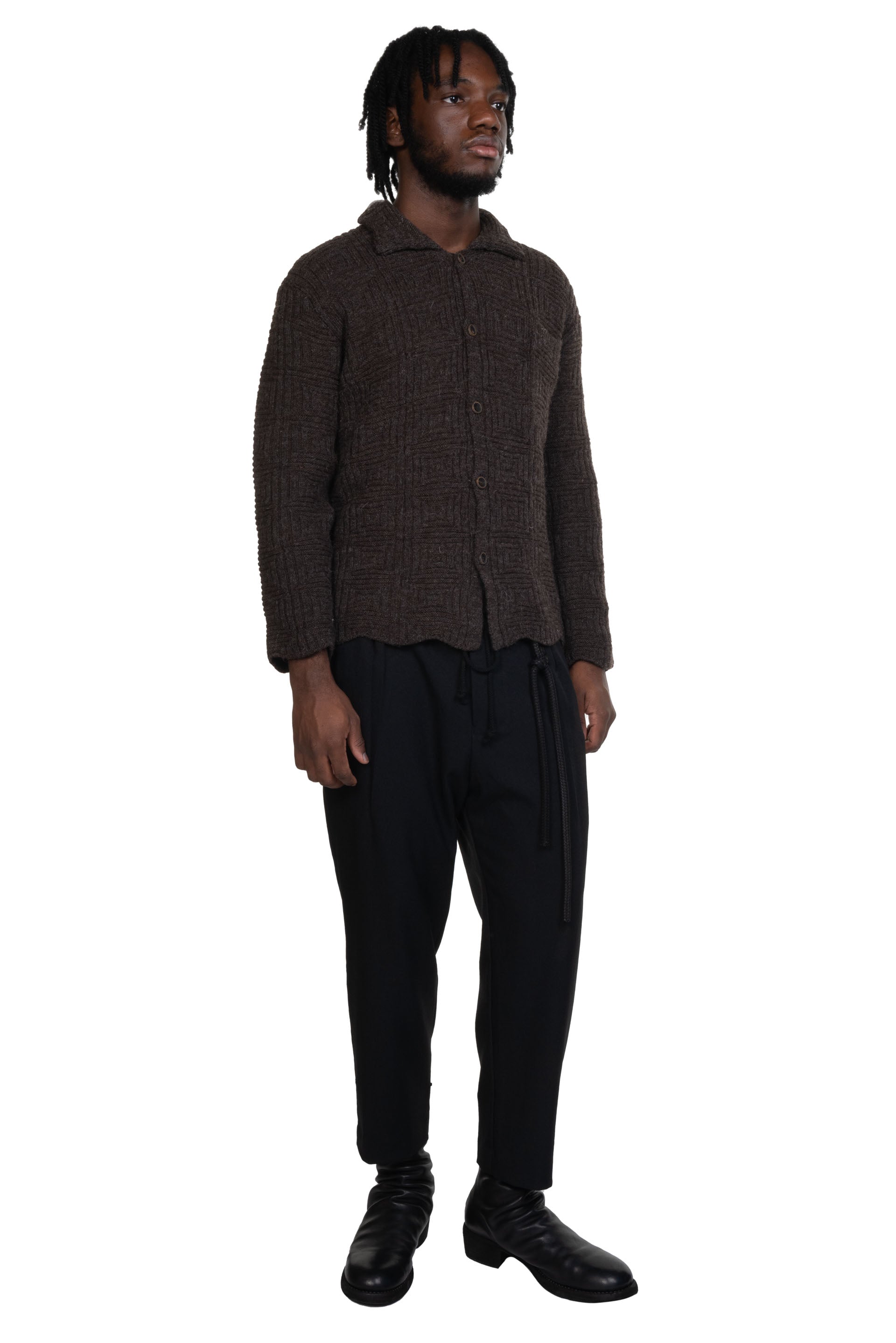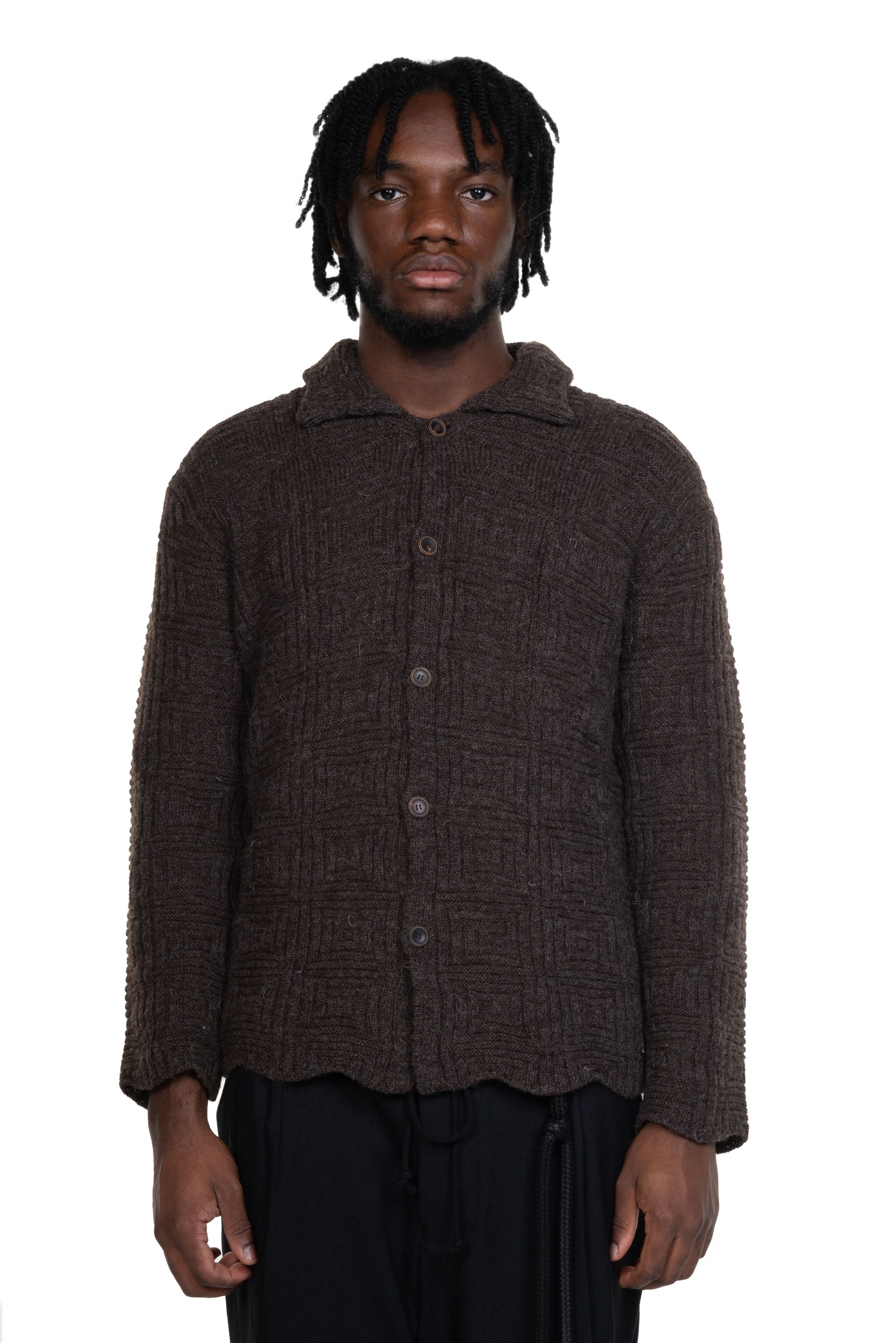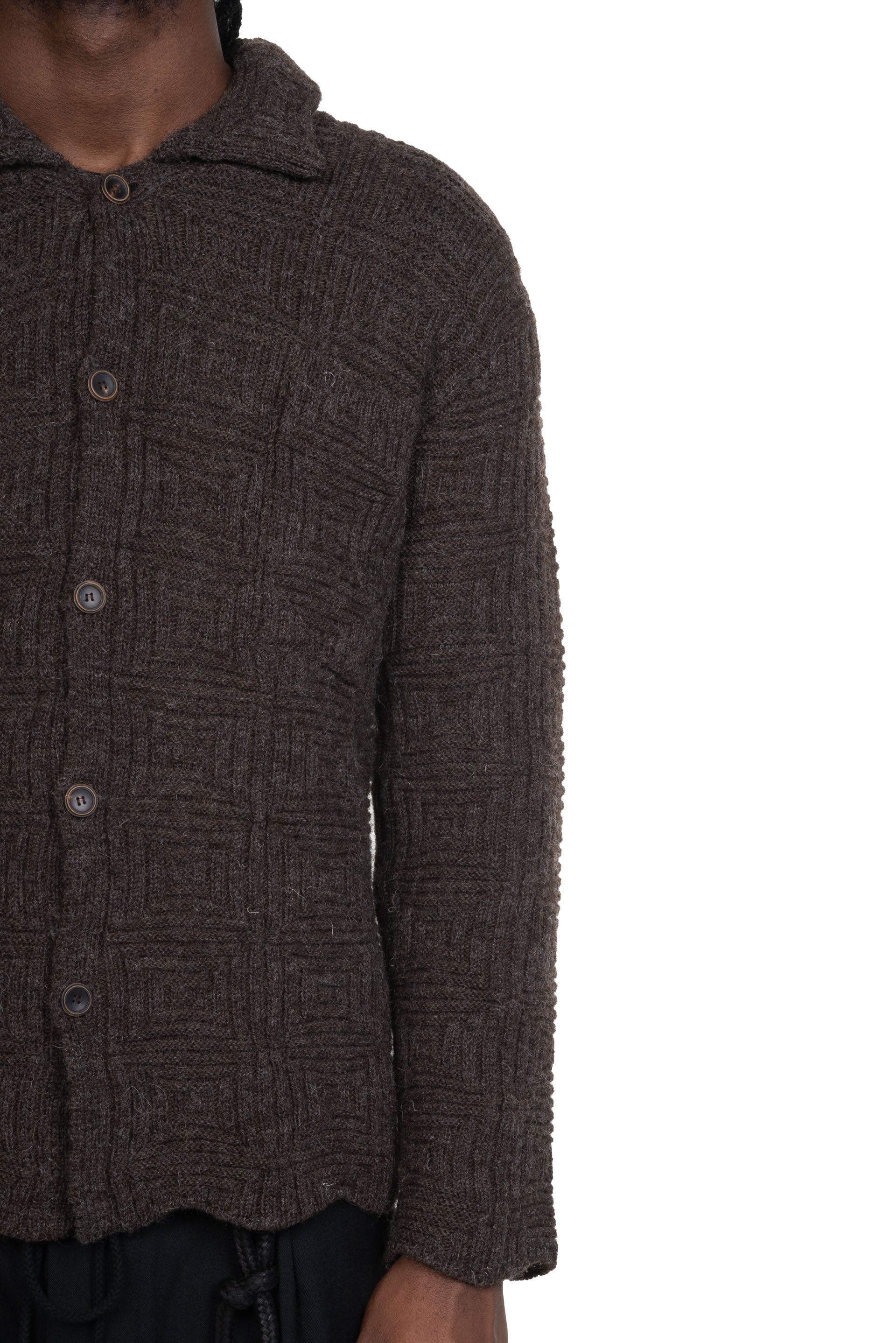 Long sleeves. Button closure at front. Classic collar. Horn button. Soft wool knitted fabric.