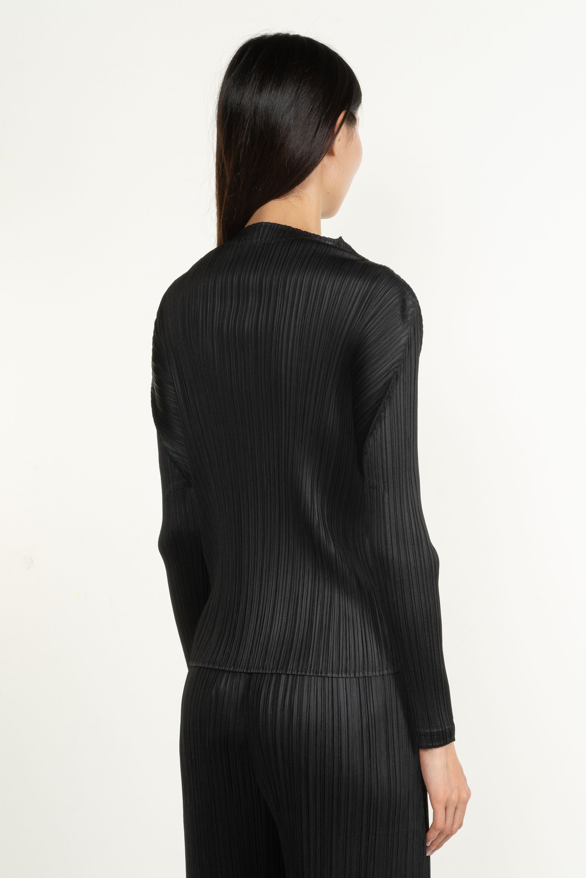 Pleats Please is crafted from a single thread, then creases are added after the clothes have been sewn into shape offering a combination of convenience, comfort and coolness. Pleats Please designs are simple with a strong silhouette as seen with the Monthly Colors February Top Black.
