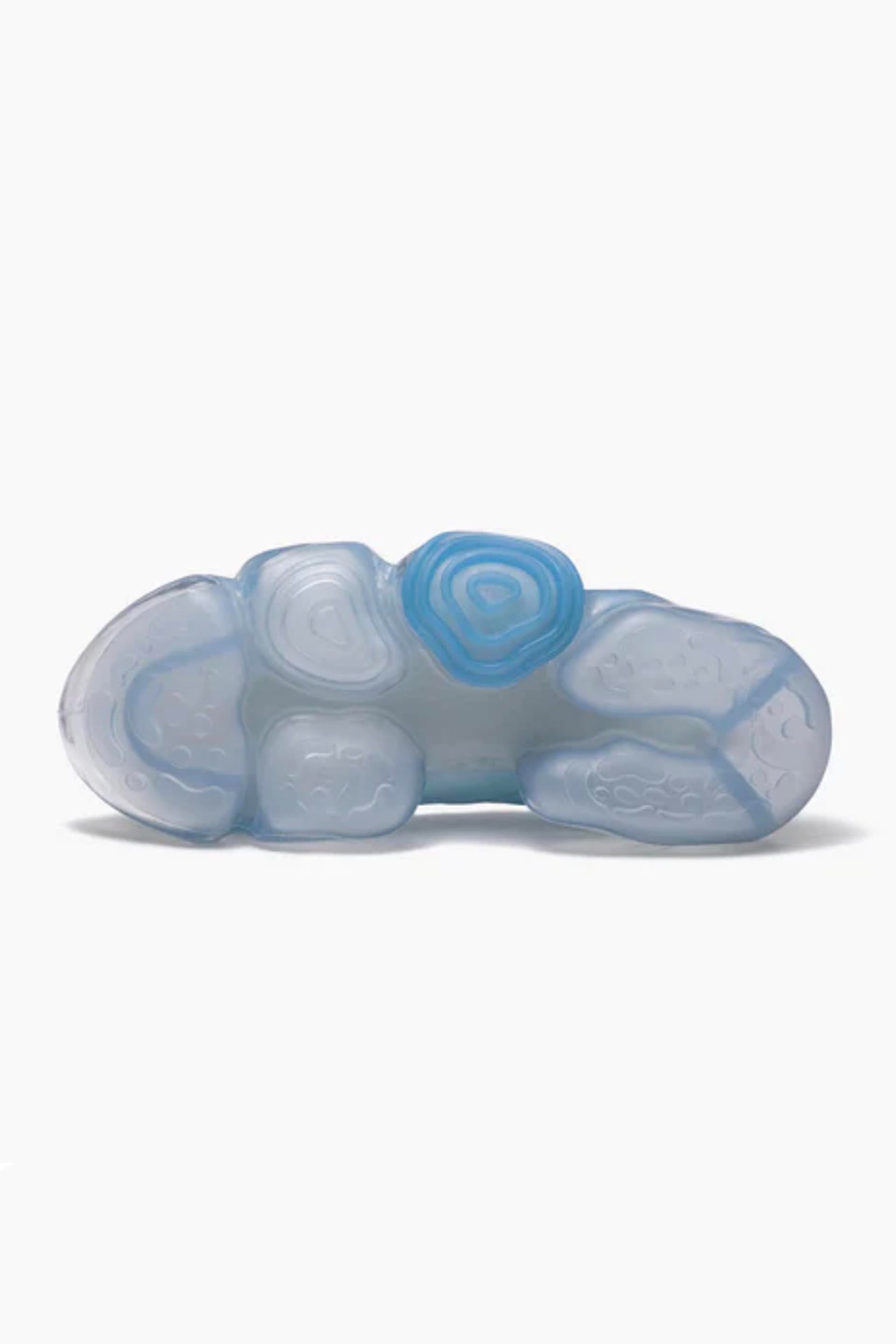 Footwear that looks as if you have stepped on something huge and gel-like. The outsole, which is supposed to be sturdy to support the entire body, is deliberately made to look fluid and soft, a design that tickles the playful spirit. The rubber parts on the outside add an accent to the design. The upper has a delicate finish in contrast to the voluminous soles.The upper has a delicate finish in contrast to the voluminous soles. The sharp shape, the nape of the foot, and the gentle slope from the toe to the heel give the impression of an elegant and slender style that is not found in existing sneakers. Pumps with polyester fabric upper. The size can be adjusted with a cord stopper.