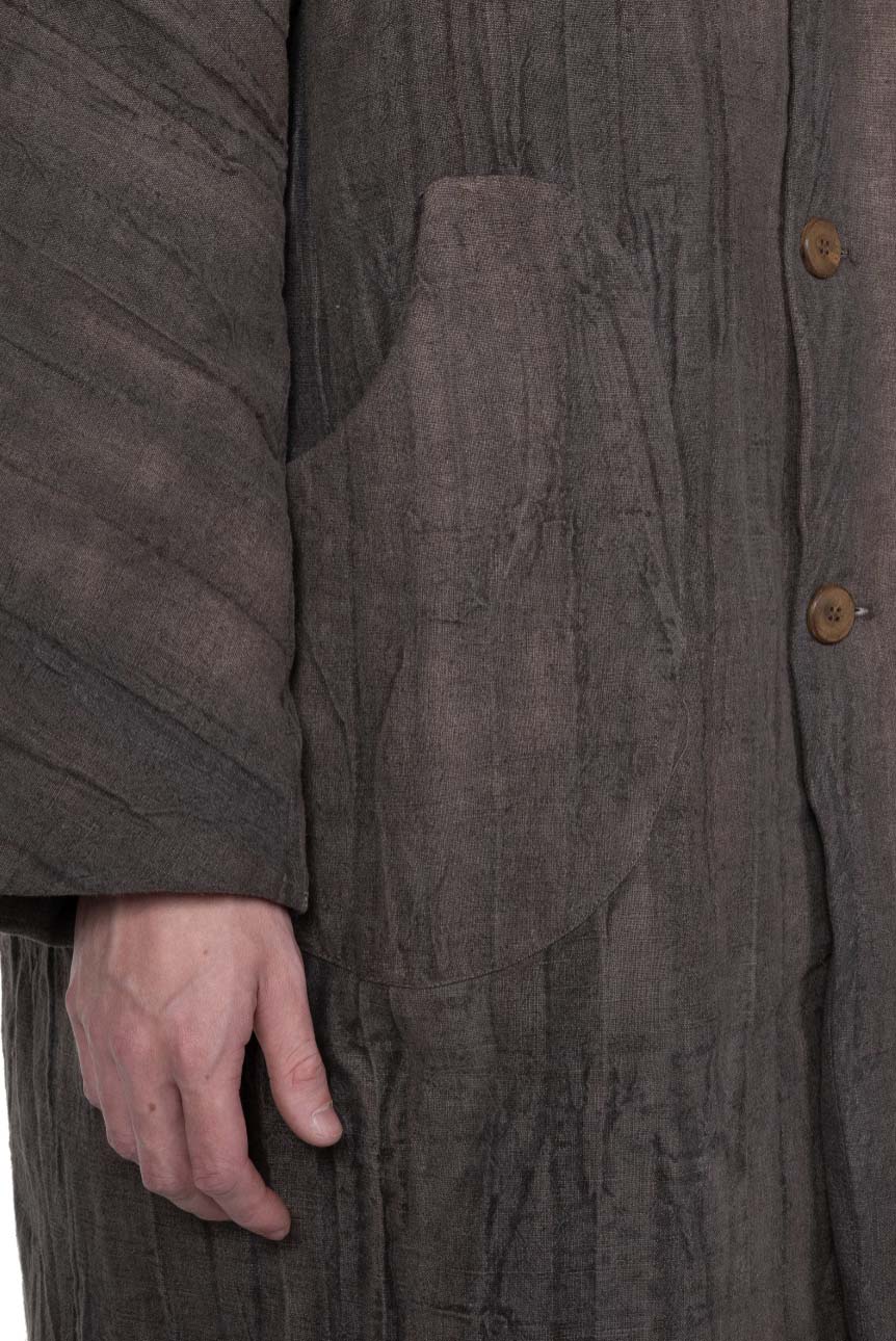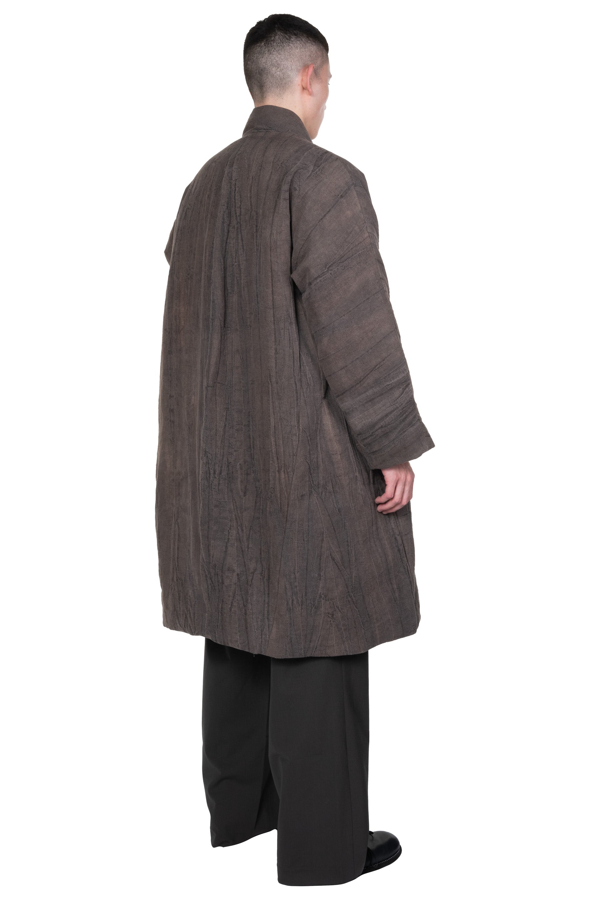 Kar Studio is an independent interior design studio, furniture and clothing brand exploring the cause and effect of aesthetics, integrating tradition and modernity. Kar is presenting modern design with Oriental philosophy. Inspired by art, literature, memories and emotions Kar focuses on design sensibility aiming to convey emotion that will resonate with people as seen with the Mud Brown Padded Long Coat.