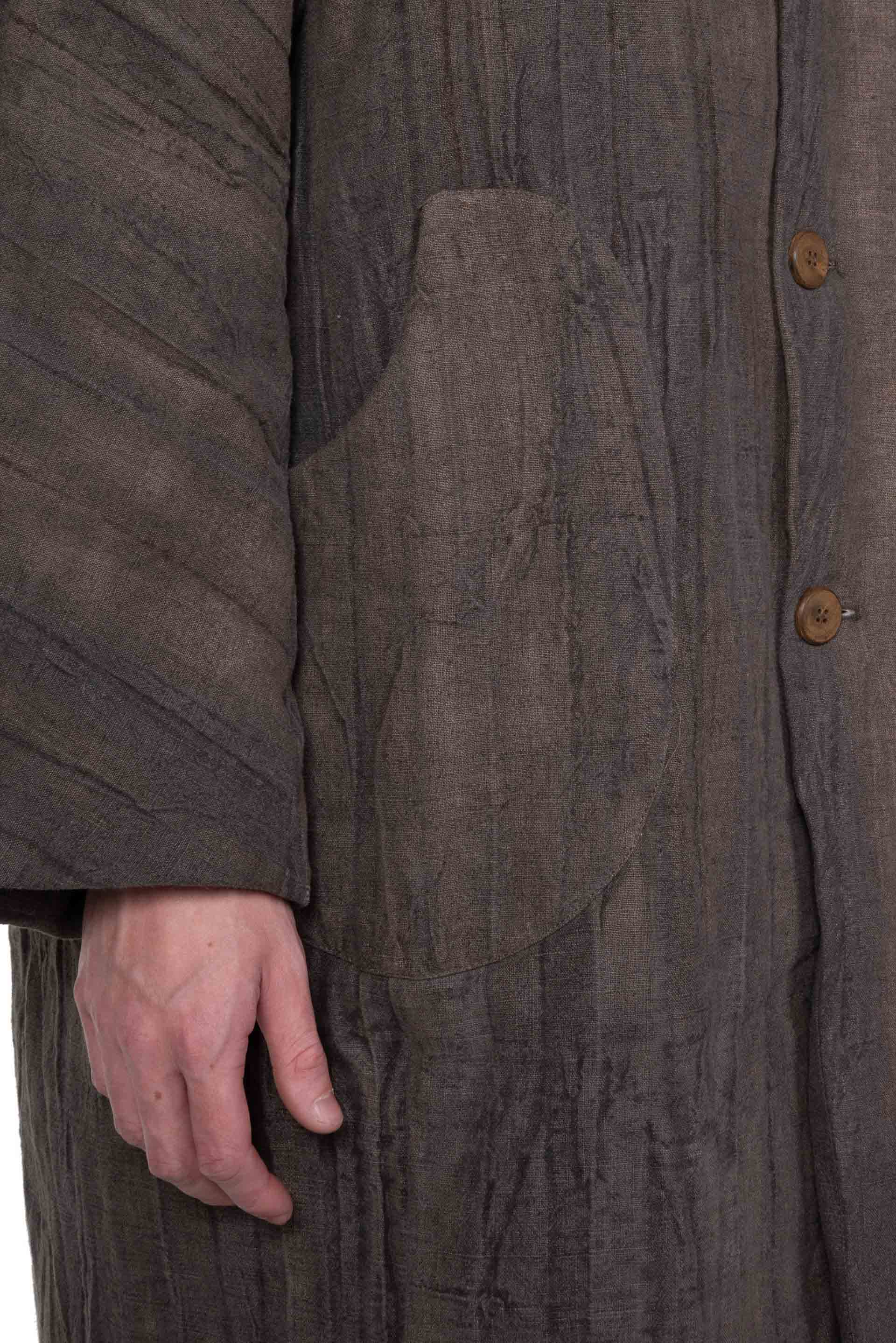 Kar Studio is an independent interior design studio, furniture and clothing brand exploring the cause and effect of aesthetics, integrating tradition and modernity. Kar is presenting modern design with Oriental philosophy. Inspired by art, literature, memories and emotions Kar focuses on design sensibility aiming to convey emotion that will resonate with people as seen with the Mud Brown Padded Long Coat.