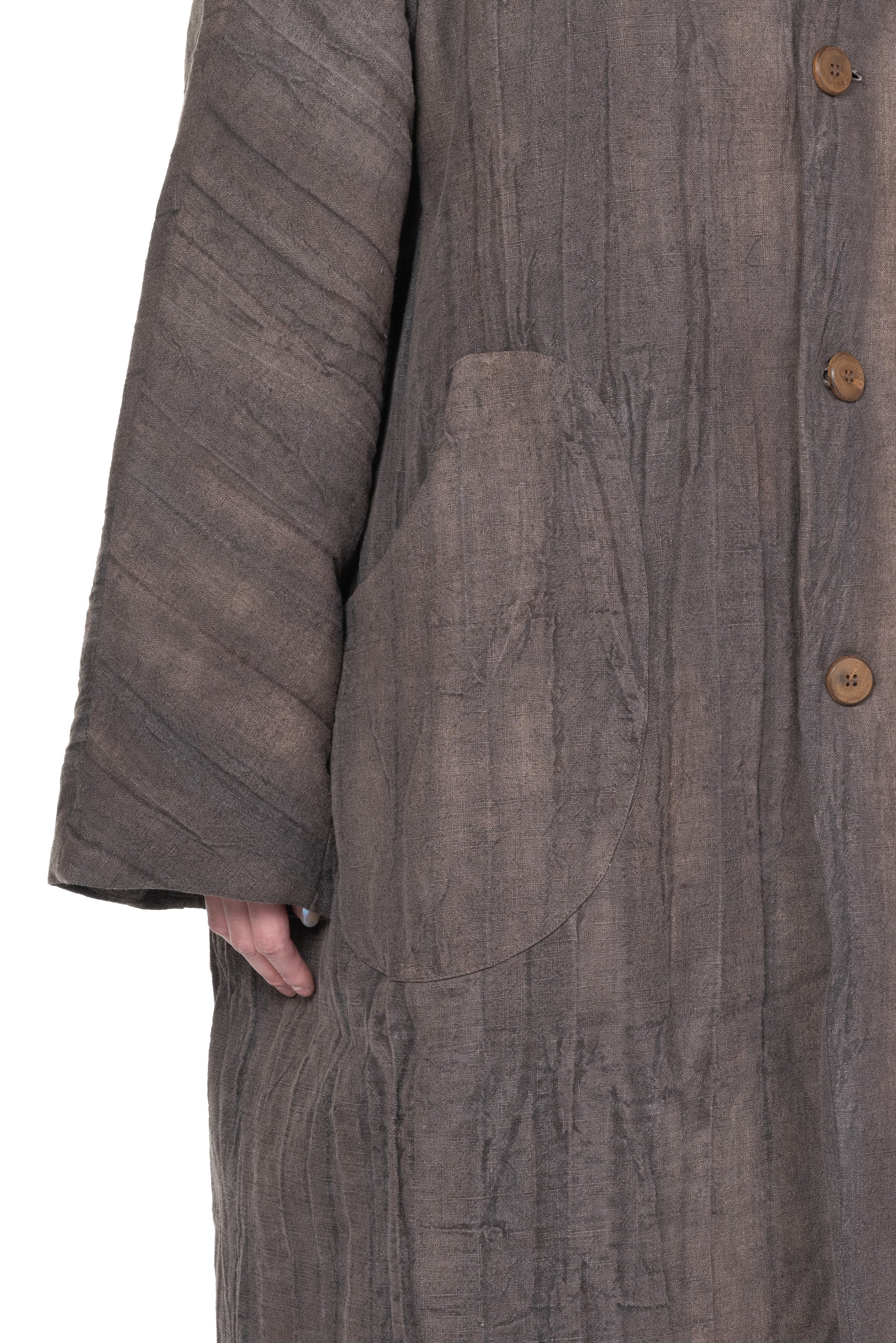 Kar Studio is an independent interior design studio, furniture and clothing brand exploring the cause and effect of aesthetics, integrating tradition and modernity. Kar is presenting modern design with Oriental philosophy. Inspired by art, literature, memories and emotions Kar focuses on design sensibility aiming to convey emotion that will resonate with people as seen with the Mud Brown Padded Long Coat.