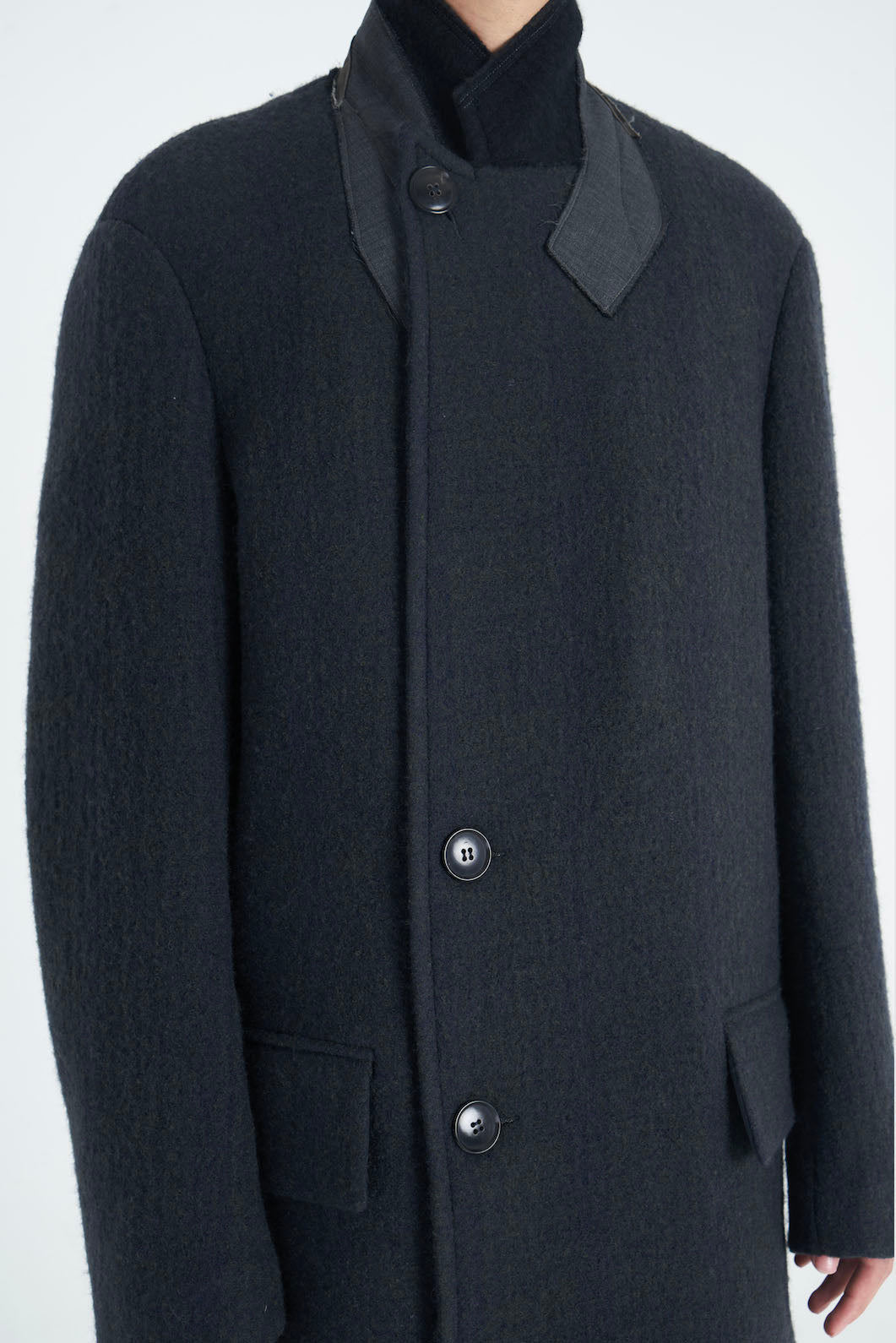 ATTEMPT reconstructs different styles and elements to create a new aesthetic system. By taking a more experimental approach to creation and production, which involves an understanding of the past and the current form of society, Attempt is creating an aesthetic form that is anchored in the present but different from it. It must ultimately be a product that cannot be defined as seen with the Multi Collar Coat.