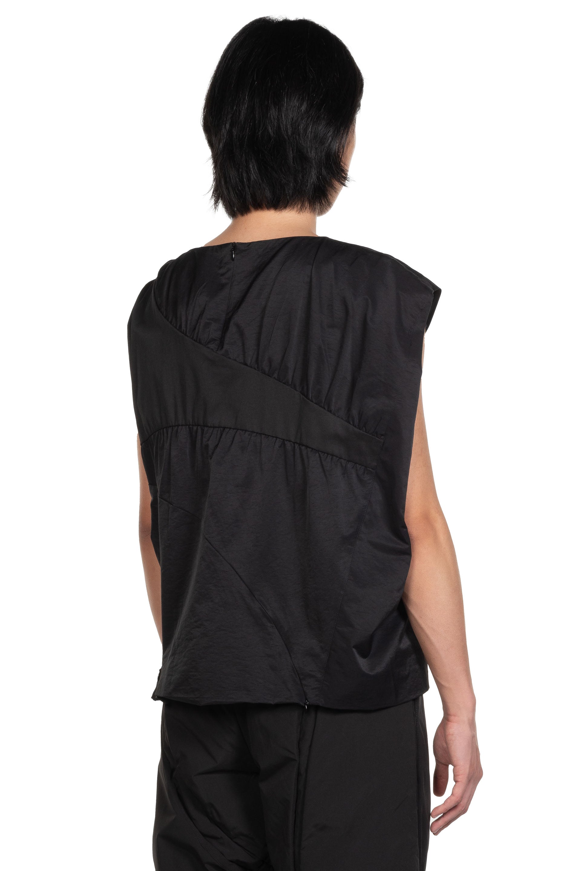 Aenrmous plays heavily with layers, asymmetry, deconstruction of pieces and detachable or adjustable elements. The brand understands trends while building something new and exciting as seen with the Nature Box Top Black.