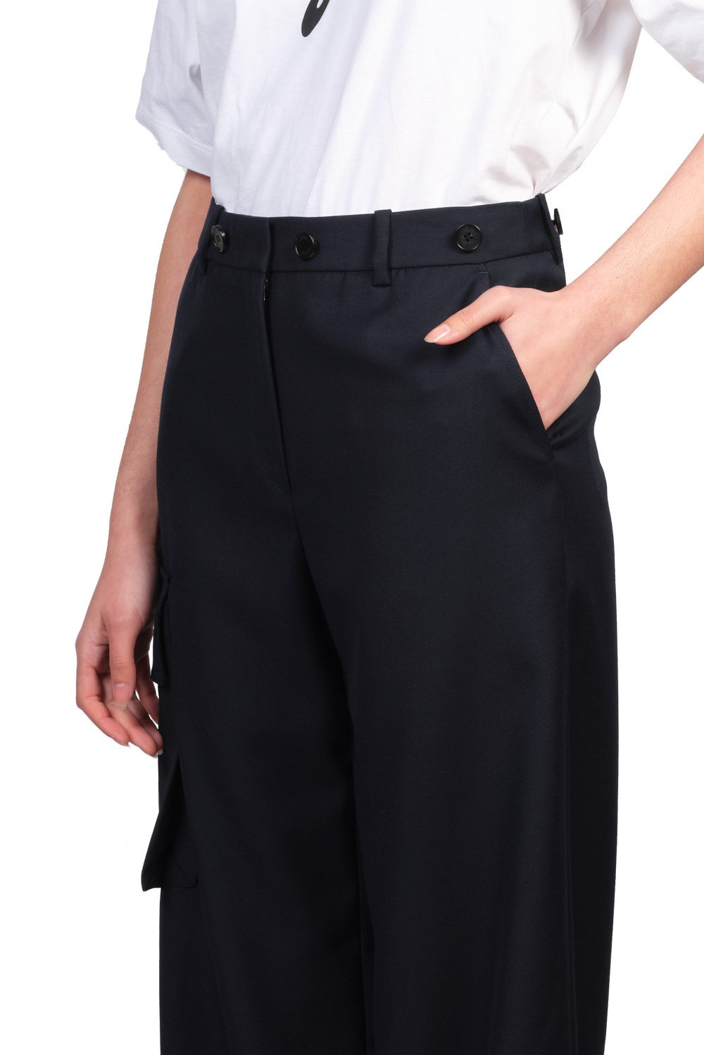 Jiwon Yun Navy Skirt Detailed Trousers.