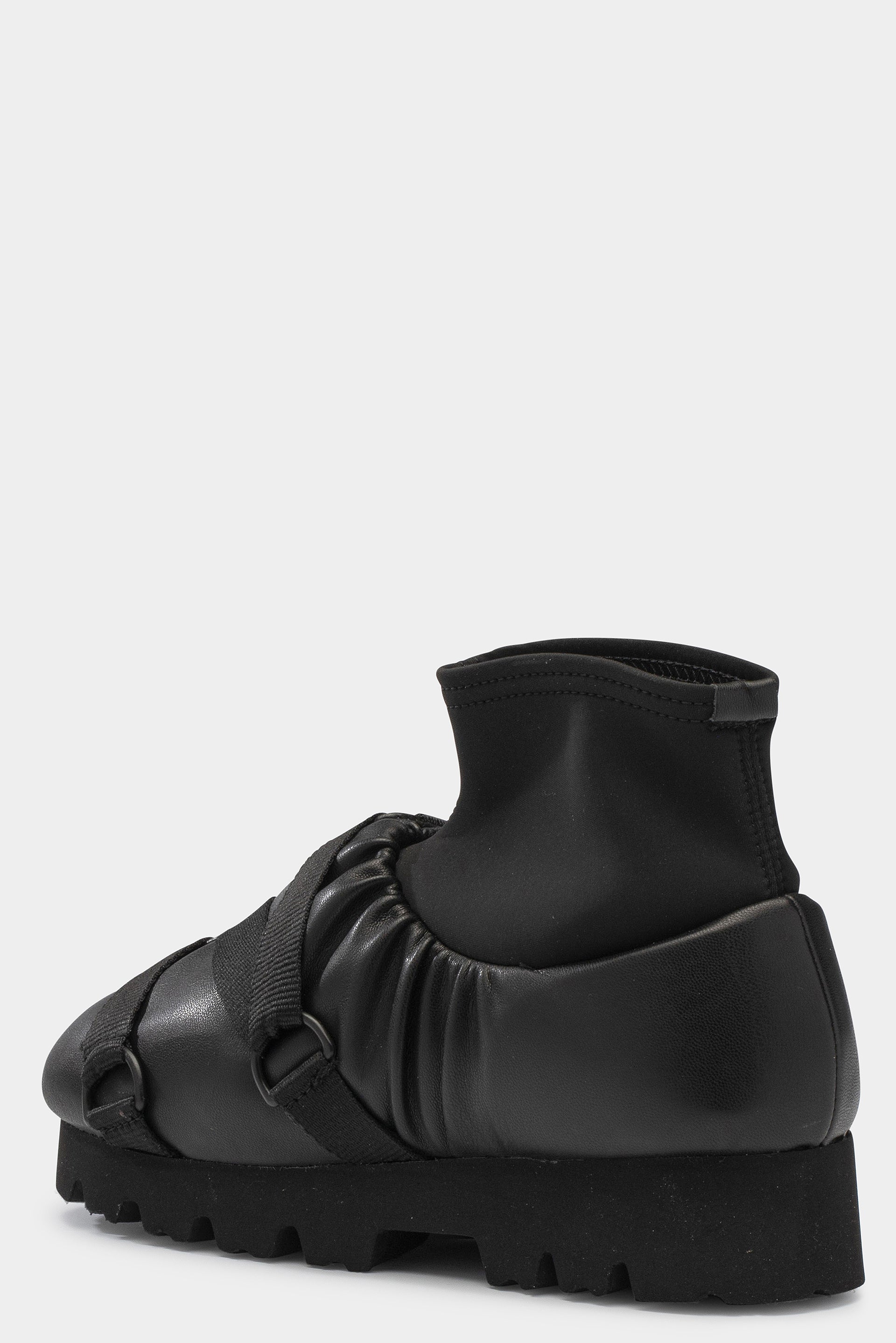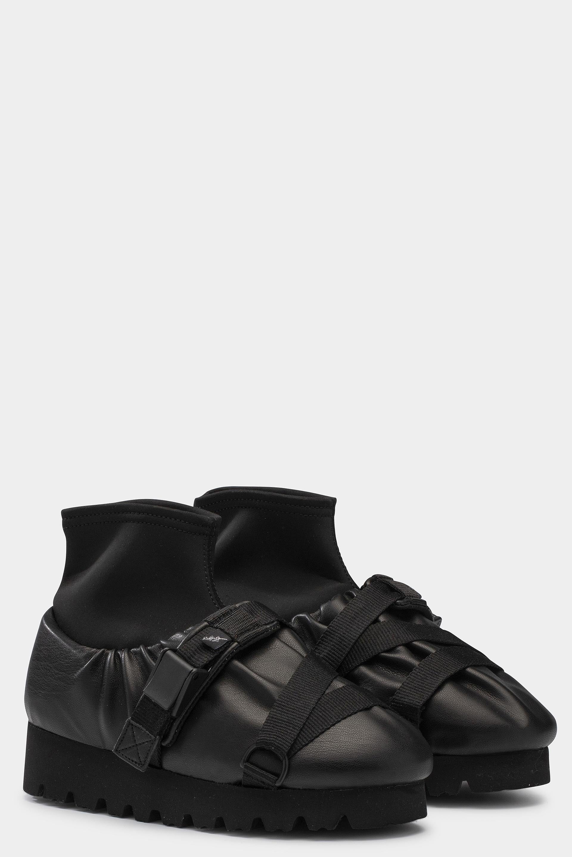 Unique and imaginative collections inspired by contemporary art, technology, and architecture. Named after the Japanese word for dream, YUME YUME makes futuristic footwear influenced by traditional Japanese silhouettes. They combine Japanese-inspired designs with a modern and futuristic approach to everyday footwear. YUME YUME aspires to create unique design pieces for all creative minds as seen with the Nawa Camp Mid Black. A vegan leather boot with a durable EVA outsole that gives the shoe a light feel. The neoprene sock and puffy upper creates a comfortable wear. Lightweight EVA outsole. Puffy warm upper. Perfect for traveling. Vegan materials. Anti-bacterial lining.