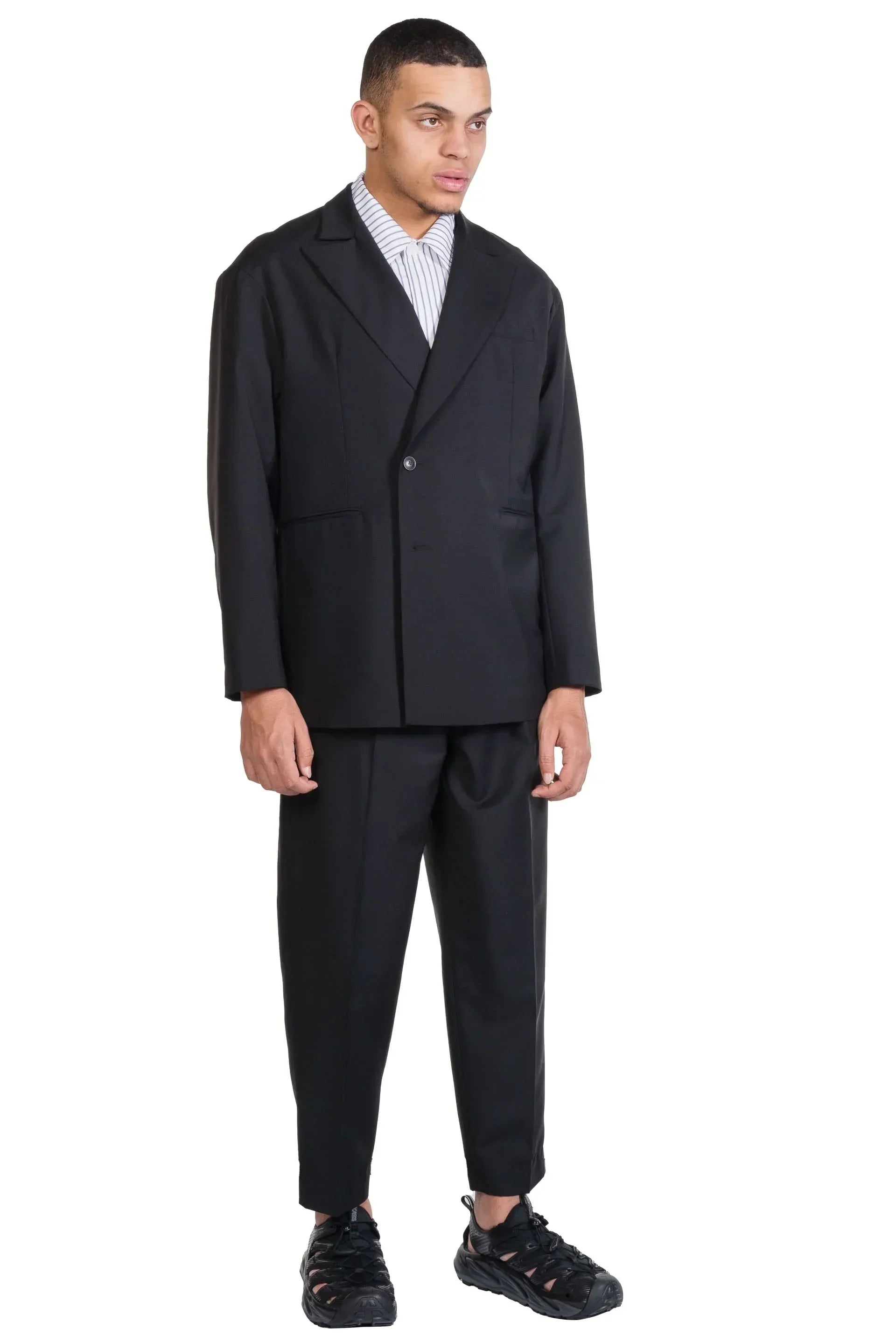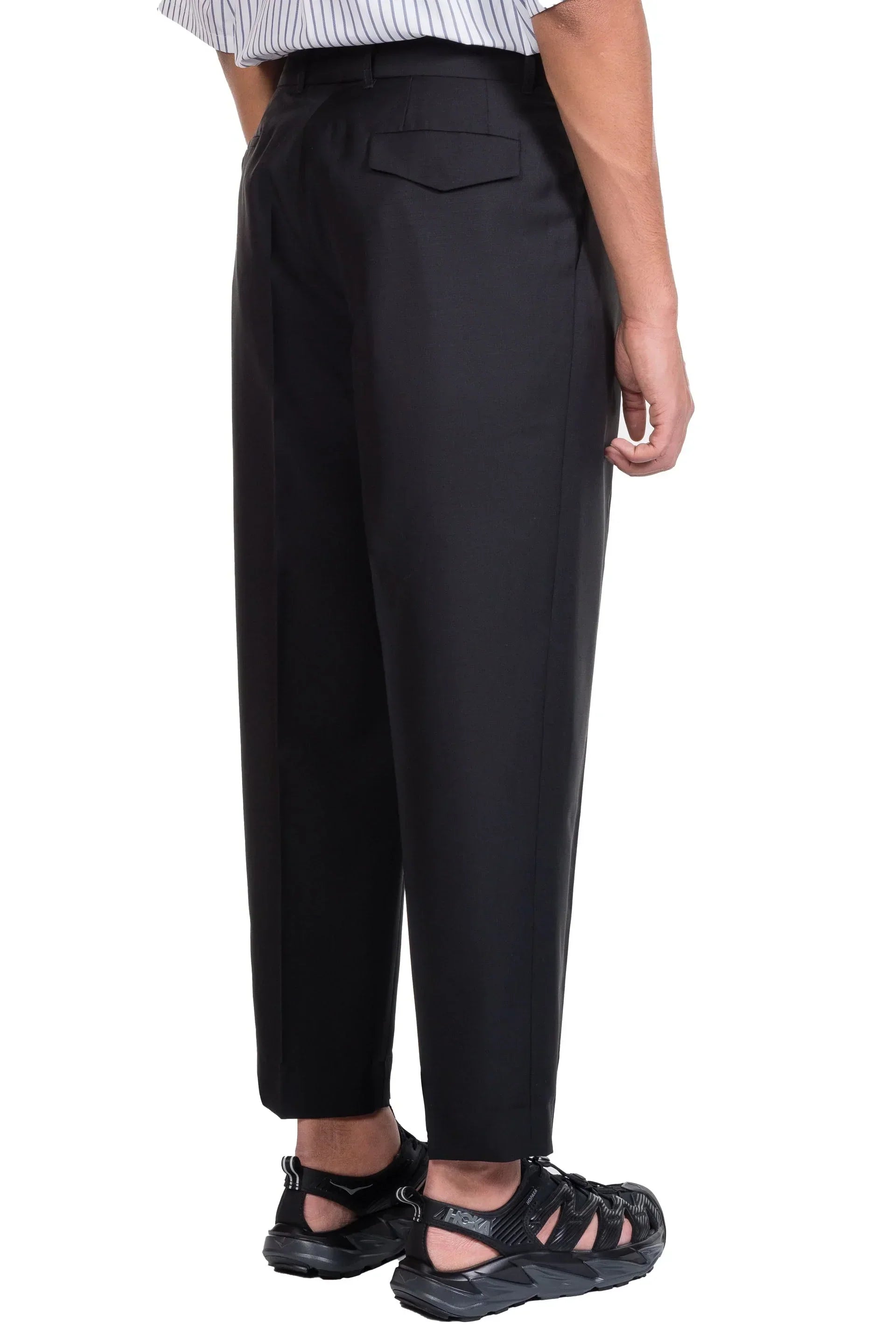 Neo Pants Black from Lownn. Two side pockets. button closure at waist. Light soft wool material.