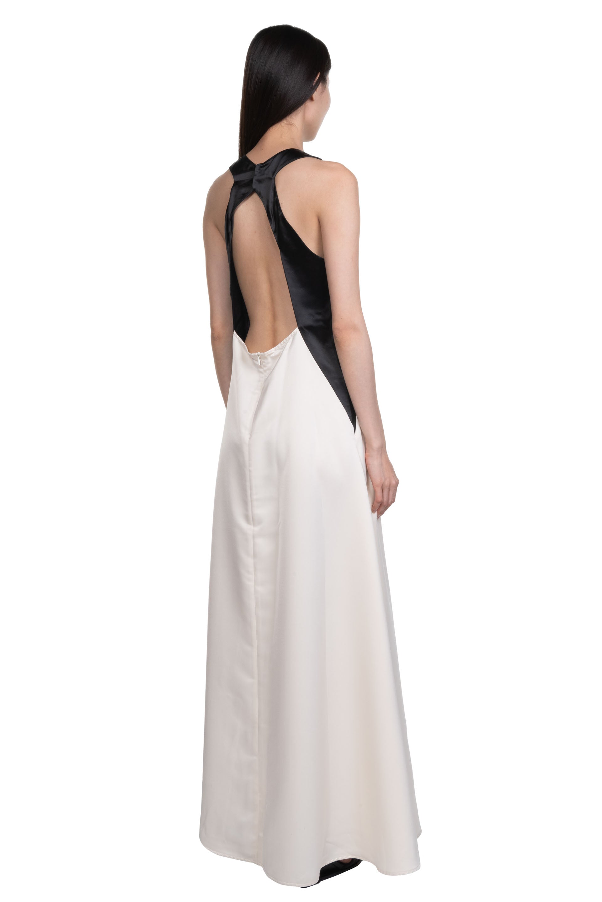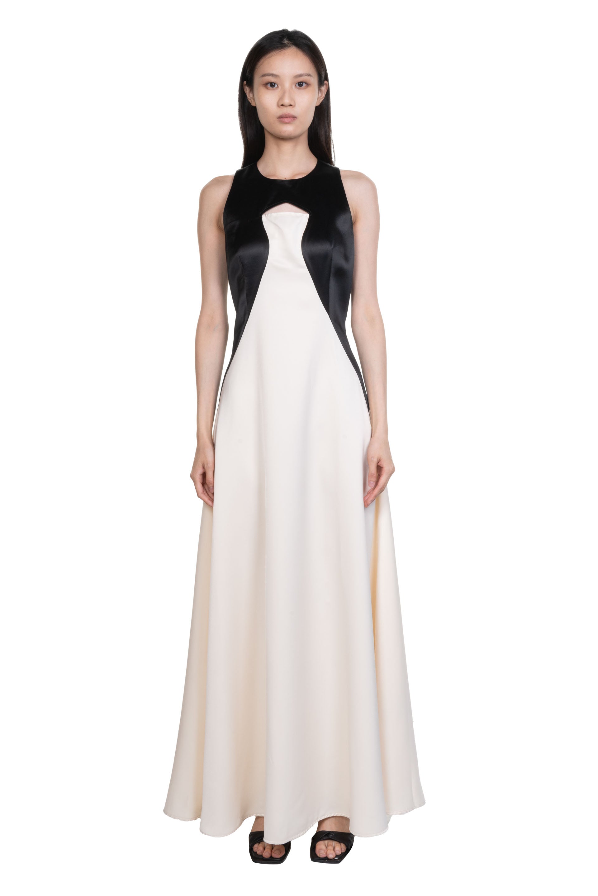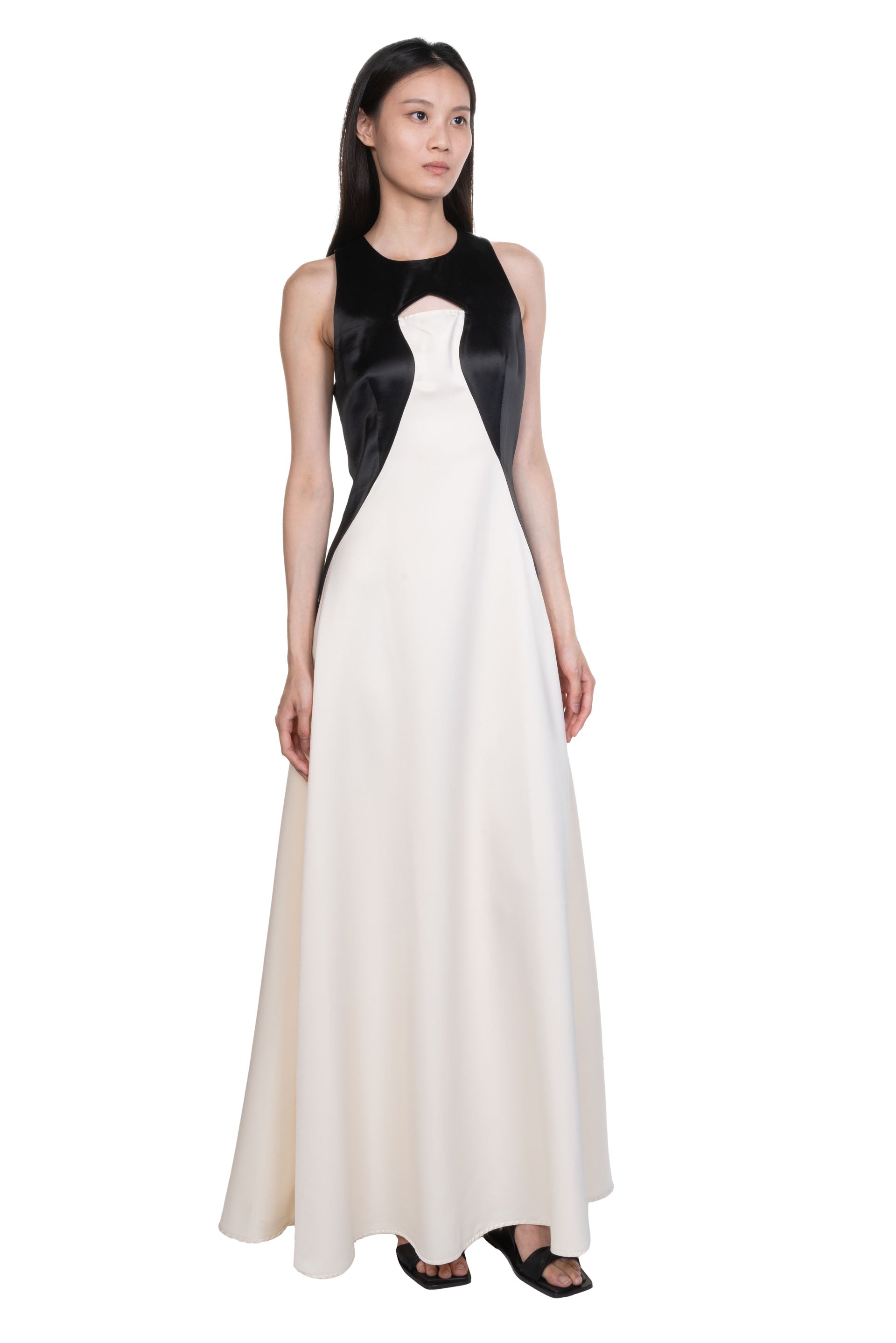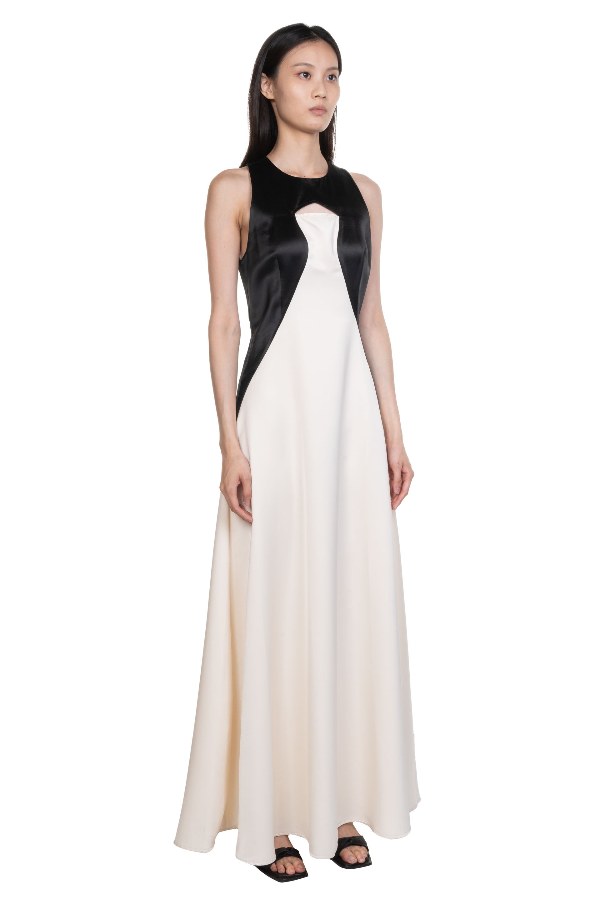 Sleeveless. Straps. Cut out detailing. Contrast fabric. Ankle length.