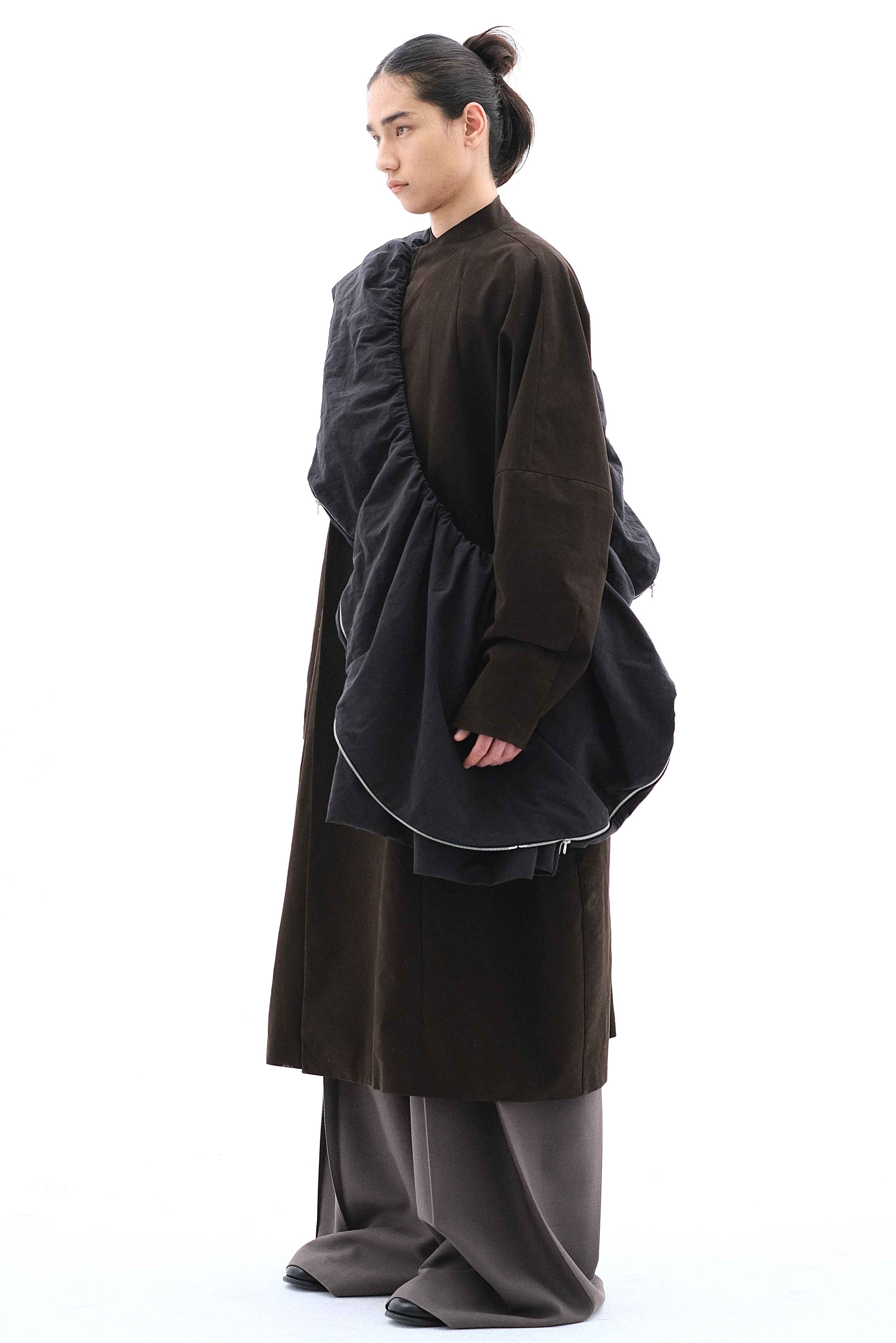 In an effort to develop a fresh visual system, ATTEMPT Project 11 reconstructs several aspects and styles. Founded by Attempt’s creator Liang Dong, ATTEMPT Project 11 is a more experimental approach to creation and production, involving knowledge of both the historical and contemporary forms of society, developing an artistic form that is both rooted in and distinct from the present. In the end, the product needs to be something that isn't easily characterised as seen with the Nine Pleat Pants Brown.