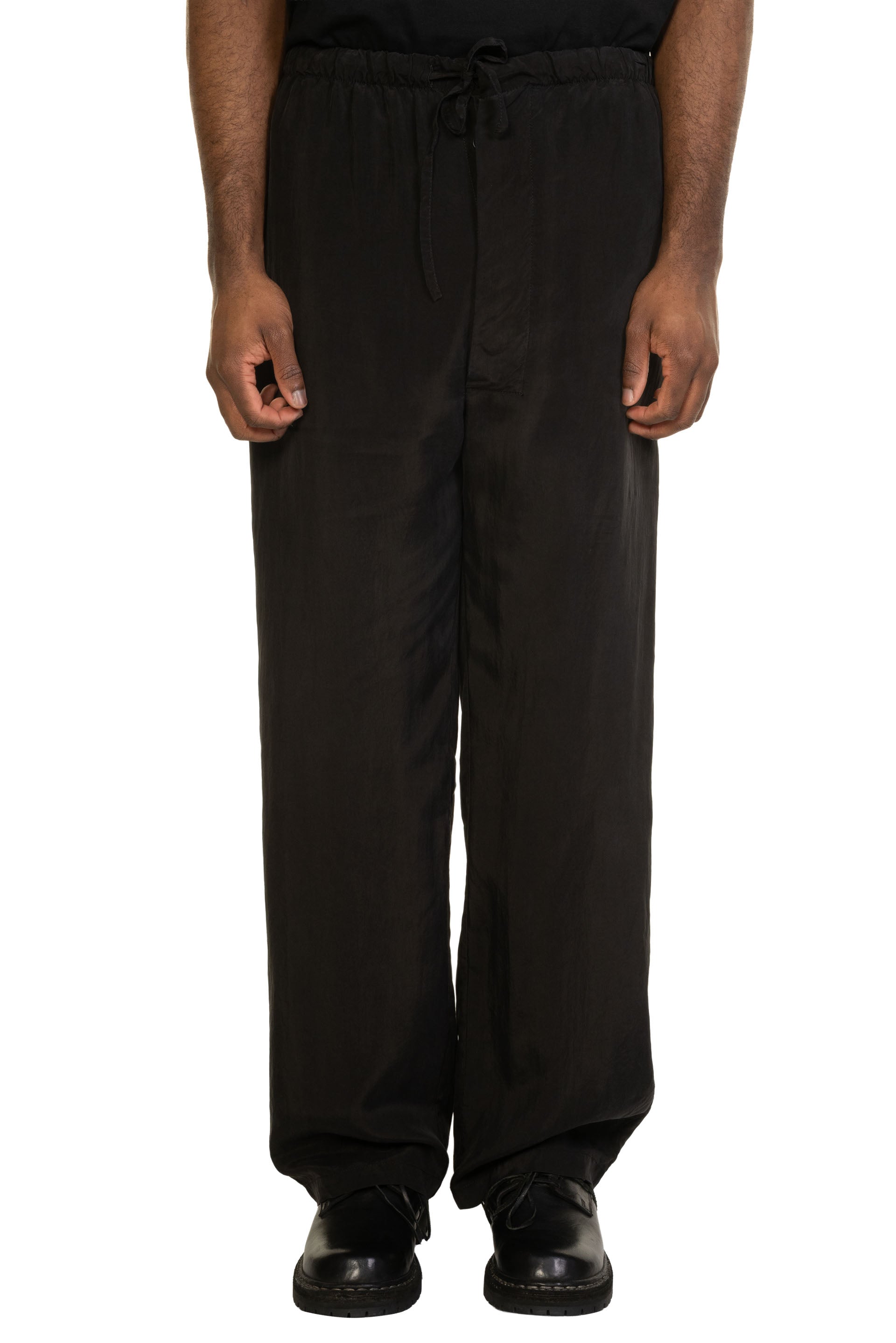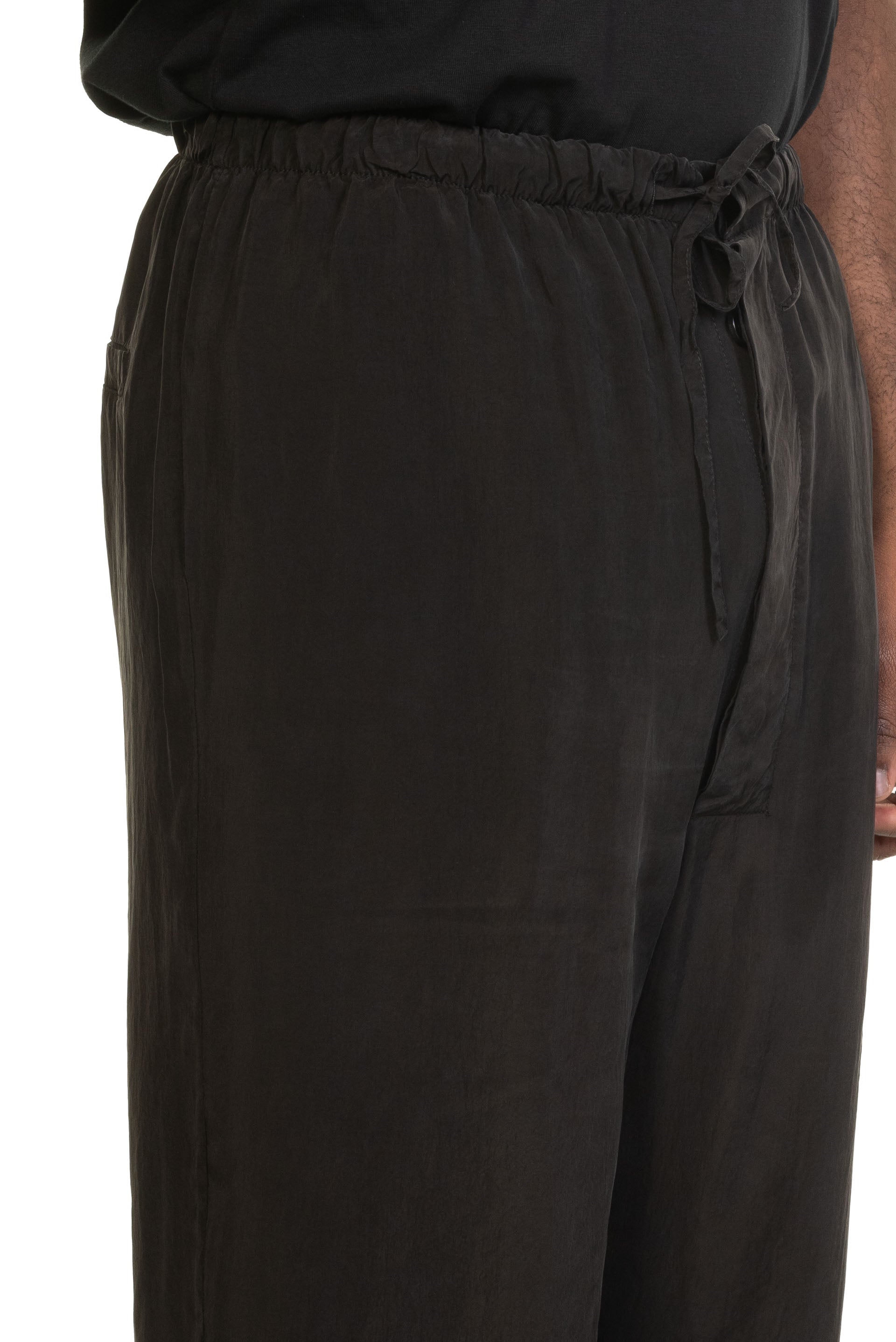 Gabriela Coll Garments Cupro Trousers. Relaxed fit. Side pockets on seams gathered waistband drawstring. Concealed button fly. Natural corozo buttons. French seamed interior. This garment is individually dyed. Each piece will be unique and colour nuances may occur.