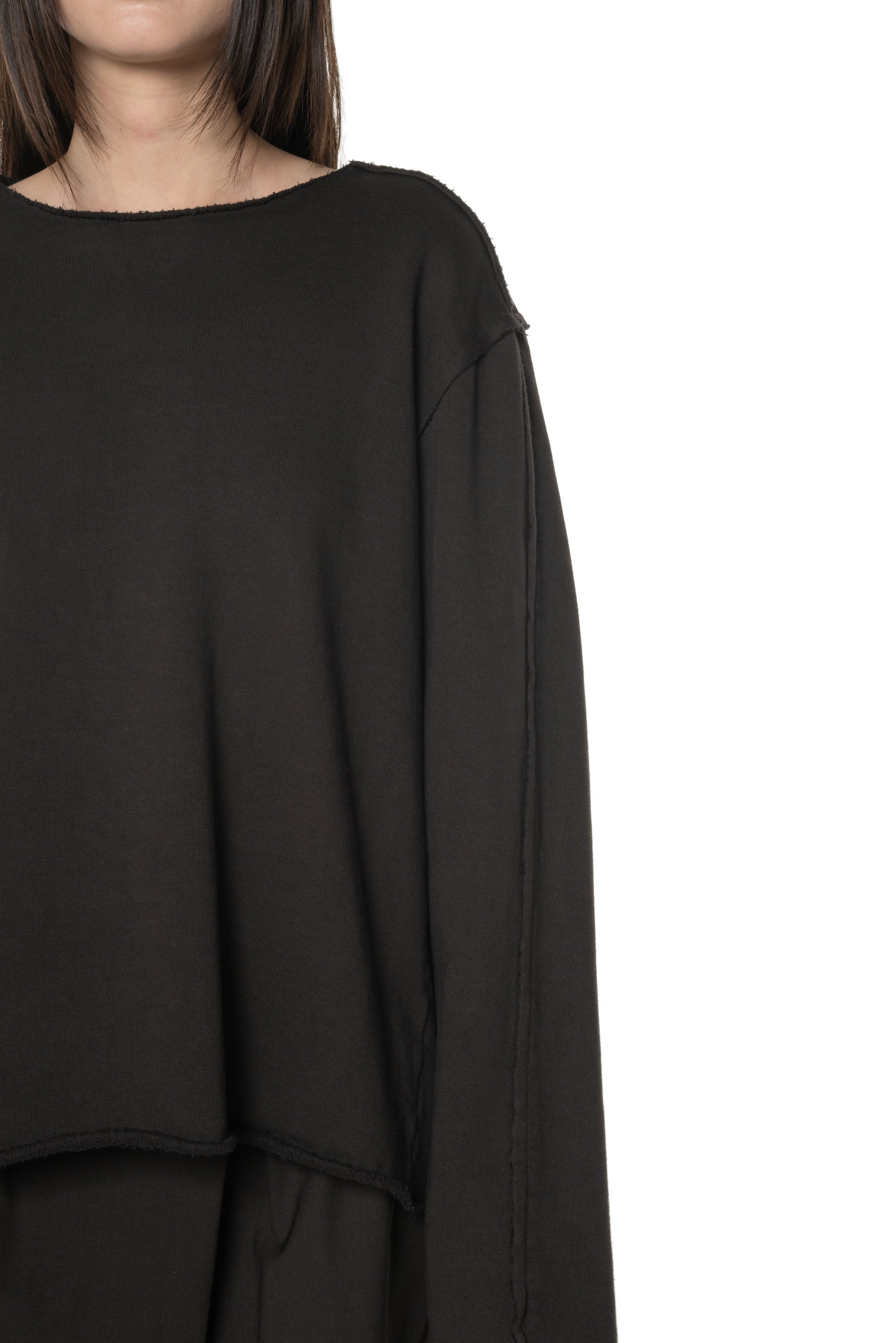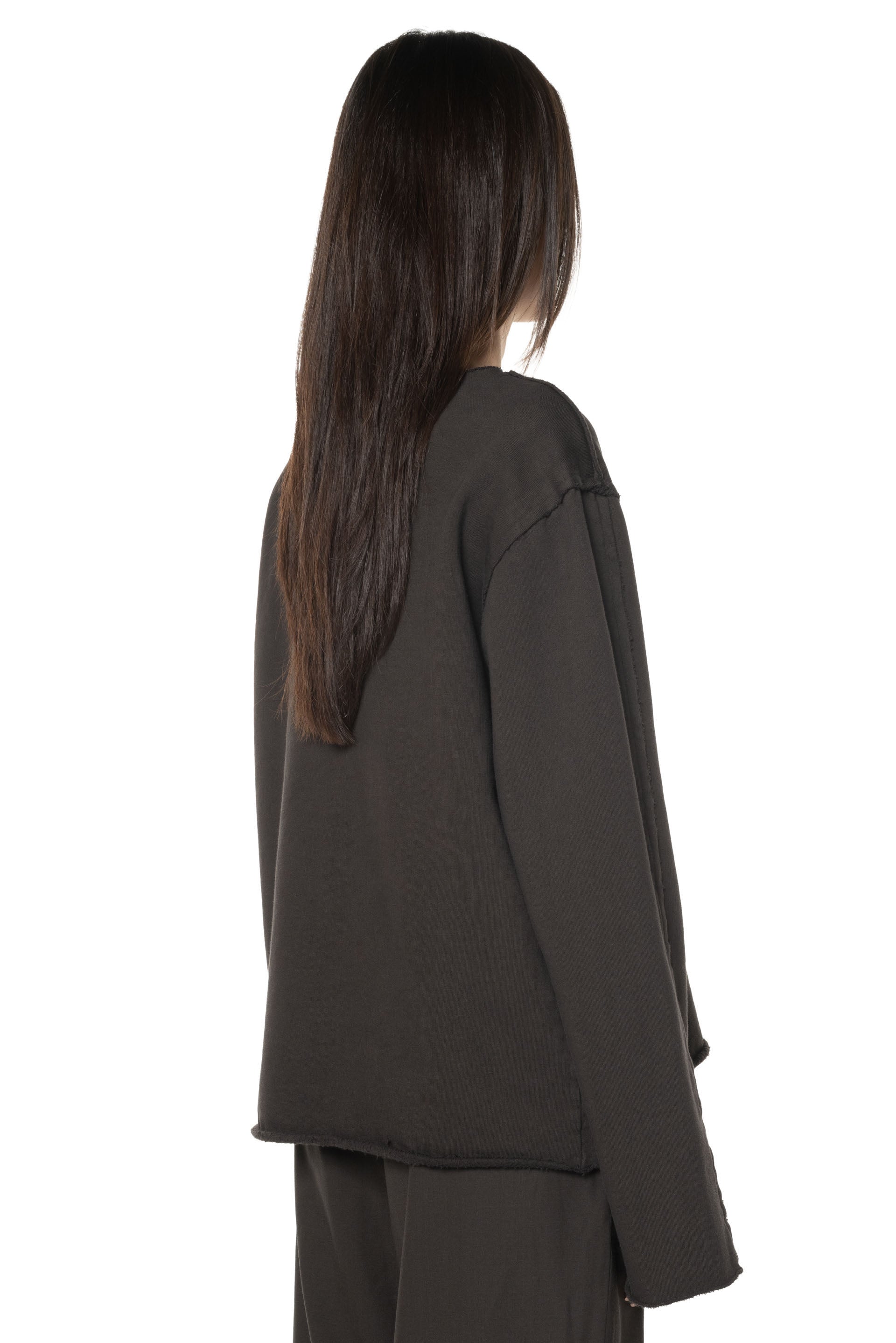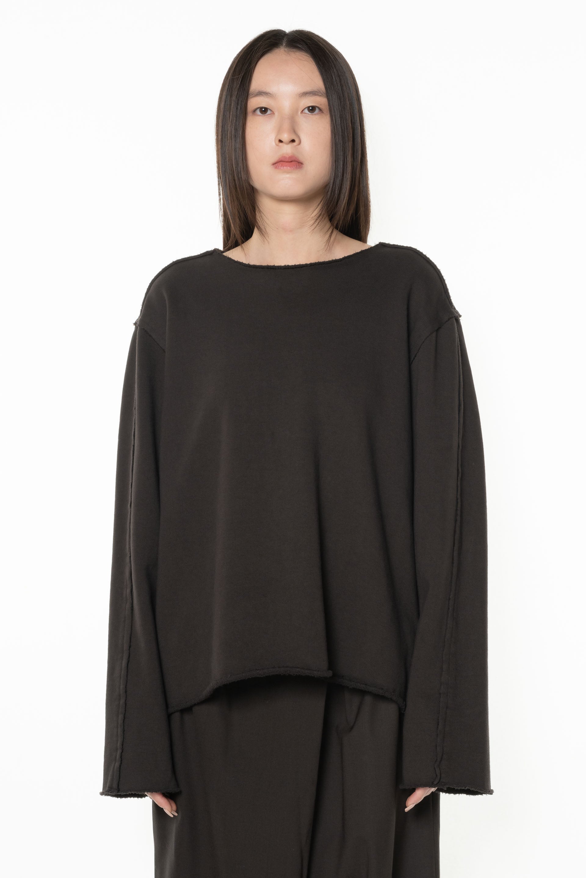 Gabriela Coll Garments crew neck top made from organic cotton for a soft, comfortable feel. It features a relaxed fit and the brand's signature raw edge detailing. Long sleeves. Boxy fit.