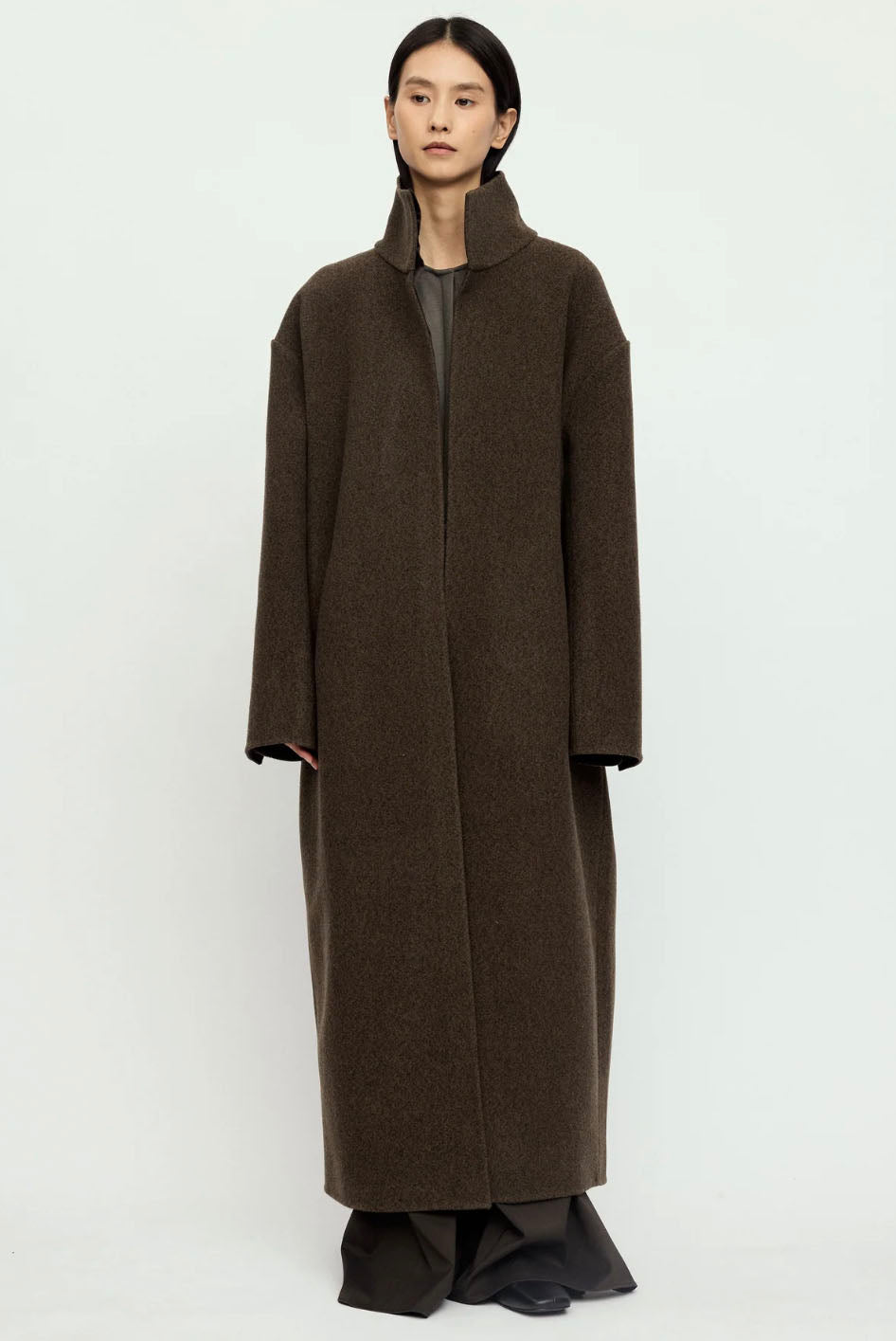 Founded by Ruohan Nie in Shanghai, RUOHAN is a contemporary womenswear label defined by refined minimalism and architectural elegance. Each collection explores the balance between structure and softness, blending Eastern serenity with Western sophistication. Crafted from natural fabrics and tailored with quiet precision, RUOHAN pieces embody timeless design and effortless wearability. The brand’s understated aesthetic celebrates modern femininity through purity of form, texture, and proportion as seen with the Oak Penrhyn Coat.