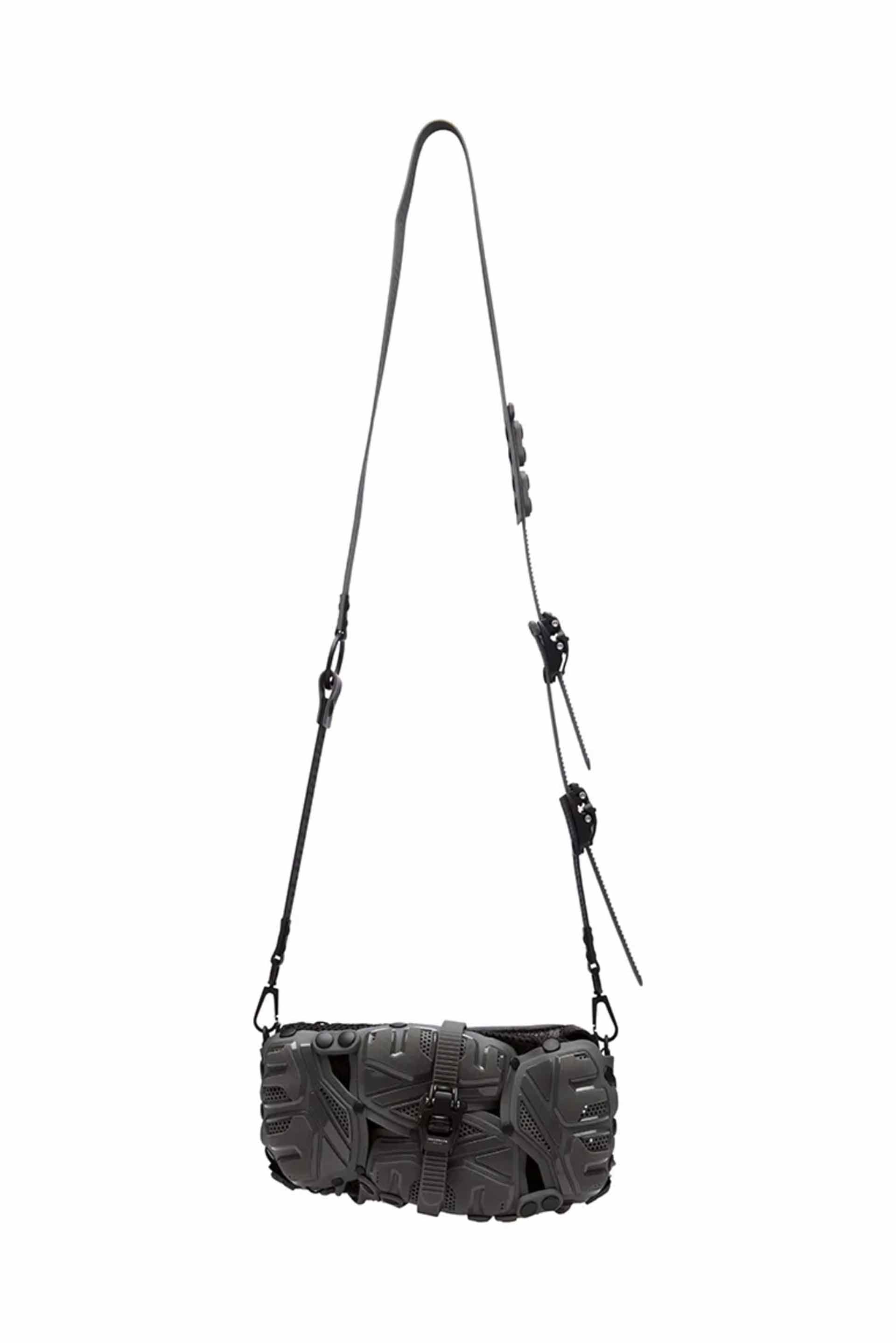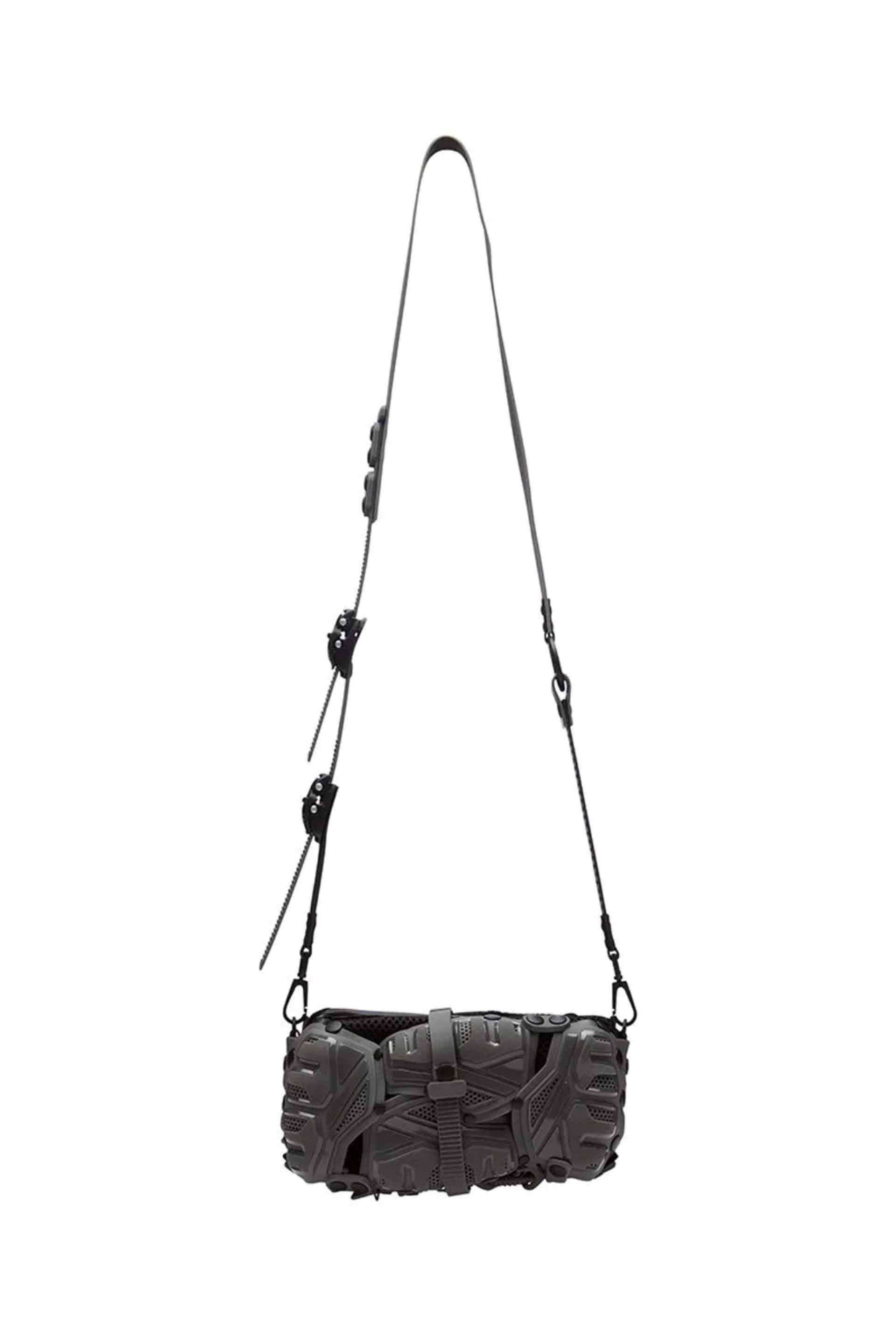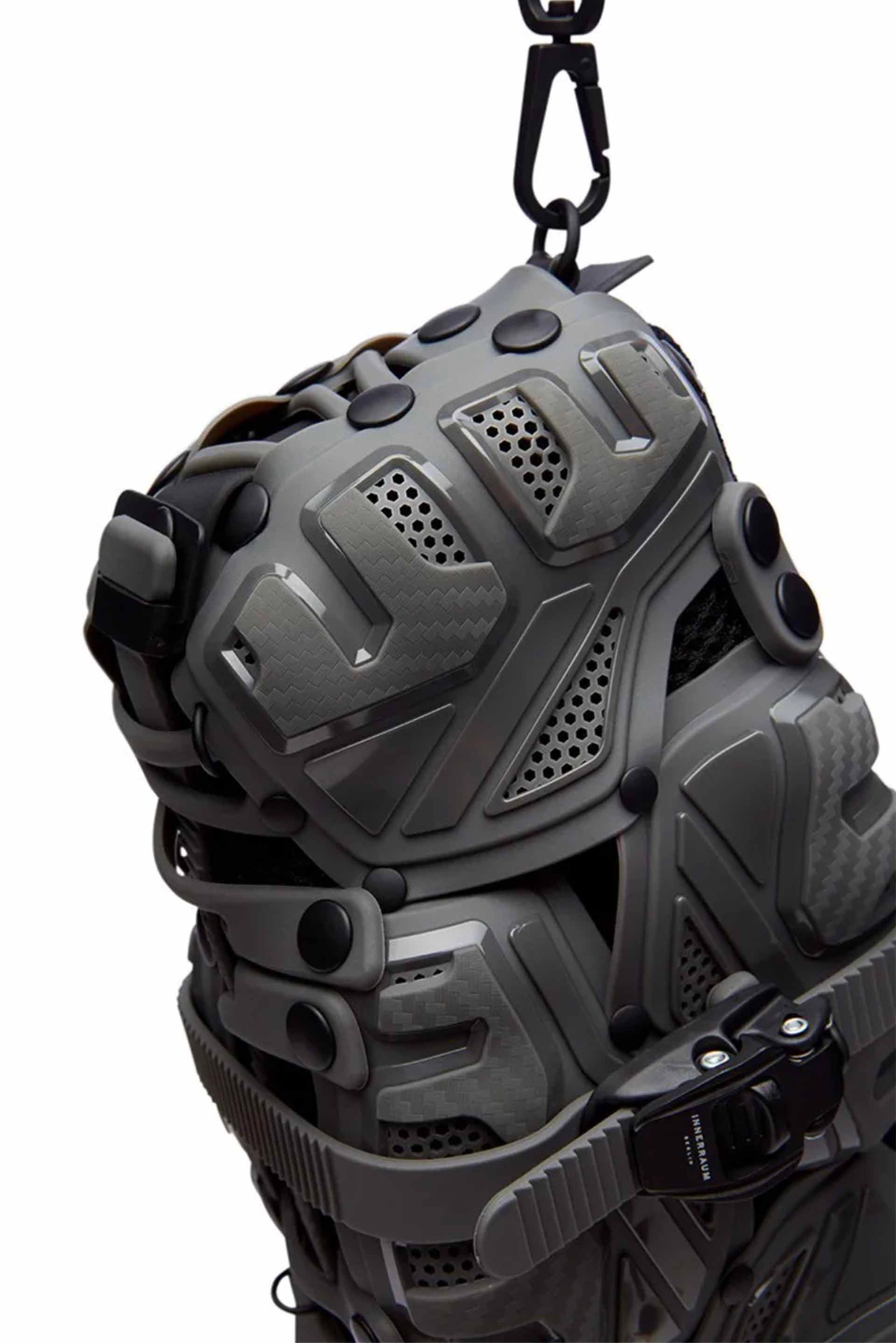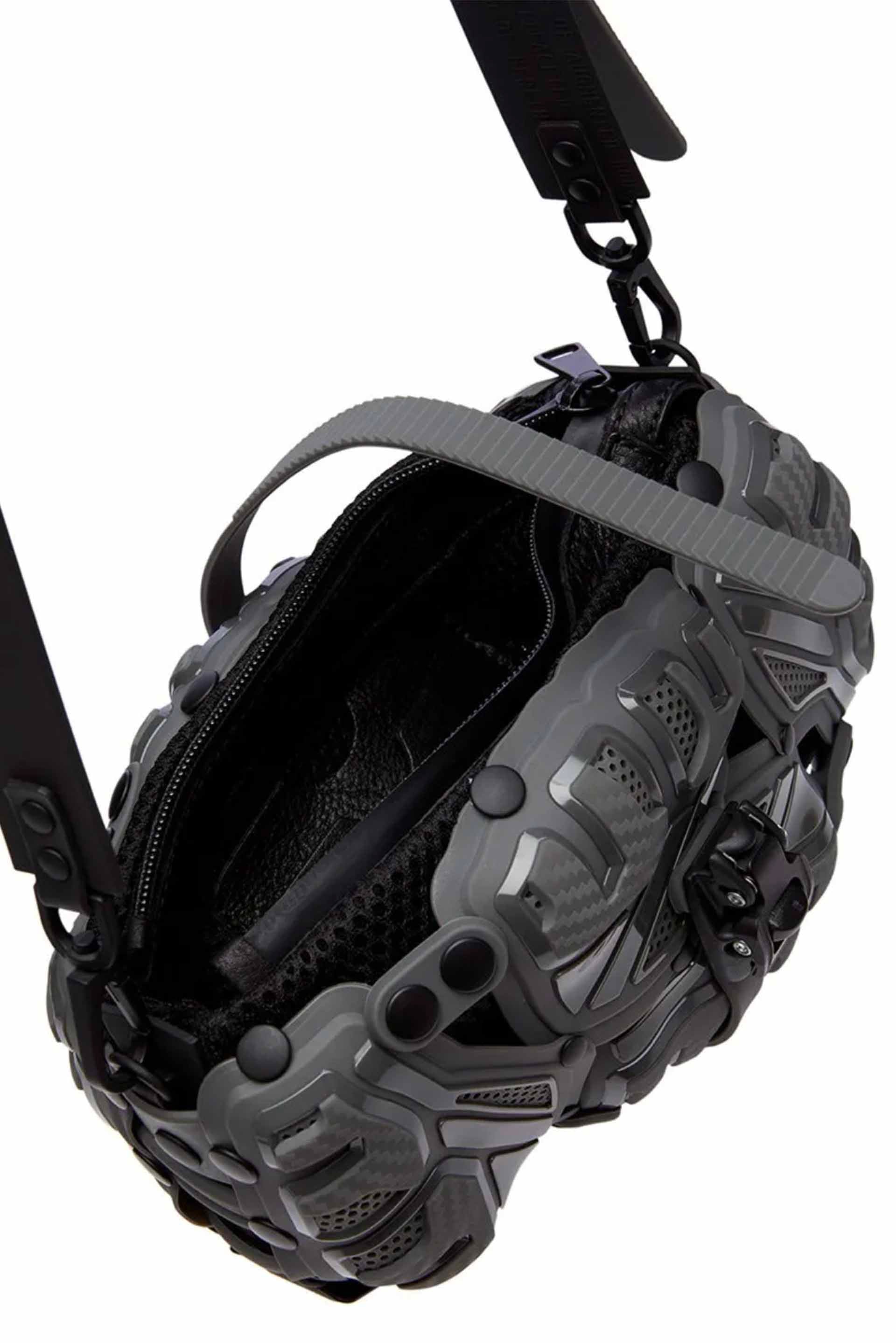 Innerraum is a transformative design philosophy that translates language into polyphonic objects, redefining luxury as an ecstatic conflict with the subconscious. It emphasizes the body as both extension and metaphor, where objects like bags become shells for personal belongings and experiences. Through the integration of disparate parts from different imaginaries and histories, Innerraum creates unique, evolving objects that embody transformation and a new aesthetic, reflecting the fluidity and complexity of the self as seen with the Object I67 Crossbody Bag Concrete Black Matt.