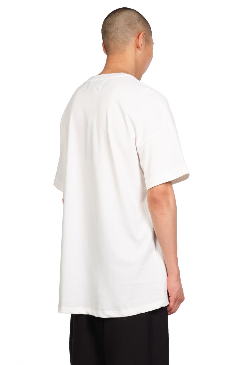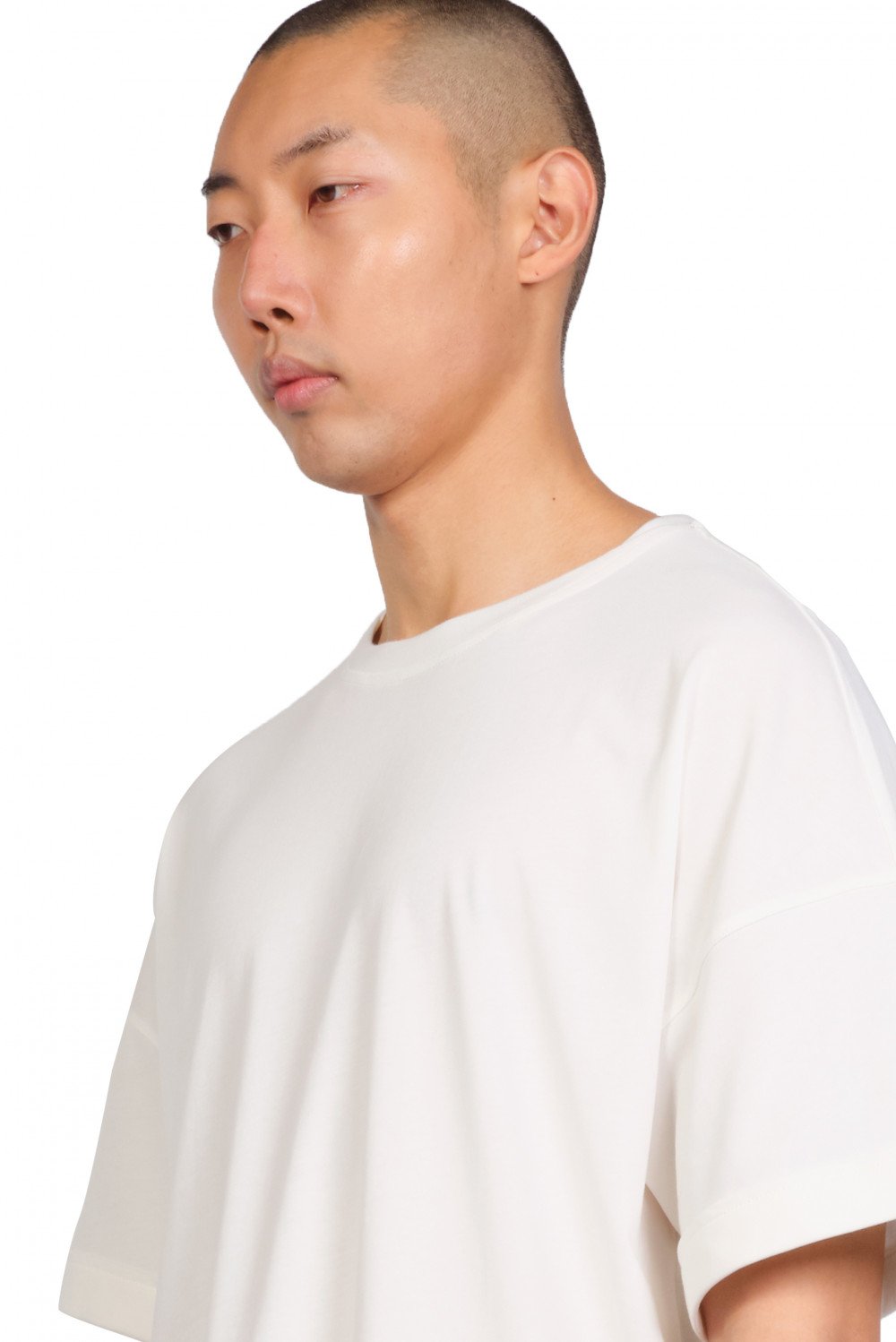 Thought-provoking silhouettes with nuances of monochromatism and functional essences being woven through whilst maintaining a strong tie to traditional and urban origins, seen in pieces like the Joe Chia Off White Rolled-Up Sleeves T-shirt