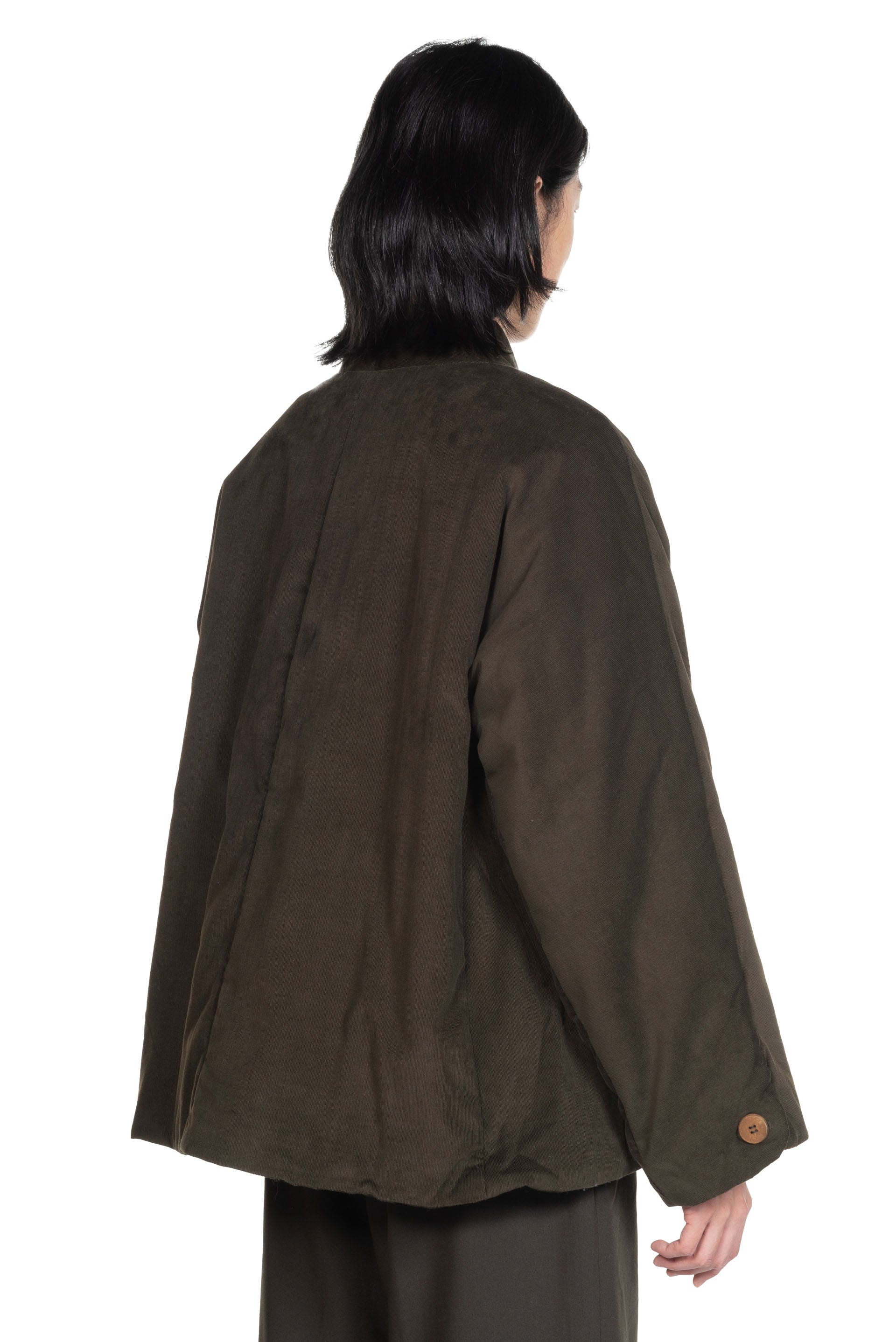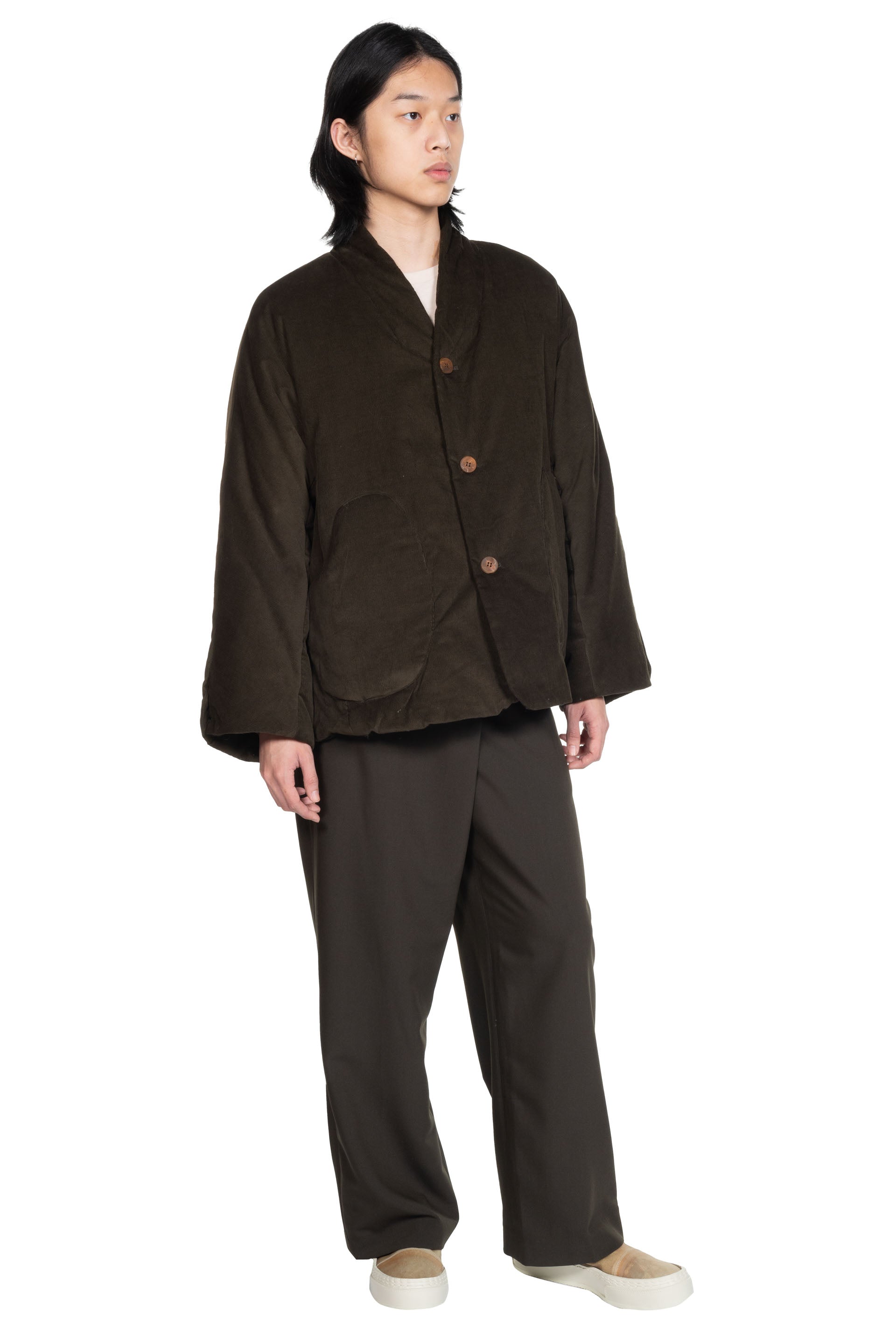 Kar Studio is an independent interior design studio, furniture and clothing brand exploring the cause and effect of aesthetics, integrating tradition and modernity. Kar is presenting modern design with Oriental philosophy. Inspired by art, literature, memories and emotions Kar focuses on design sensibility aiming to convey emotion that will resonate with people as seen with the Olive Green Padded Corduroy Jacket.