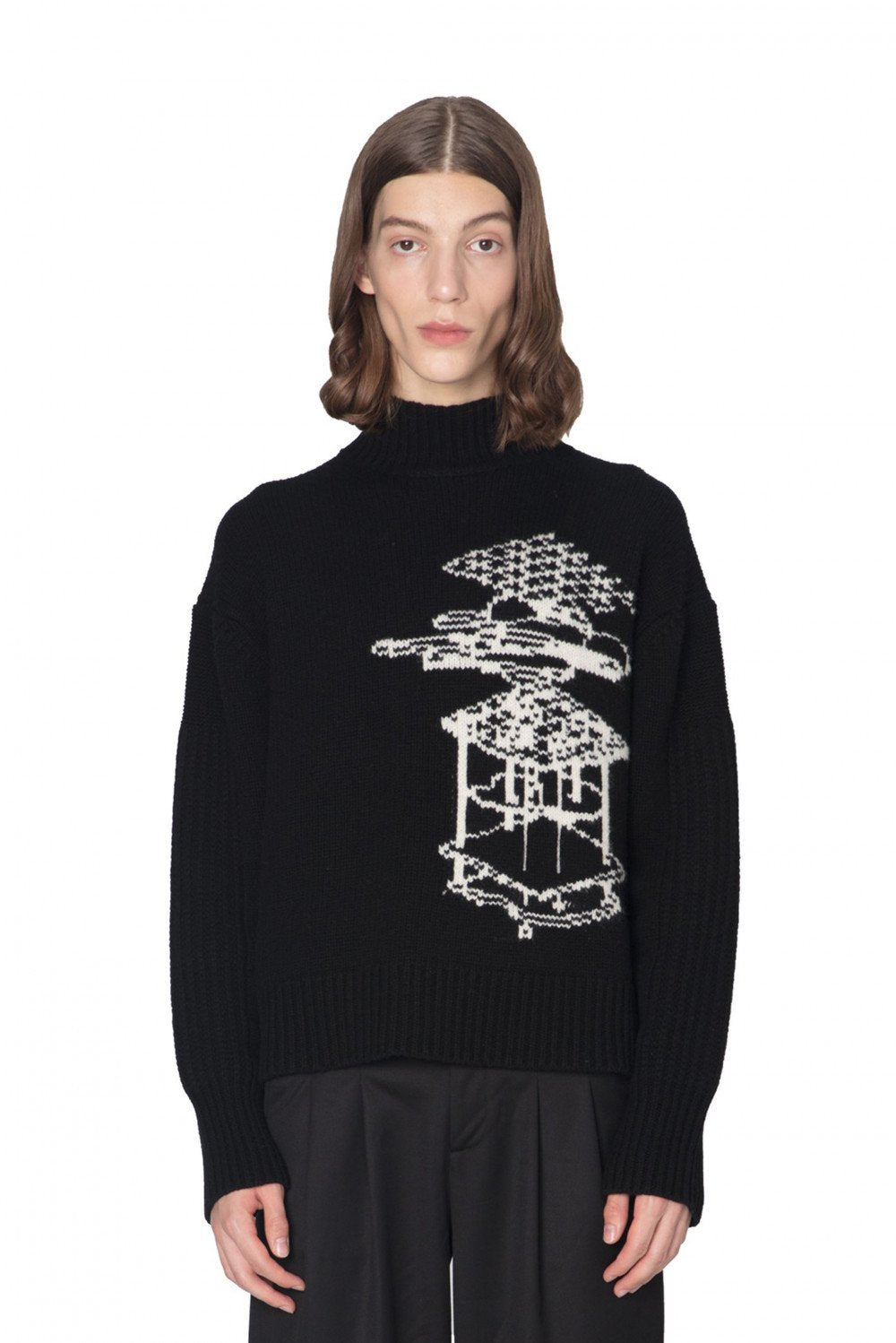 C2H4 concept ranges from hypothetical space scientists producing sport and streetwear-inspired designs creating an intergalactic underground culture. Using her studio as a laboratory, Chen’s meticulously elevates wardrobe cornerstones as seen with the Opra Panelled Turtleneck Sweater.