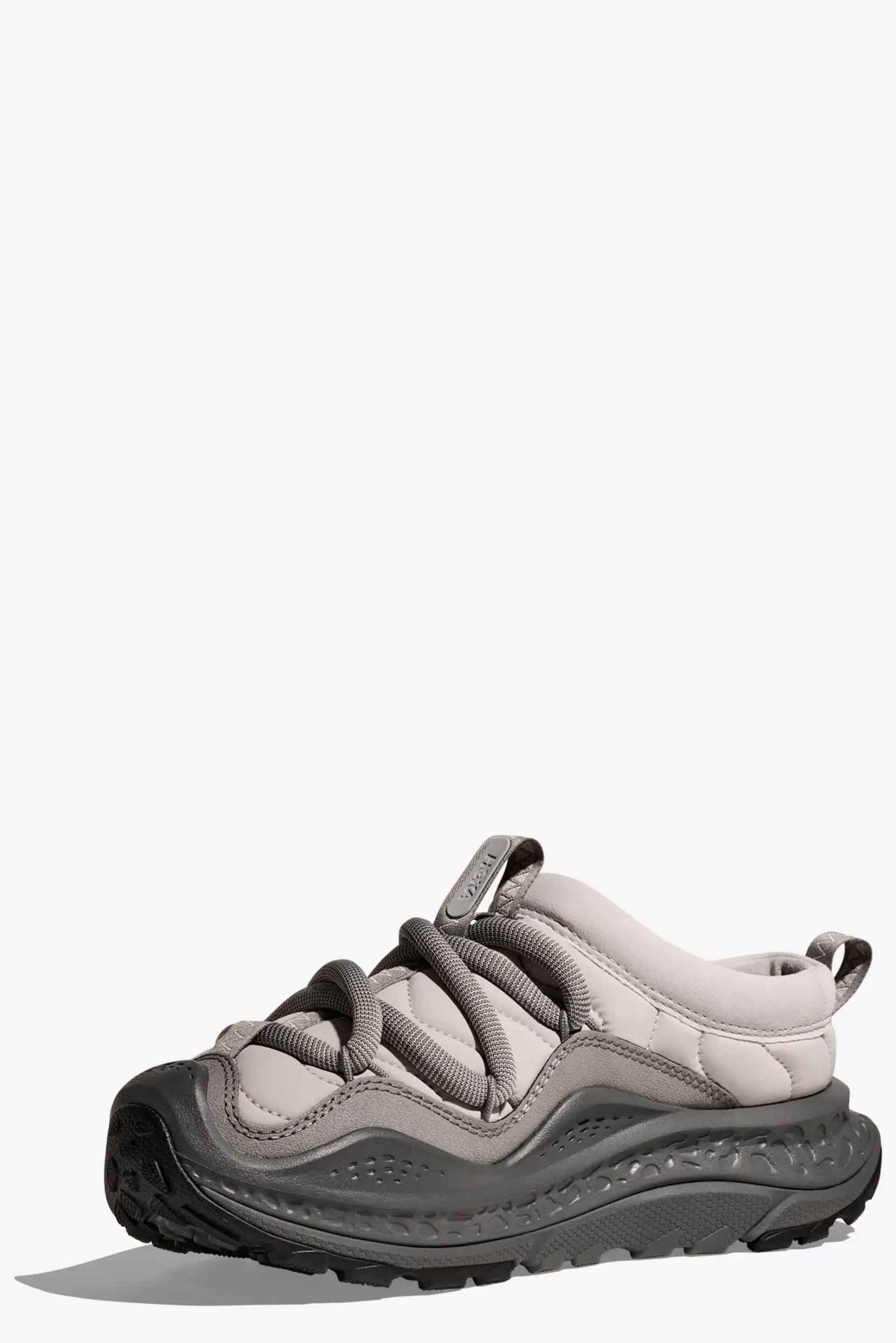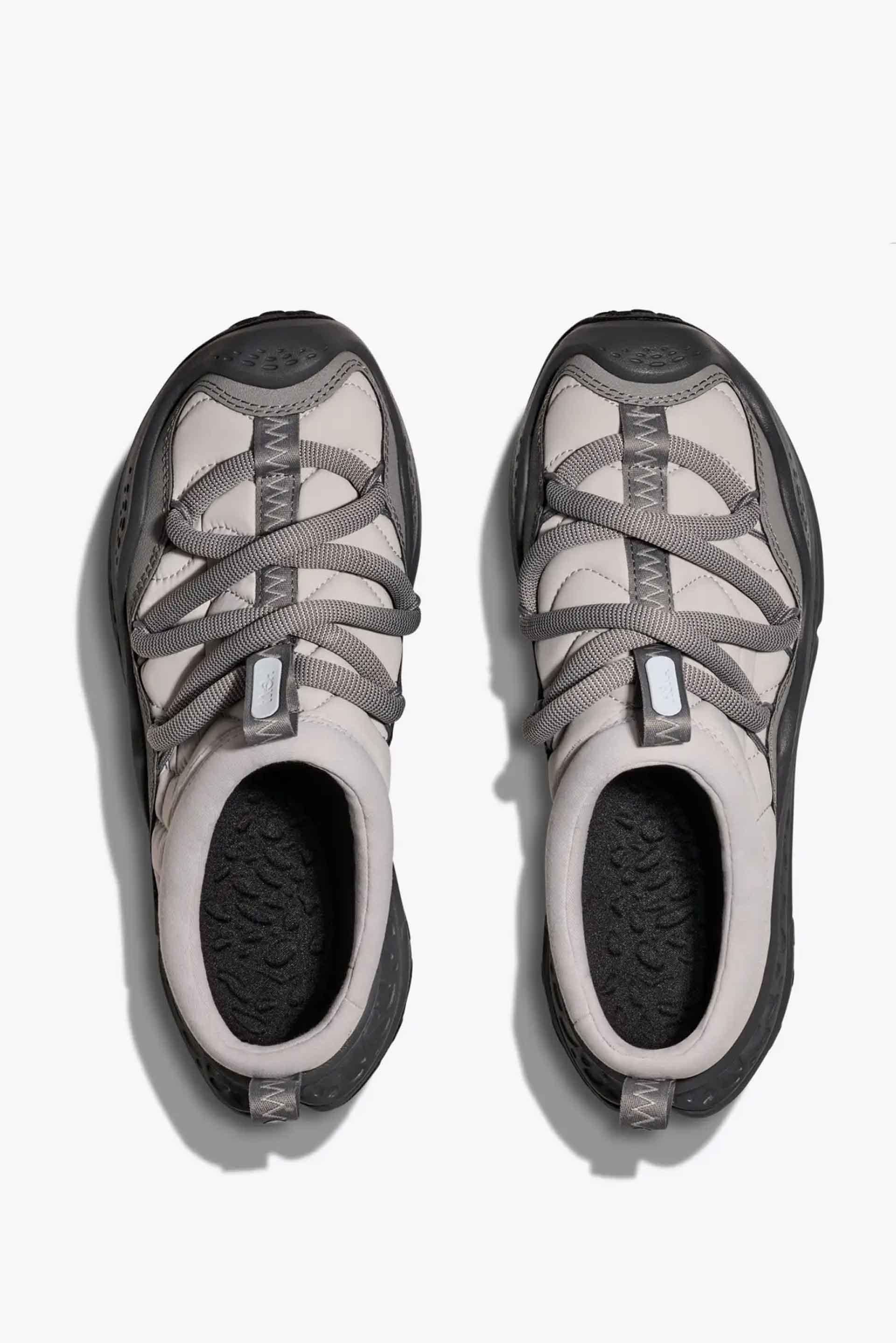 HOKA shoes retain features like a low weight-to-cushion ratio and midsole and outsole geometry designed to promote inherent stability and an efficient stride as seen with the Ora Primo Stardust / Satellite Grey. Hoka one one cutting-edge Ora Primo design cues to deliver the boldest expression of our Ora franchise to-date. A futuristic silhouette that delivers the same post-run relief as its predecessor, the new Ora Primo has been elevated with a soft knit collar, elastic lace system and insulated puff upper for that seasonless, slip-on comfort you crave.