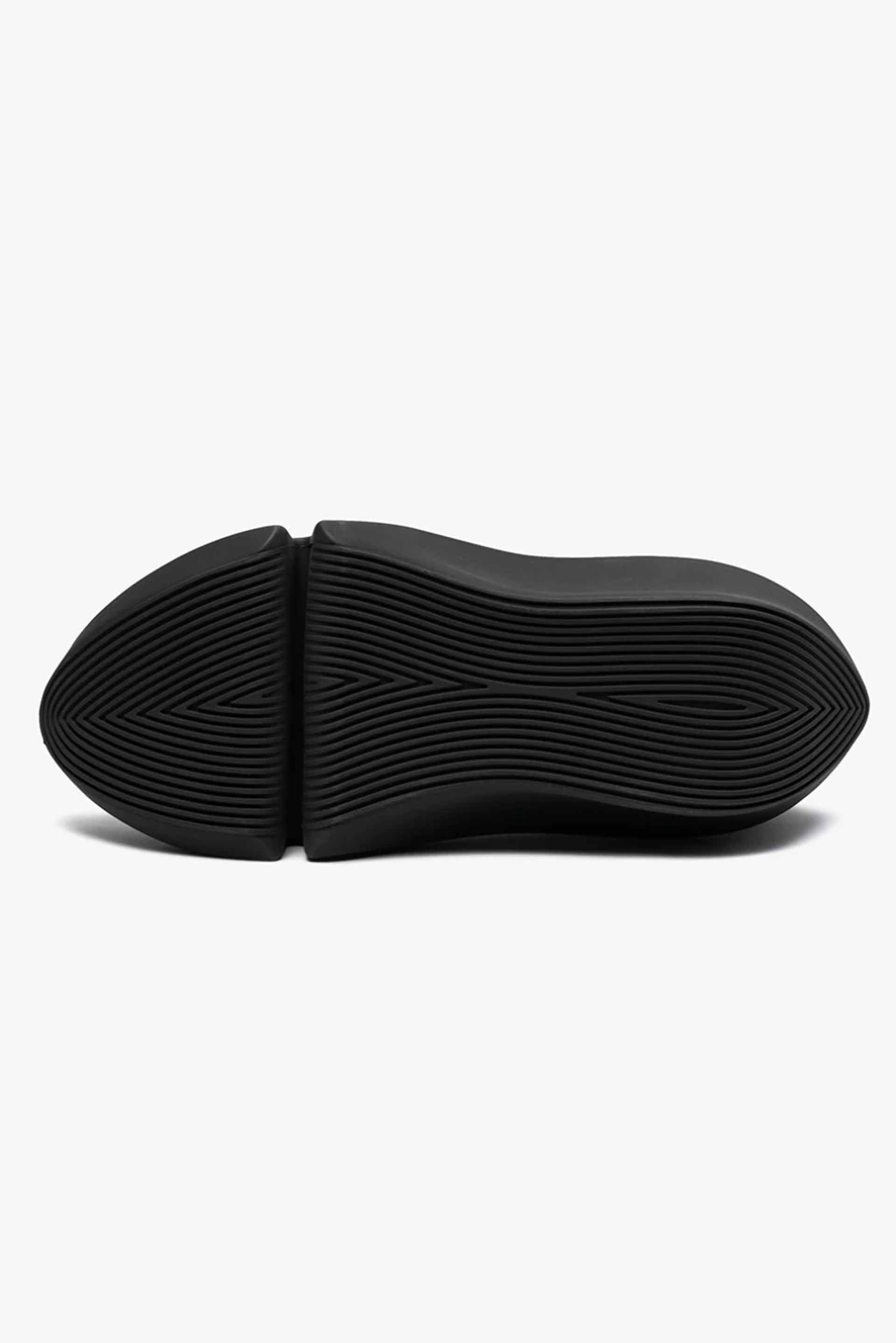 The upper is knit in the image of an orca as well. It follows the curves of the outsole and is extremely long at the heel. The knitted fabric is coarse to give a cool impression.