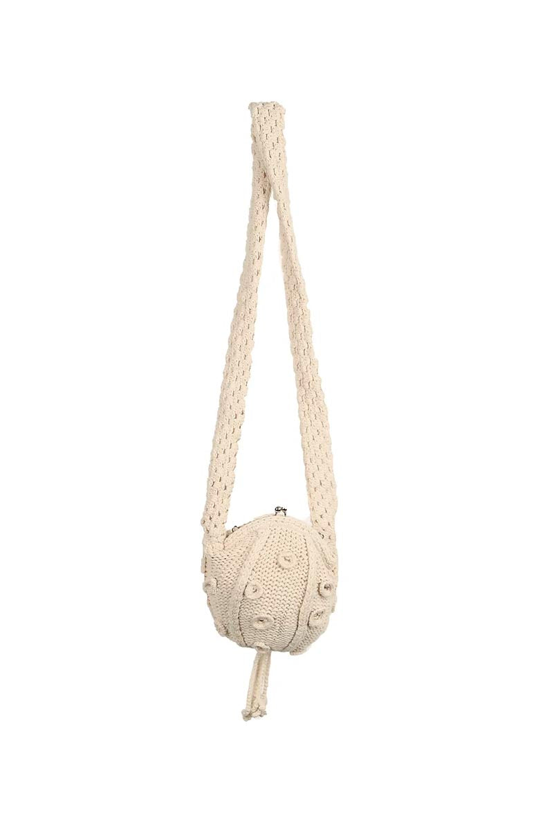 Crossbody knitted bag with metal closure. Inside pattern design detailing. Metal clip closure. Knotted hem decoration.