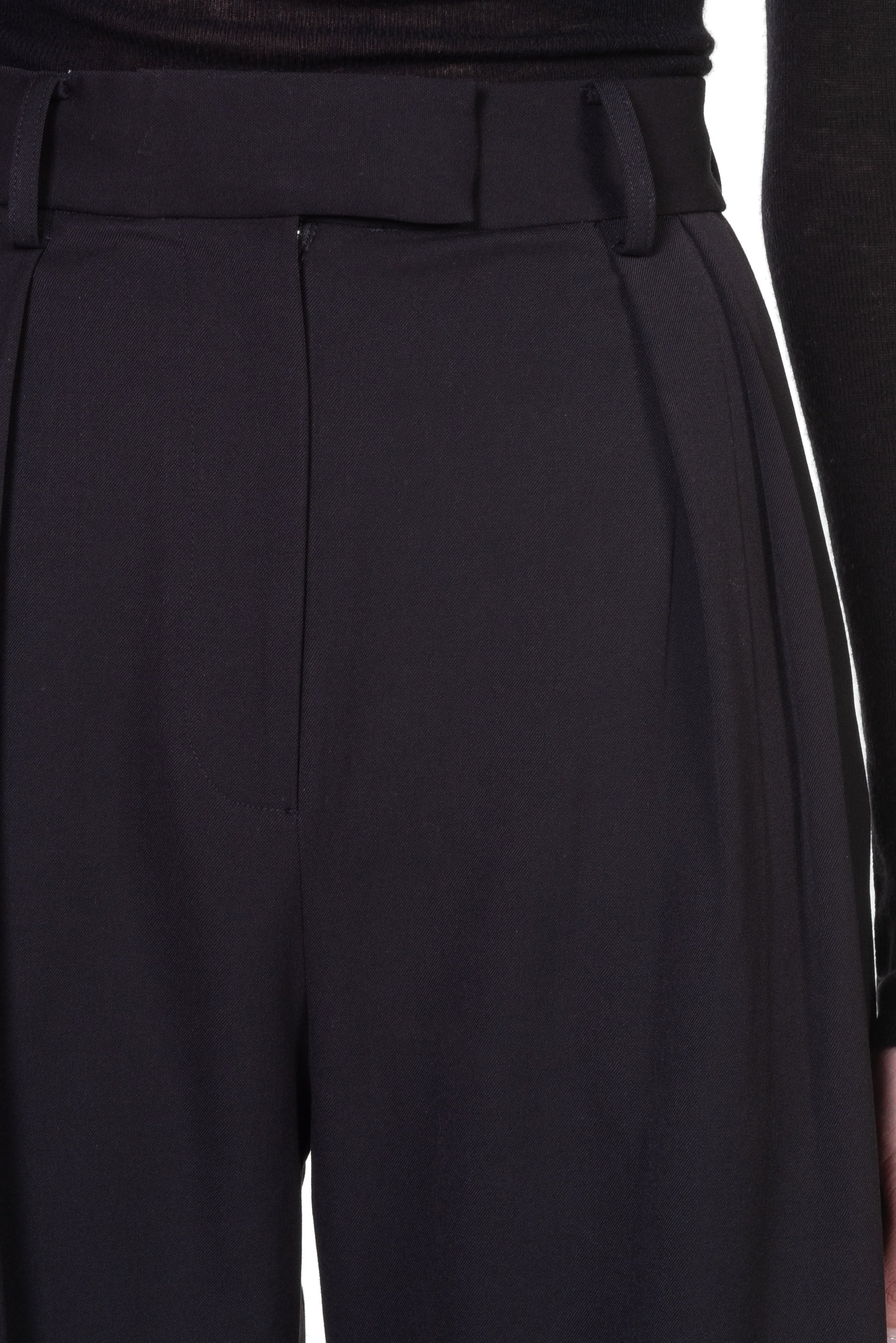 Black oversized pants. Loose fit. Four pocket classic pleated trouser. Button and hook fastener.