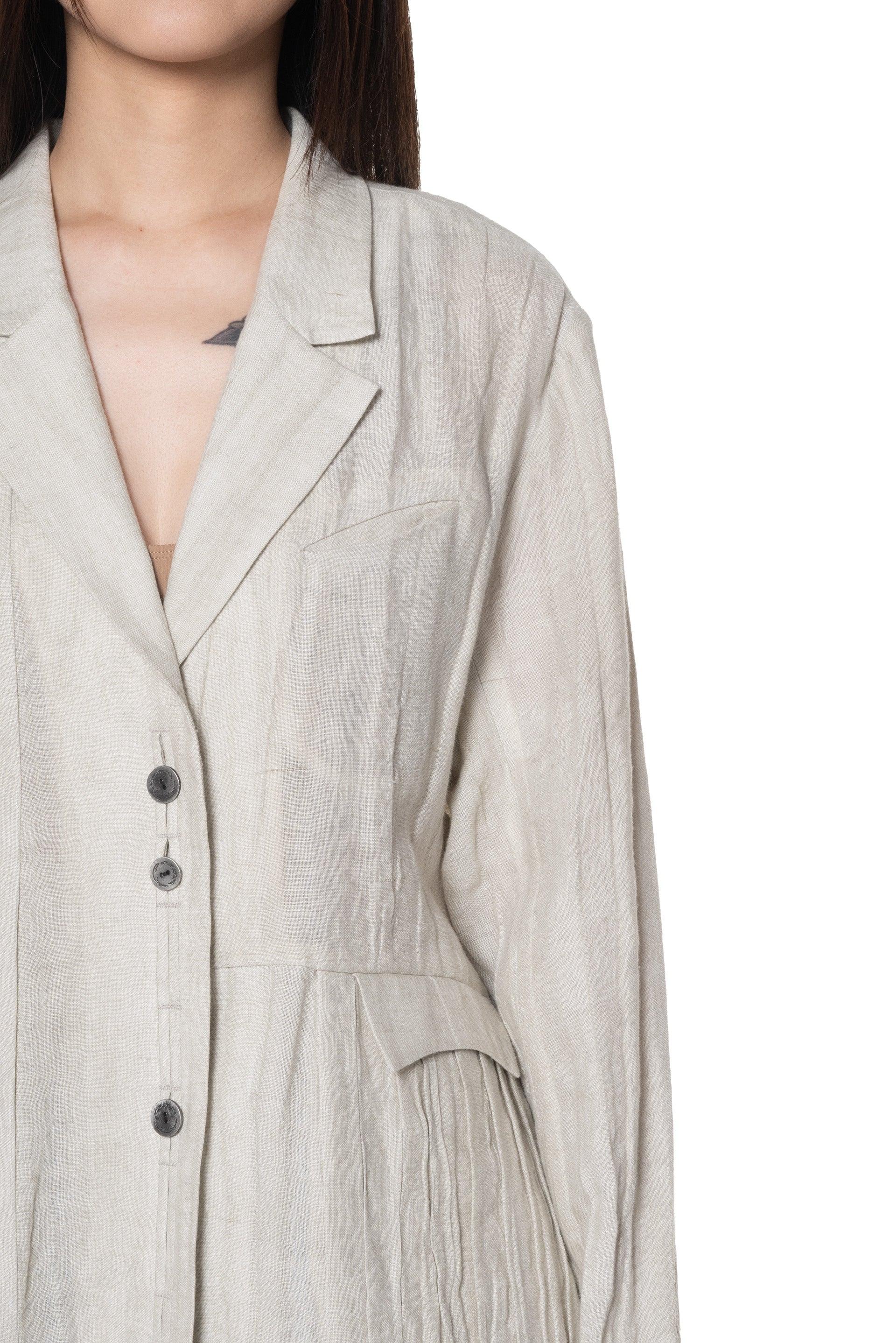 Oversized Pleated Blazer Natural Dyed Beige