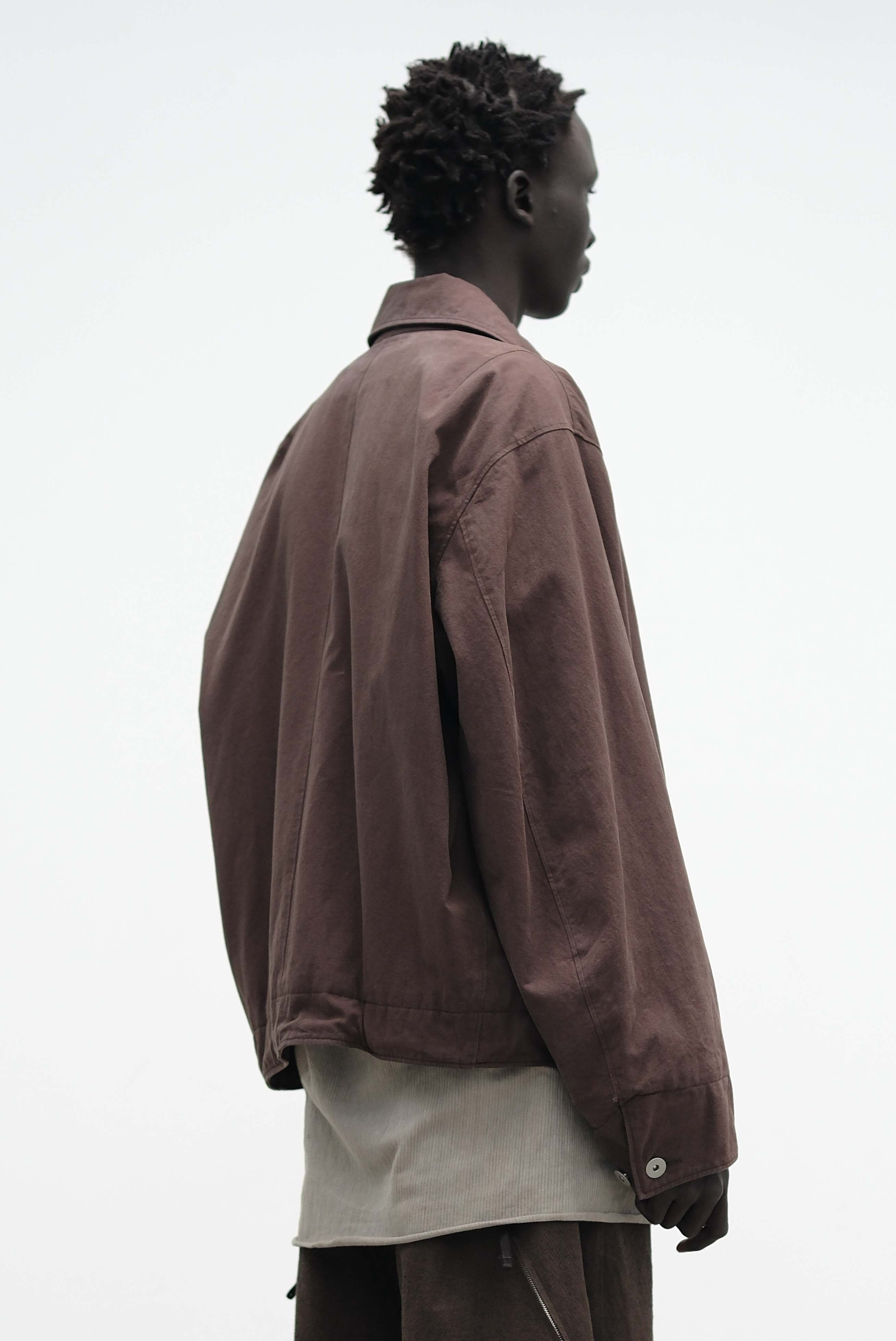 Attempt Knight Jacket Dark Brown. Cotton Coach jacket. Padded. Long sleeves. Regular collar. Two side pocket. Elasticated details at bottom. Double zip closure with long puller detail. Drawstring details at bottom. Soft textural cotton fabric.
