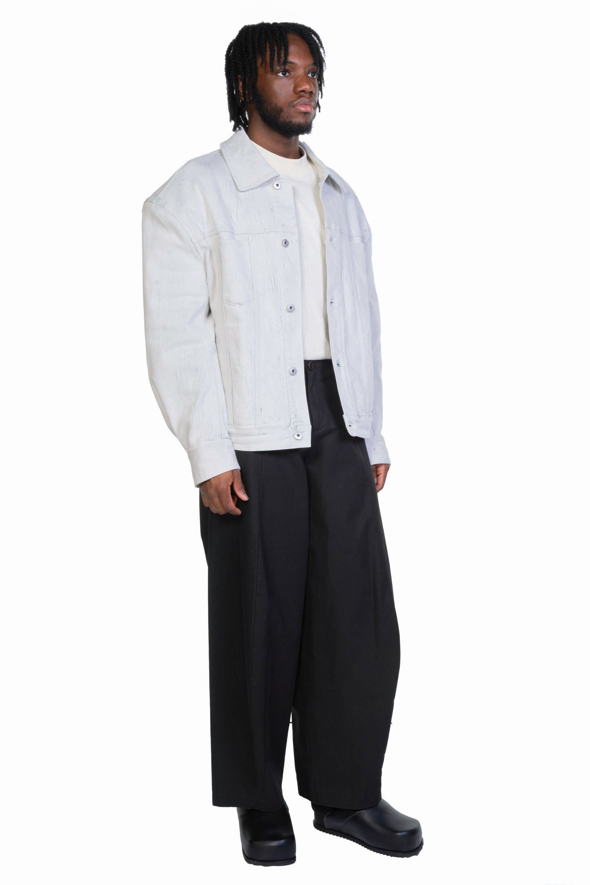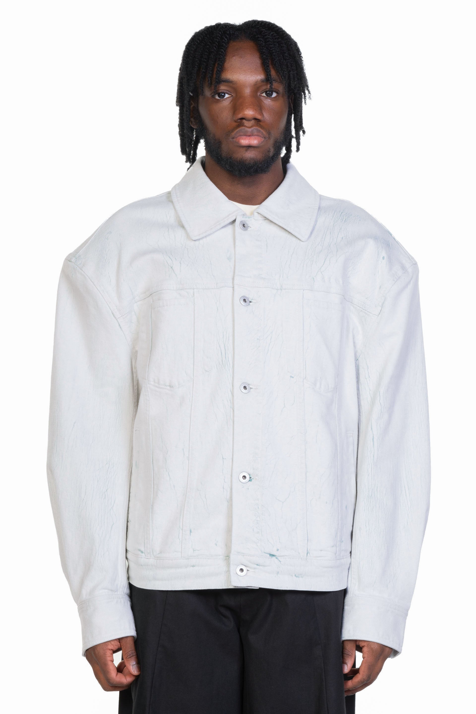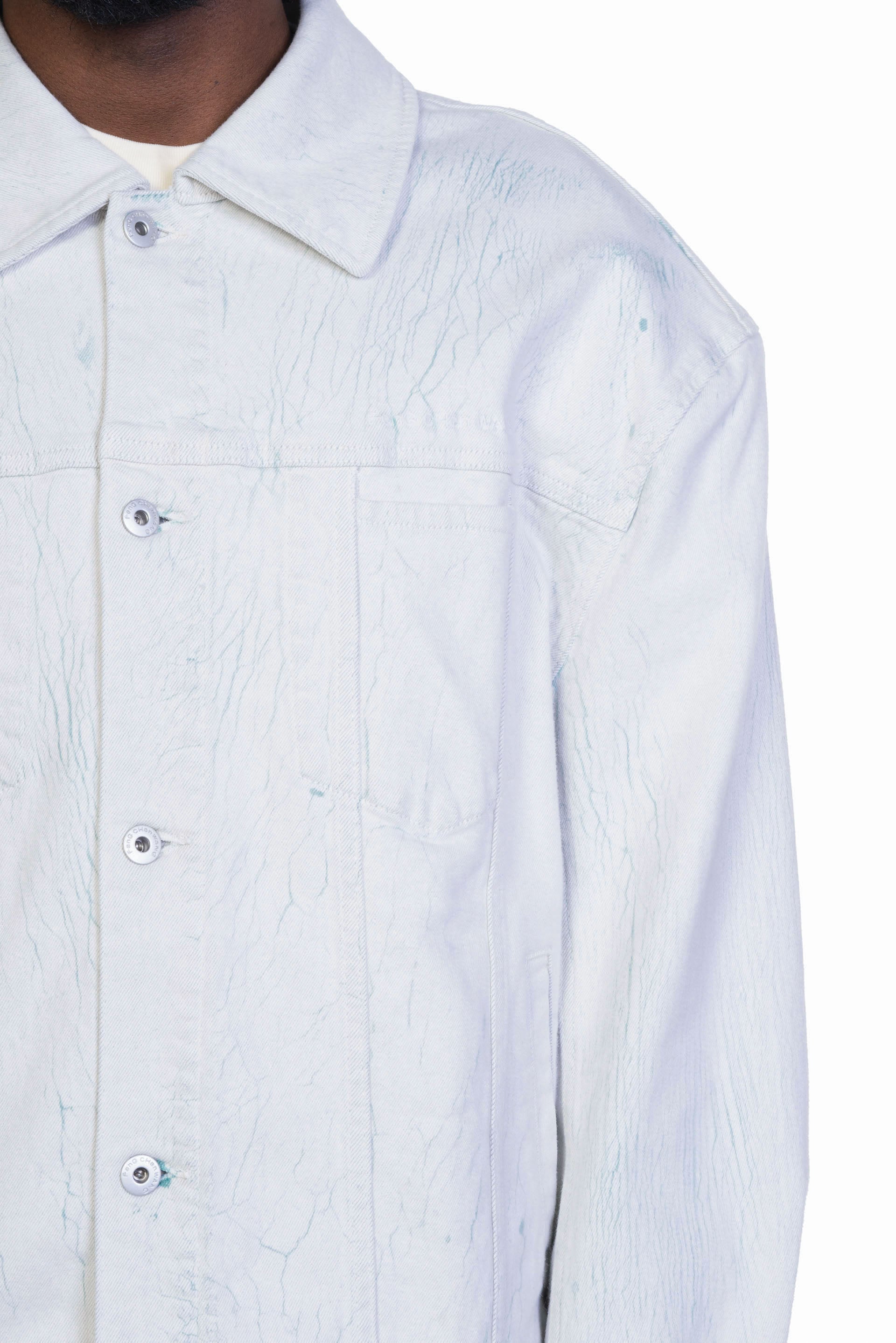 Feng Chen Wang aesthetic is authentic, emotional and multidimensional, drawing on personal life experiences and her Chinese heritage to create products that are functional but at the same time conceptual as seen with the Painted Oversized Denim Jacket Teal.