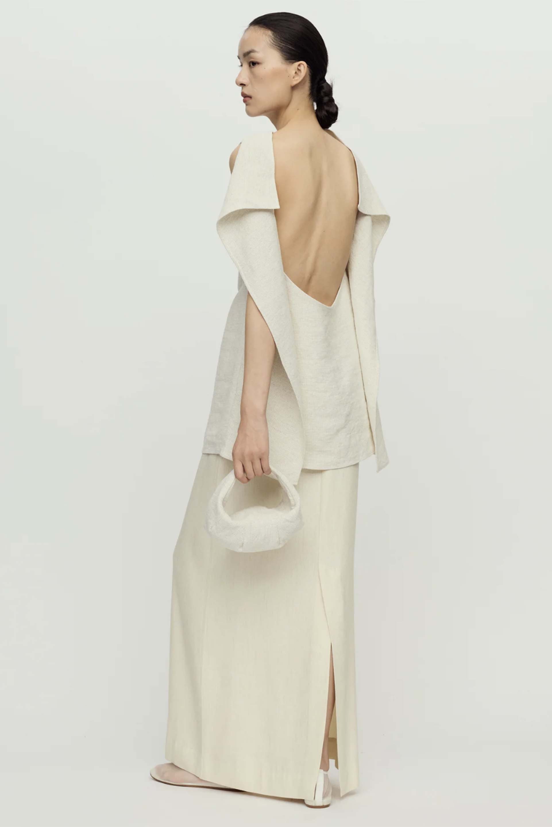 Founded by Ruohan Nie in Shanghai, RUOHAN is a contemporary womenswear label defined by refined minimalism and architectural elegance. Each collection explores the balance between structure and softness, blending Eastern serenity with Western sophistication. Crafted from natural fabrics and tailored with quiet precision, RUOHAN pieces embody timeless design and effortless wearability. The brand’s understated aesthetic celebrates modern femininity through purity of form, texture, and proportion as seen with the Paper Mini Moon Bag