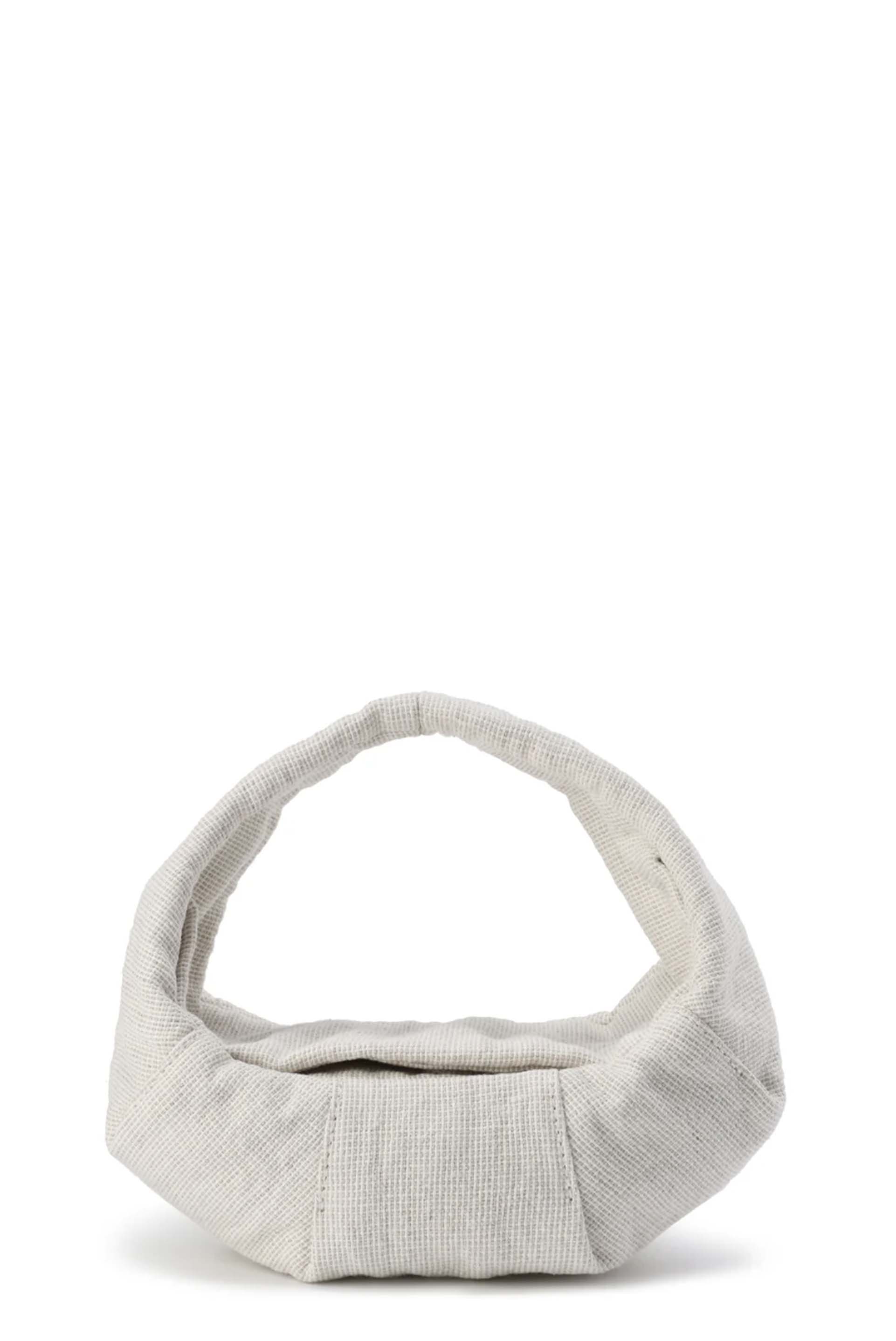 This structured paper mini moon bag features a distinctive papery texture with sculptural definition, offering a crisp silhouette and refined shape. A classic moon bag design with three-dimensional form, it accommodates a variety of small essentials while delivering both practicality and sophistication.