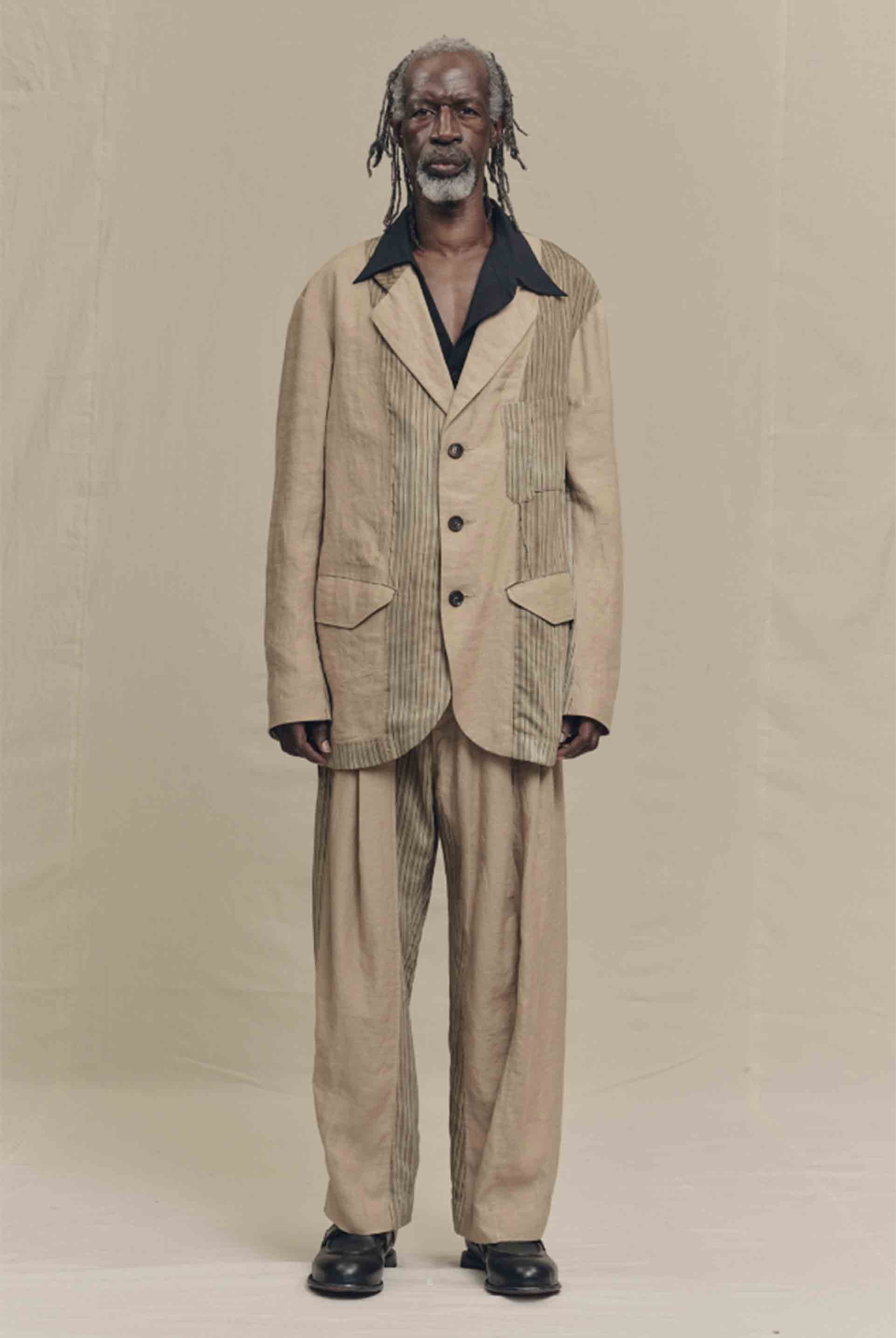 With a color palette of browns and greens, Ziggy Chen’s designs evoke the textures of aged architecture and the natural world. The garments feel as natural as they look, combining softness with structure. Seamlessly blending Eastern and Western influences, Ziggy Chen captures the essence of timeless beauty, from fluid silhouettes to intricate patterns. Ziggy Chen continues to redefine the intersection of tradition and modernity in fashion as seen with the Patchwork Trousers Burlywood.