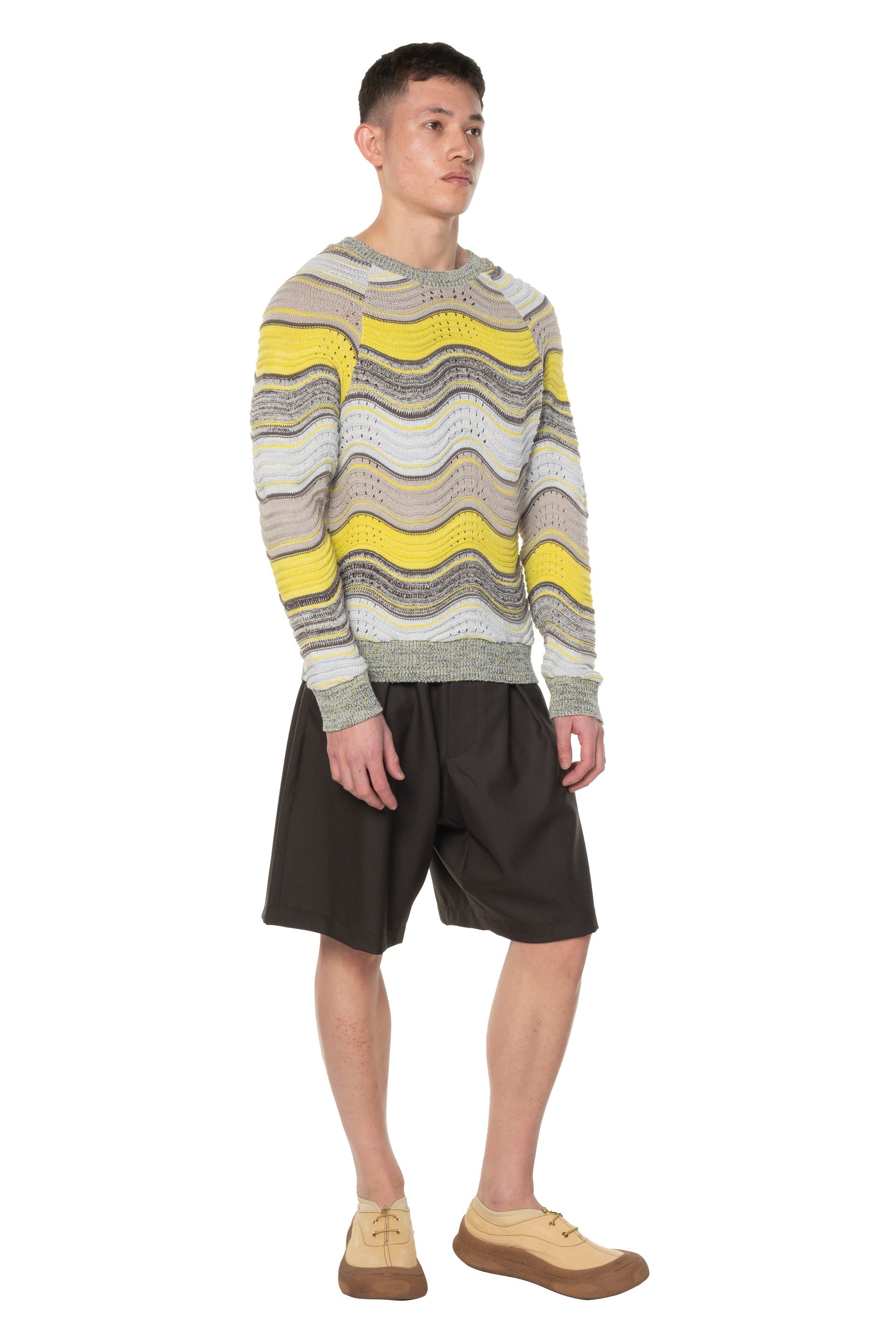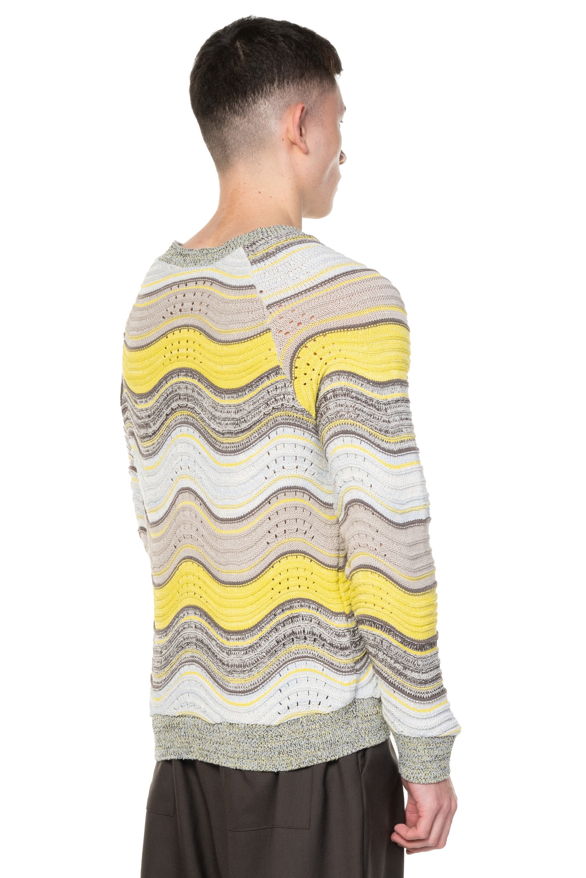 Vitelli has been praised for its radical approach on sustainability by producing only with 100% reclaimed yarn from Italian knitwear industry leftover as seen with the Peacock Knit Sweater.