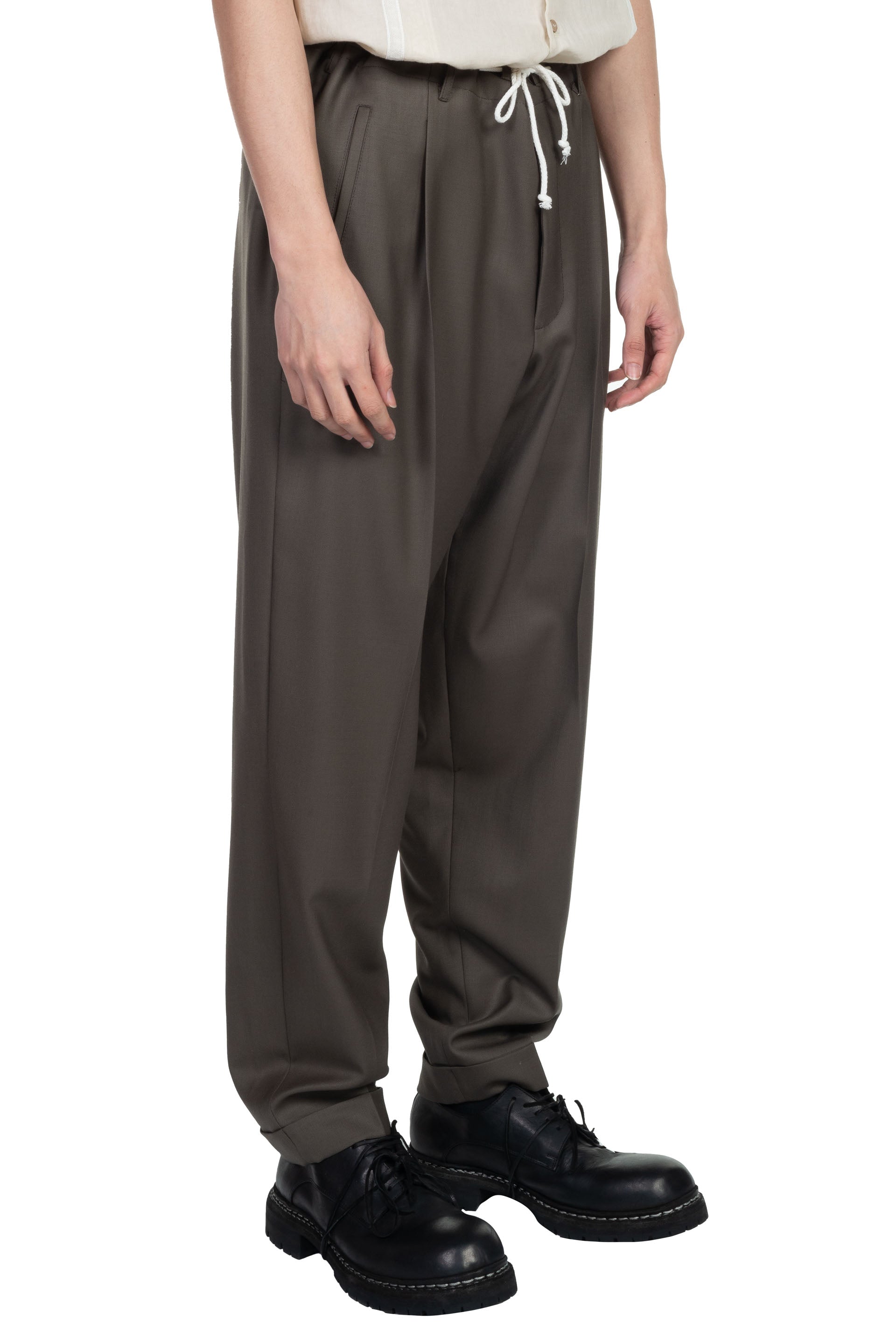 People's pants made in signature Magliano's wool. Adjustable drawstring. Frontal pleats. Two side pockets. Two back Pockets Pearl details.