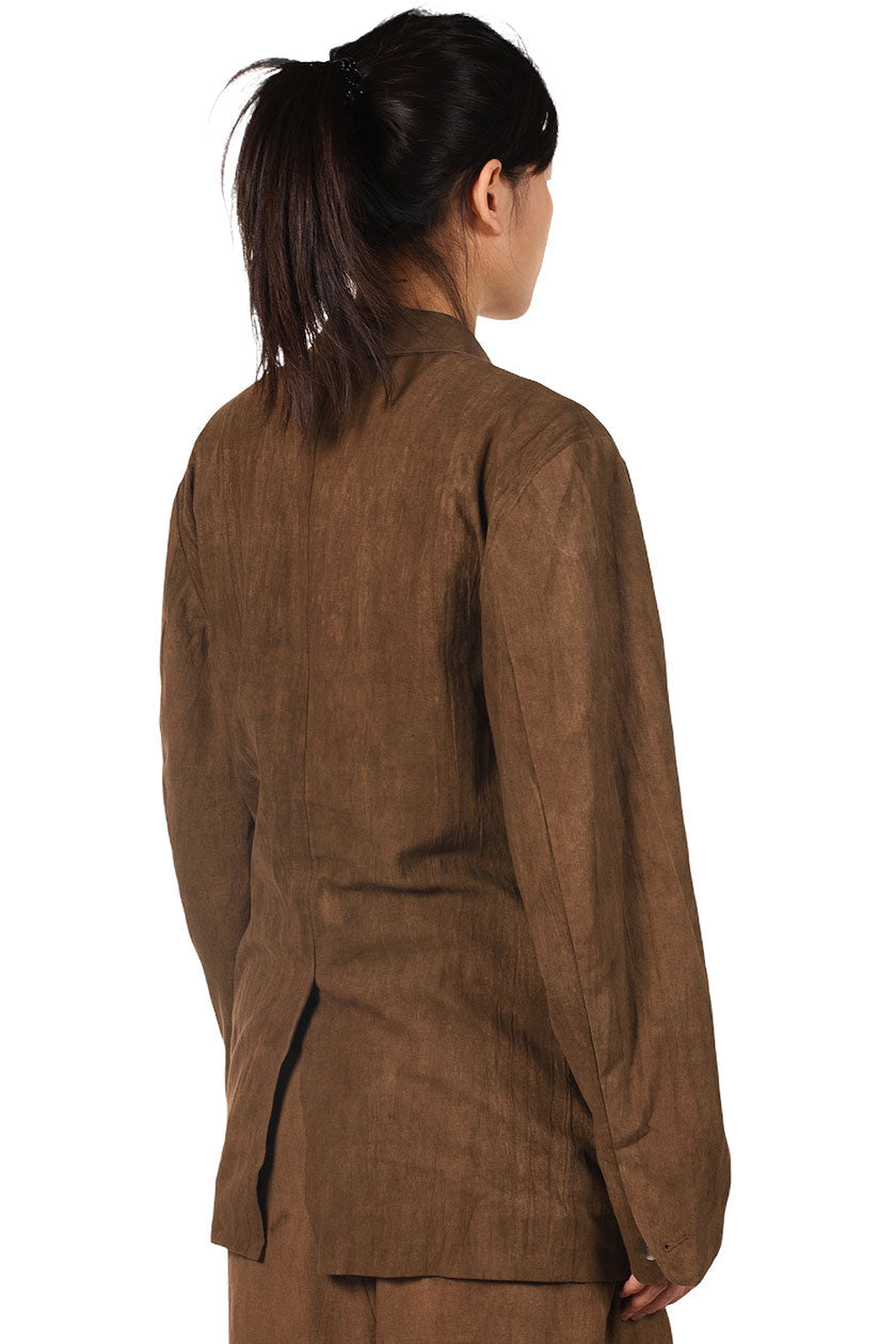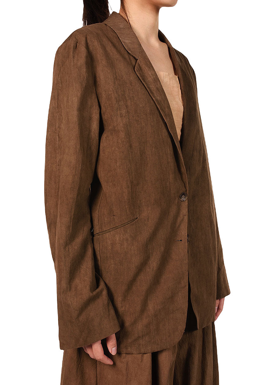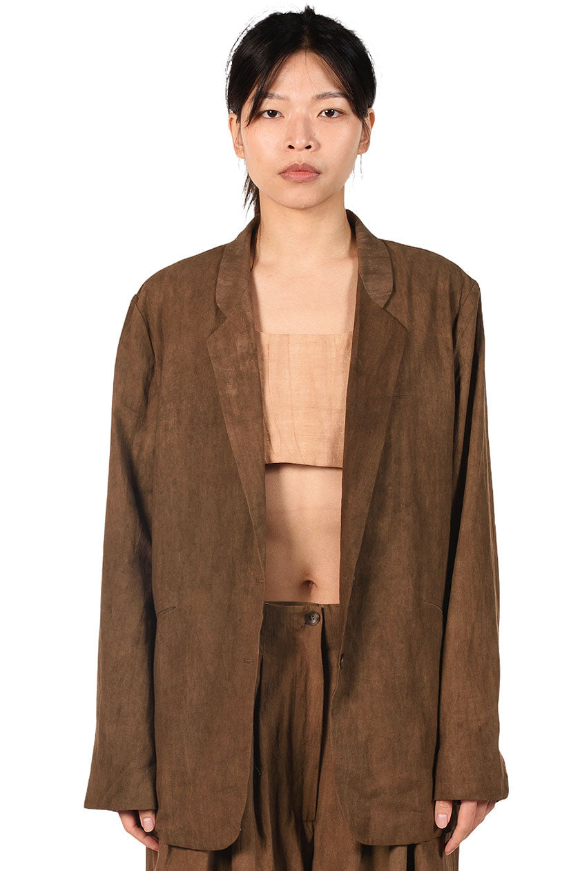 Two buttons blazer. Persimmon Dyed Cotton Blazer. Two pockets at front. One pocket at chest.