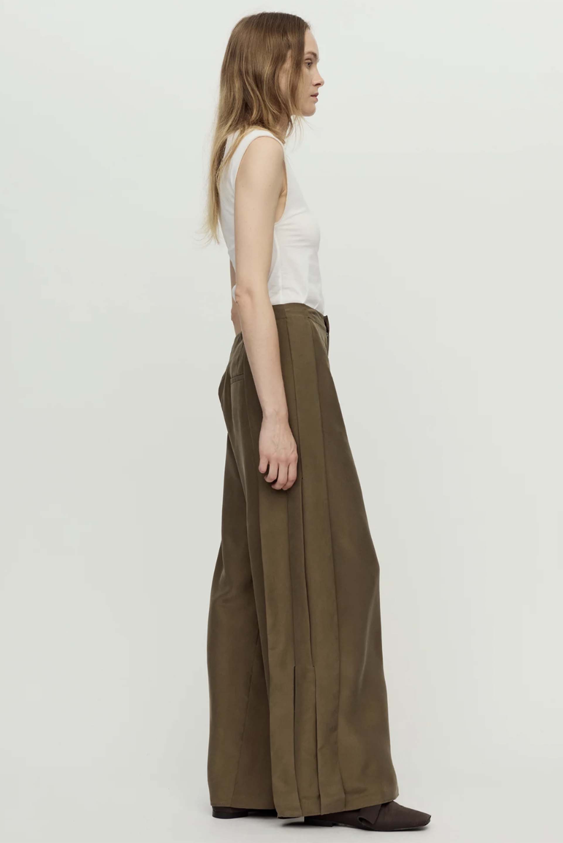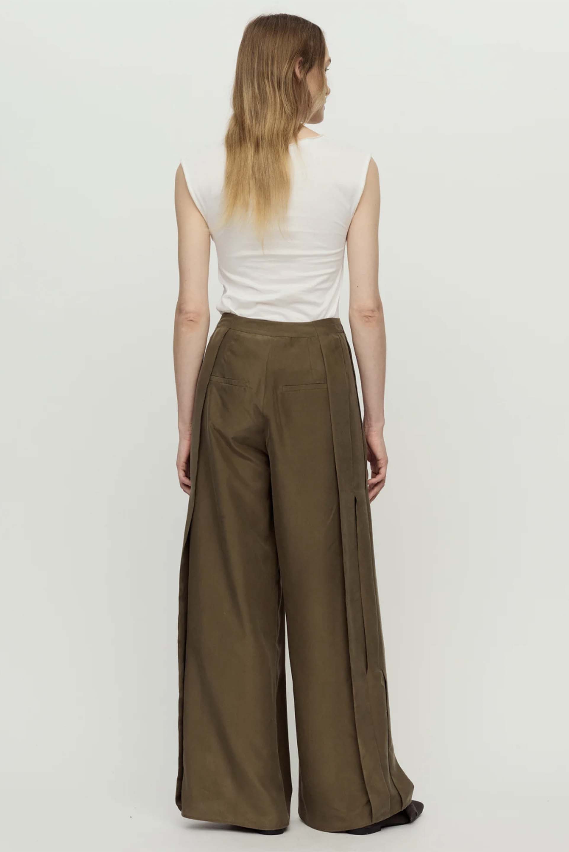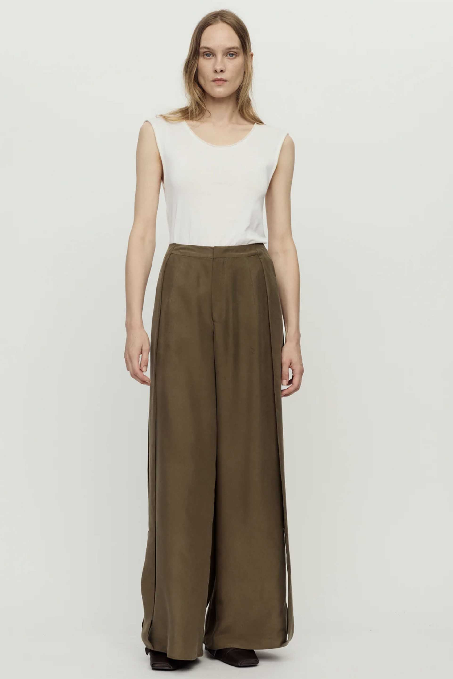 Founded by Ruohan Nie in Shanghai, RUOHAN is a contemporary womenswear label defined by refined minimalism and architectural elegance. Each collection explores the balance between structure and softness, blending Eastern serenity with Western sophistication. Crafted from natural fabrics and tailored with quiet precision, RUOHAN pieces embody timeless design and effortless wearability. The brand’s understated aesthetic celebrates modern femininity through purity of form, texture, and proportion as seen with the Pira Trousers Olive