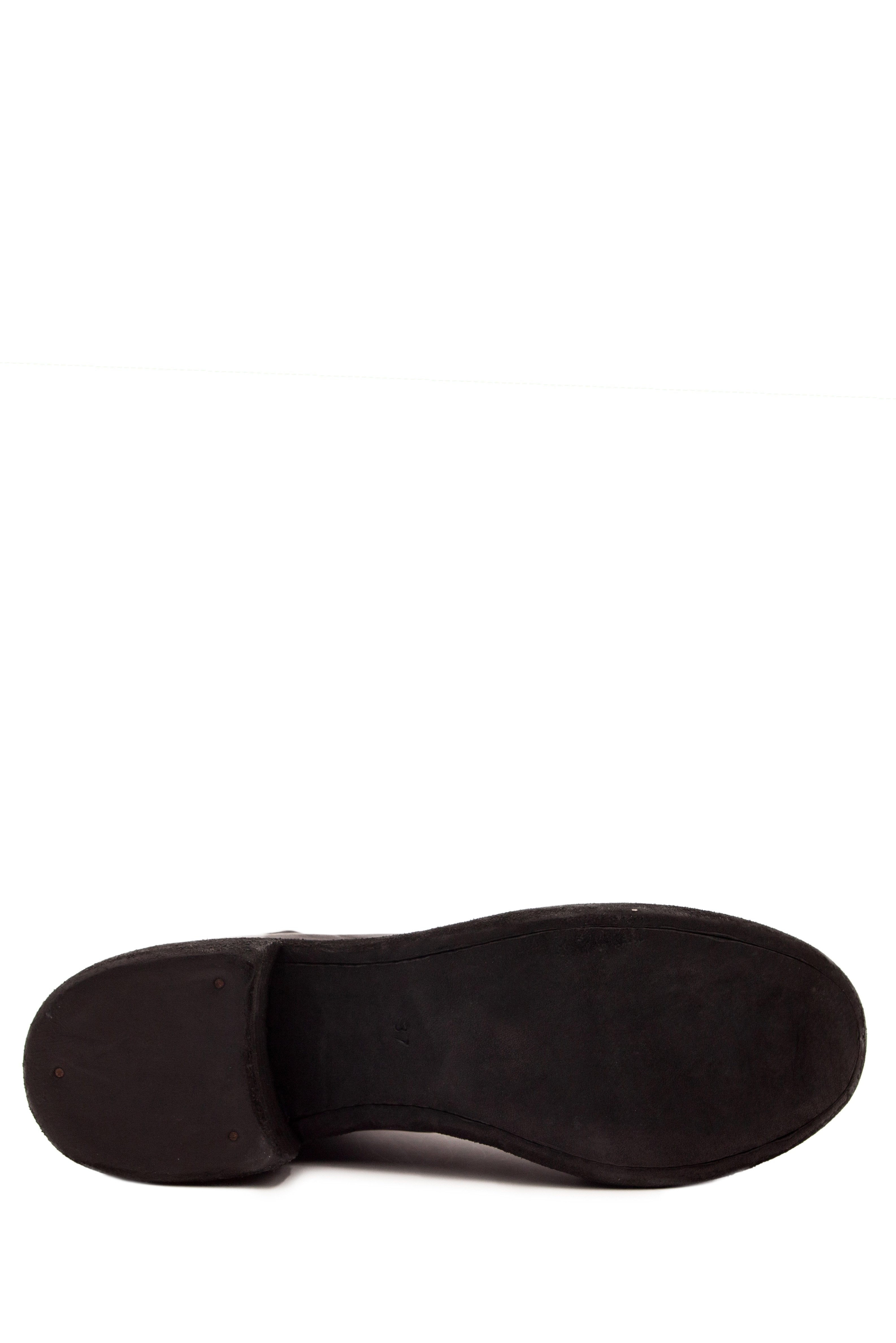 Front zip closure. Tonal stacked leather heel and sole. Antiqued silver-tone hardware. Tonal treaded rubber Vibram outsoles included