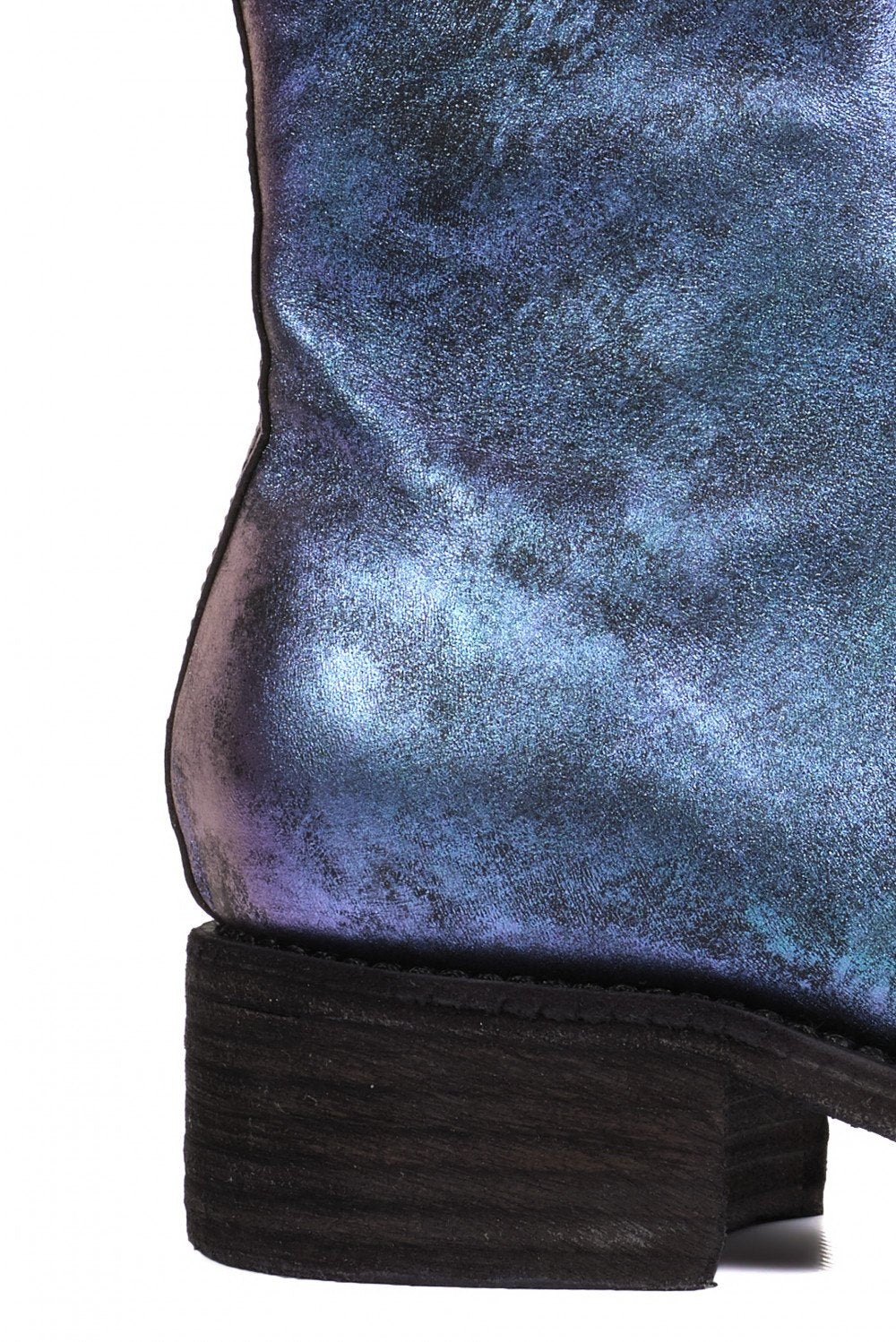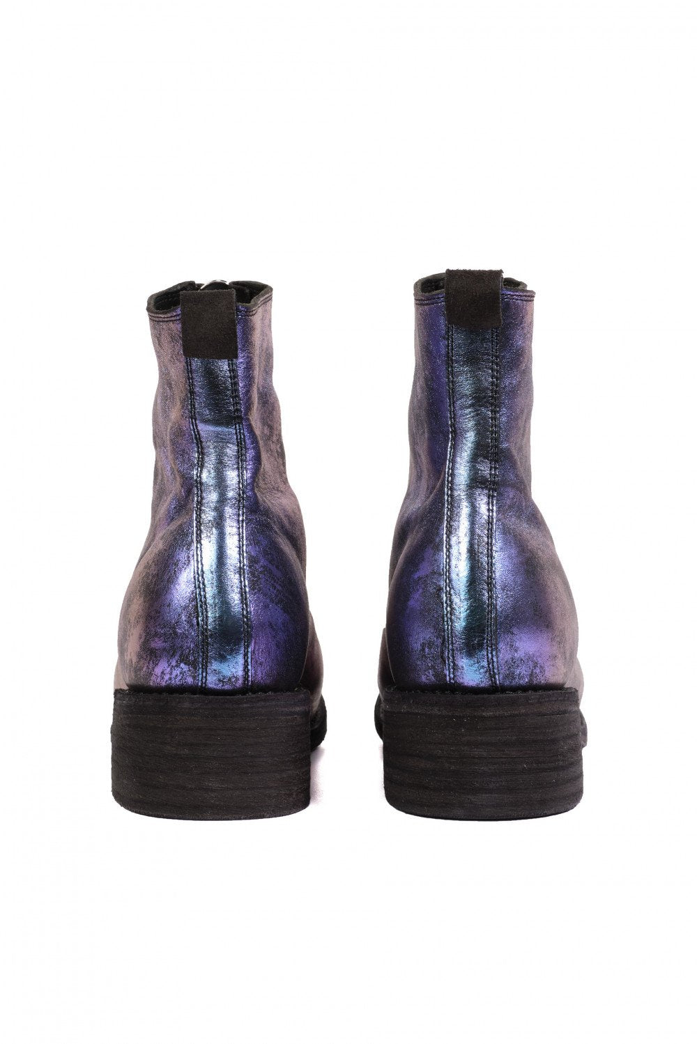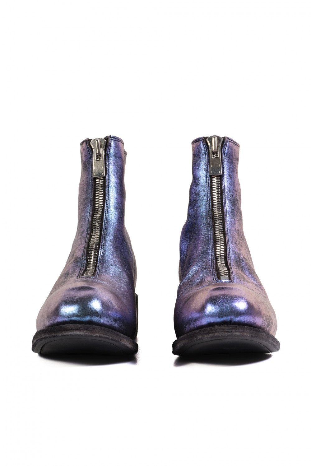 Classic Guidi PL1 in the limited edition laminated Nebula. Ankle boots PL1 model in bright laminated effect in shade of blue and purple. Guidi lined boots. Heel tab. Contrasting sole in black colour. Chunky front zip with brand name on the slider.