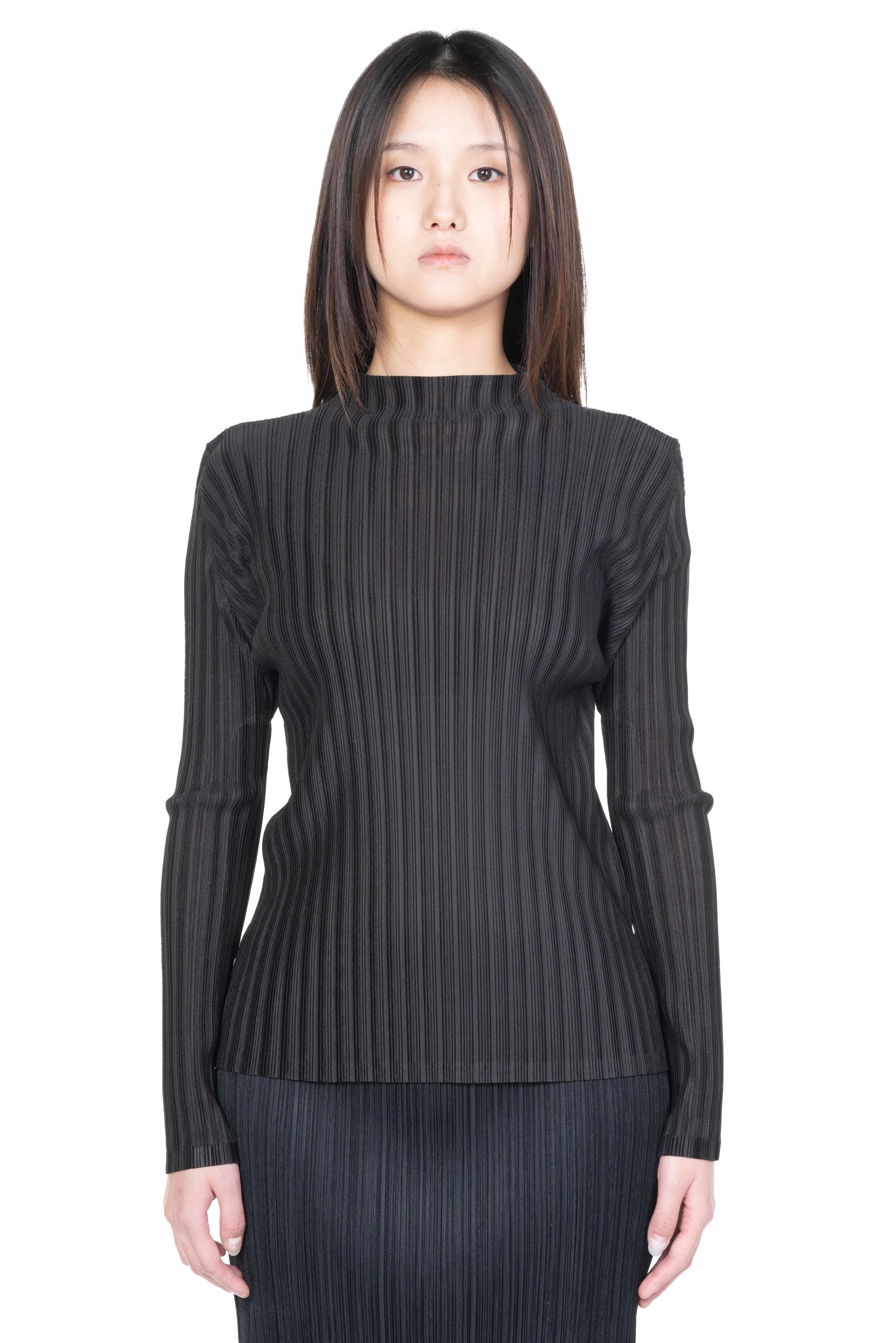 Long sleeves. Mock neckline. Slim-fit. Rib pleats January is a finely pleated top in a soft, fluid fabric. They can be easily coordinated with many other styles.