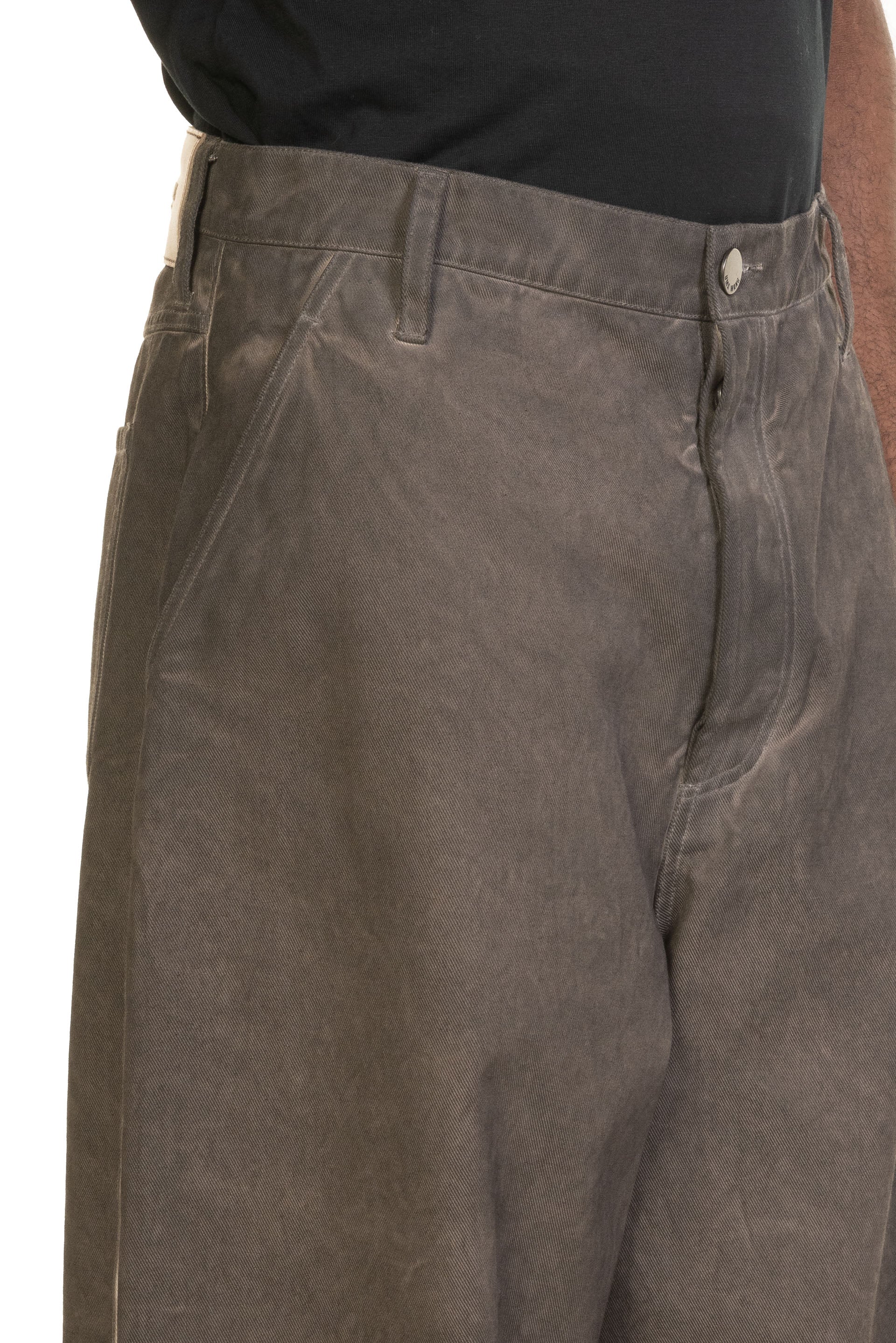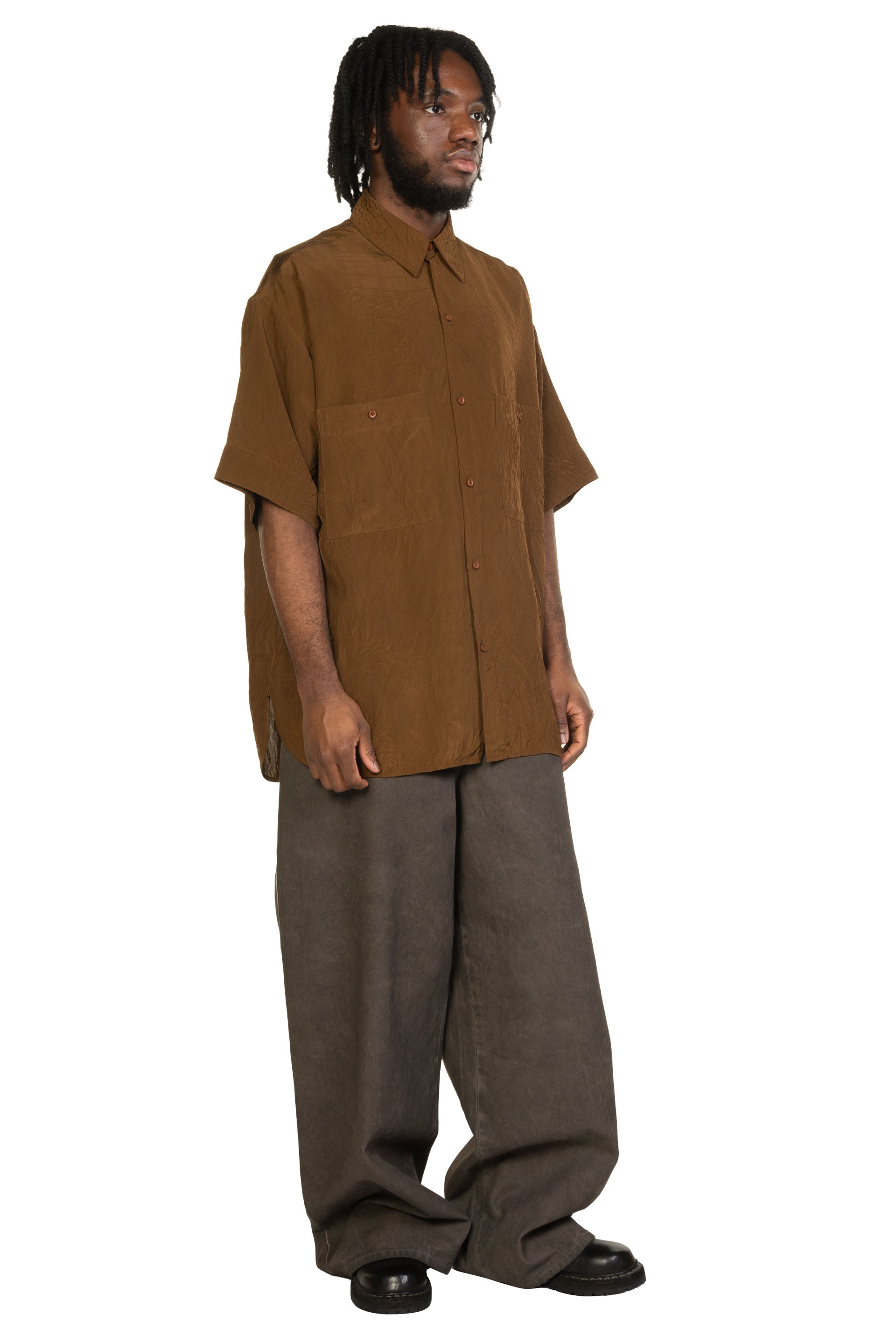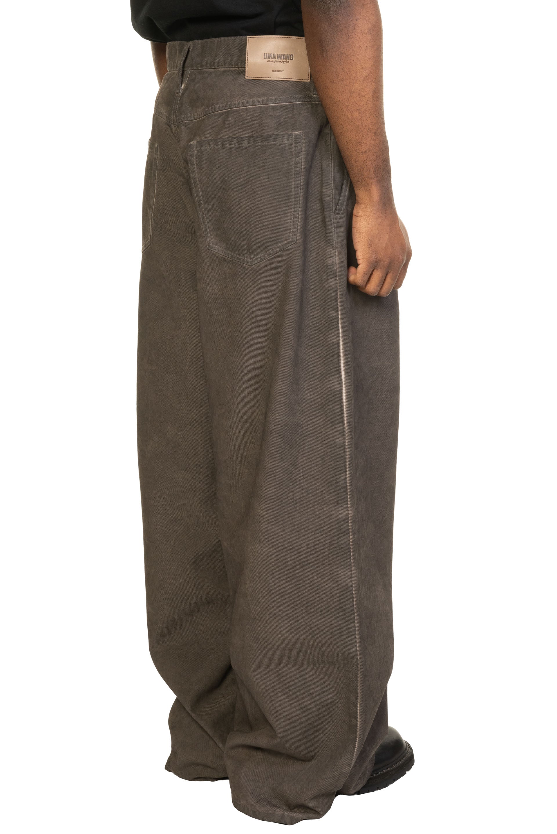 The UMA WANG Pod Pants reinterpret relaxed tailoring with a bold, wide-leg silhouette. Crafted from substantial, textured fabrics, they balance rugged masculinity with refined restraint, reflecting Uma Wang’s mastery of material and construction. With clean lines, subtle detailing, and a purposeful volume, these pants offer effortless versatility, comfort, and a modern, architectural presence. Two side pockets. Two back pockets. Button closure at waist.