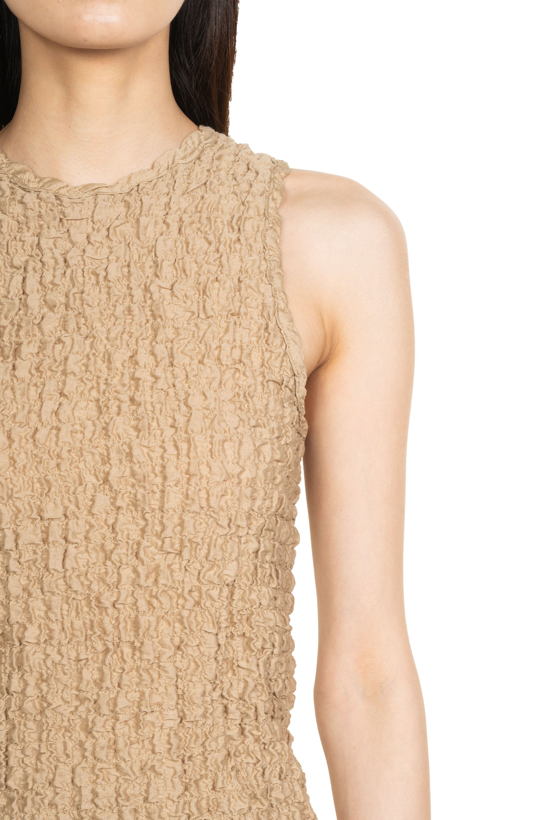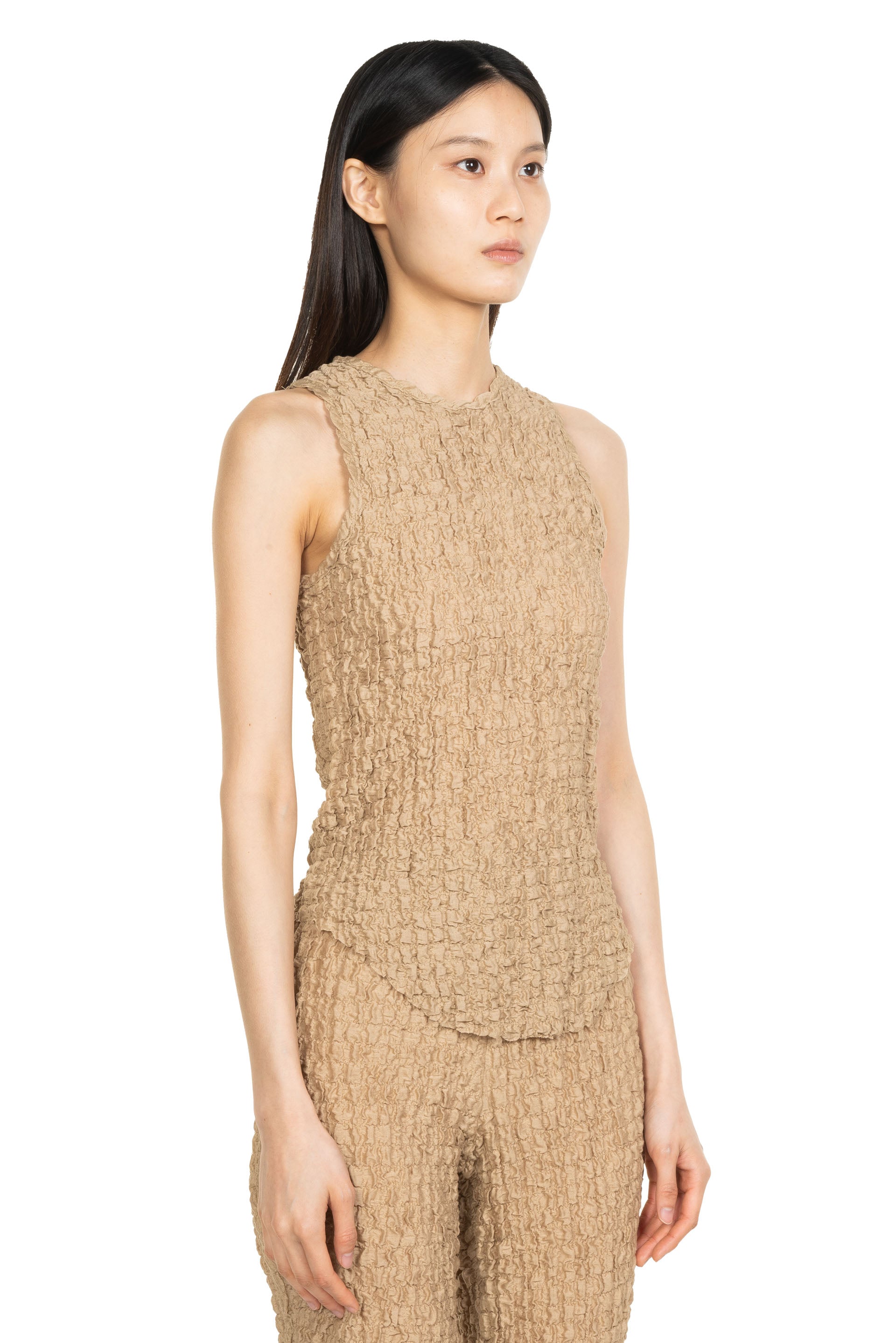 Song for the Mute Bias Slim fit basic tank top in a stretch popcorn-textured fabric. Featuring a central back stitch and rounded hem.